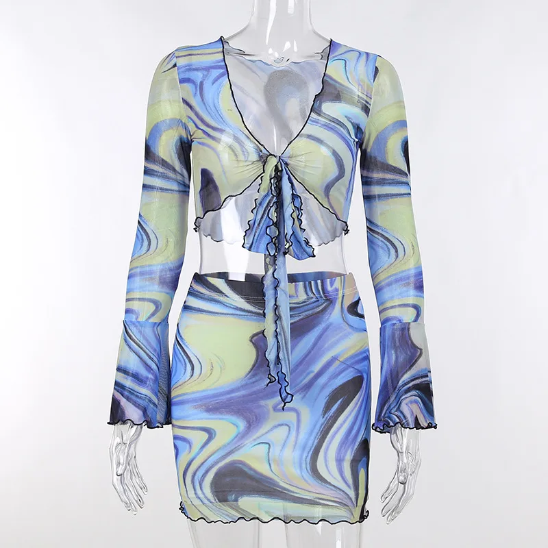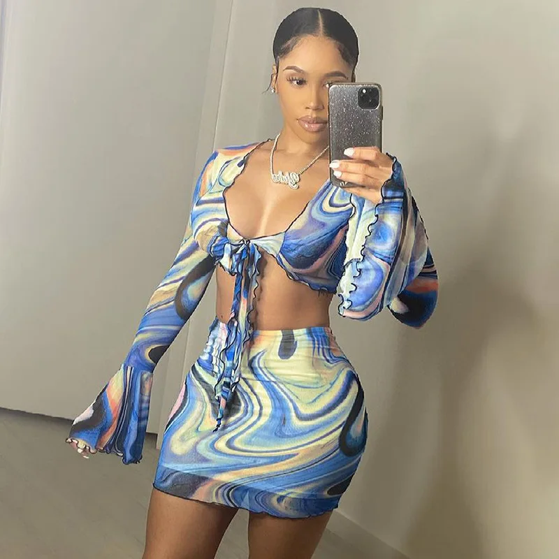 2 Two Piece Set Floral Print Beach Sexy Mini Dress Suit Women Bodycon Party Dresses Crop Top Skirts Sets 2021 Summer Vacation Outfits