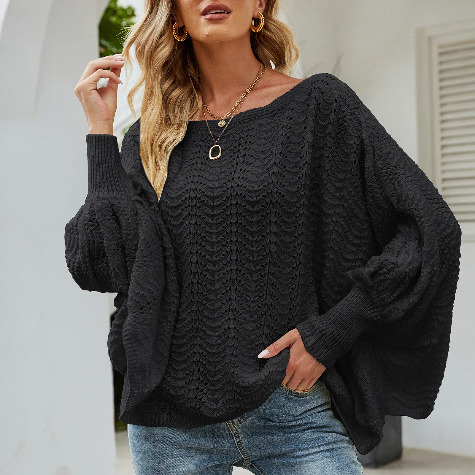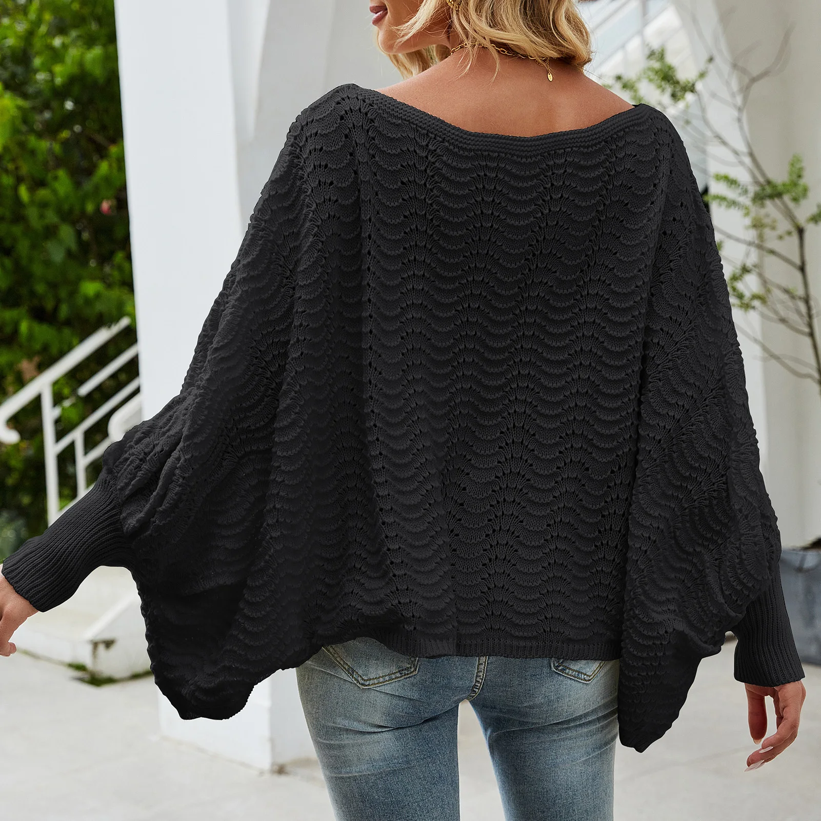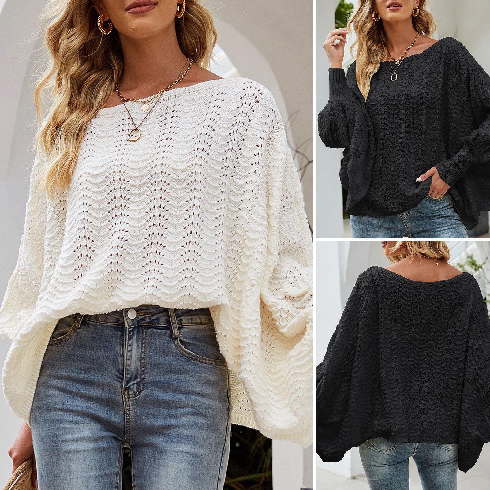 Knitted sweater in solid color features off shoulder and batwing sleeves, which looks quite elegant and sweet. The loose fit makes it very comfortable for wearing. Have one for the coming autumn.