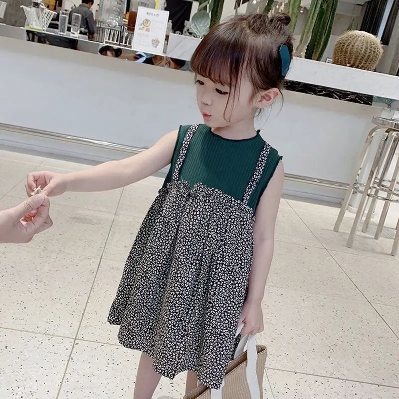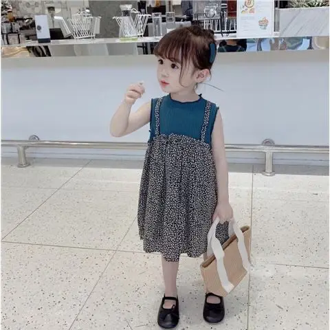 2021 New Style 1-6 Years Old Girls Princess Skirt Summer Cotton Children's Fake Two-piece Dress Girl Cute Female Baby Kids Dress