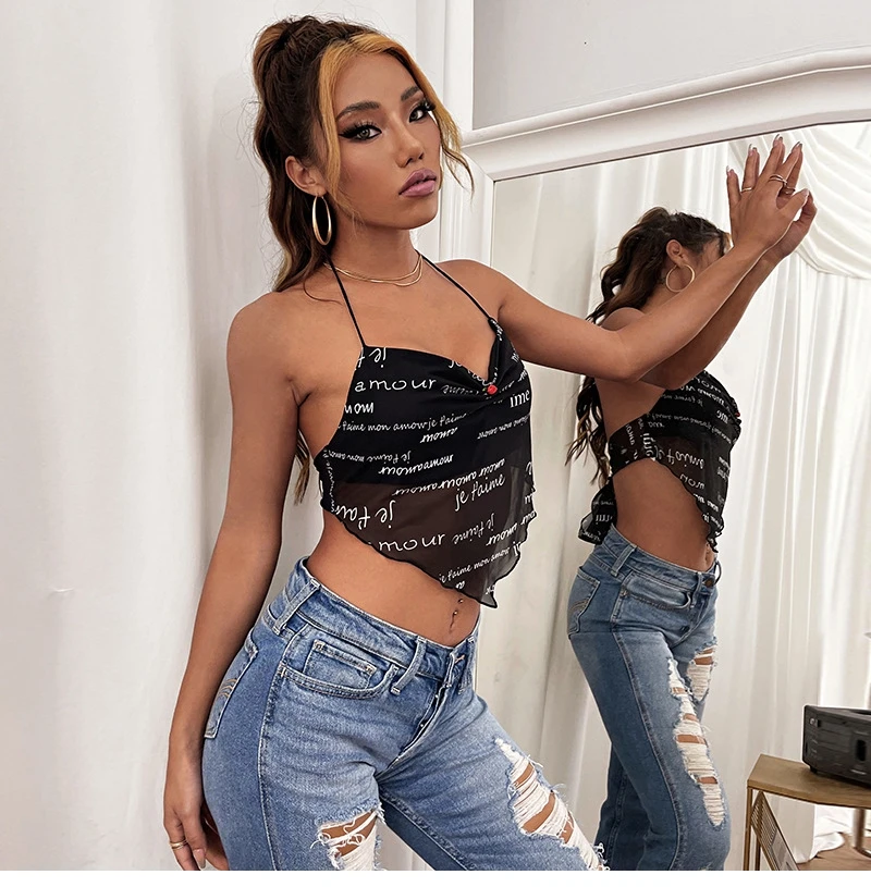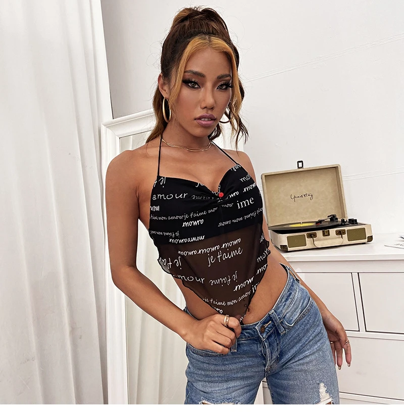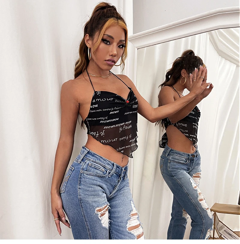 2021 New Summer Women Tank Top Letter Printing Sexy Halter Black Slim Fashion Temperament Lady Beautiful Comfortable