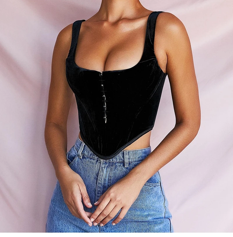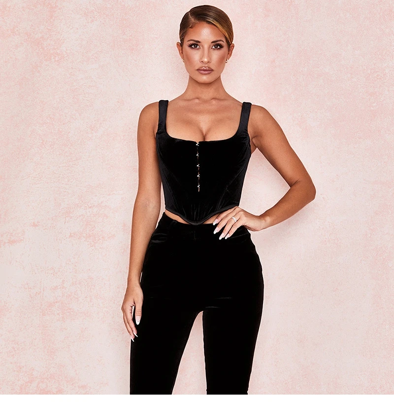 2021 Summer Hot Style All Match Women's Solid Color Breasted Diamond Sexy Slim Crop Upper Outer Garment Sleeveless Tank