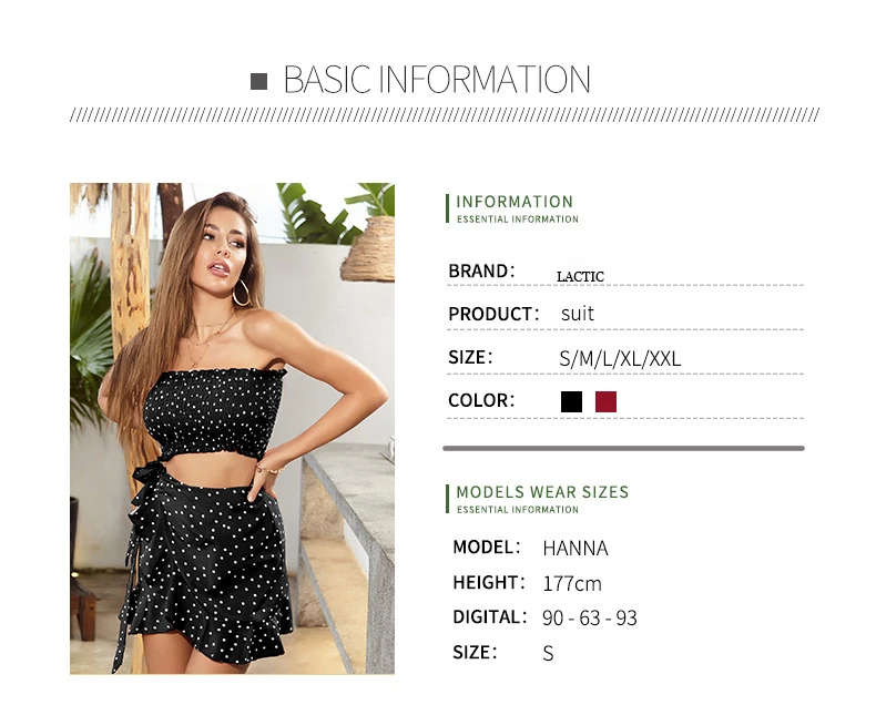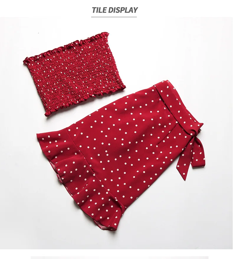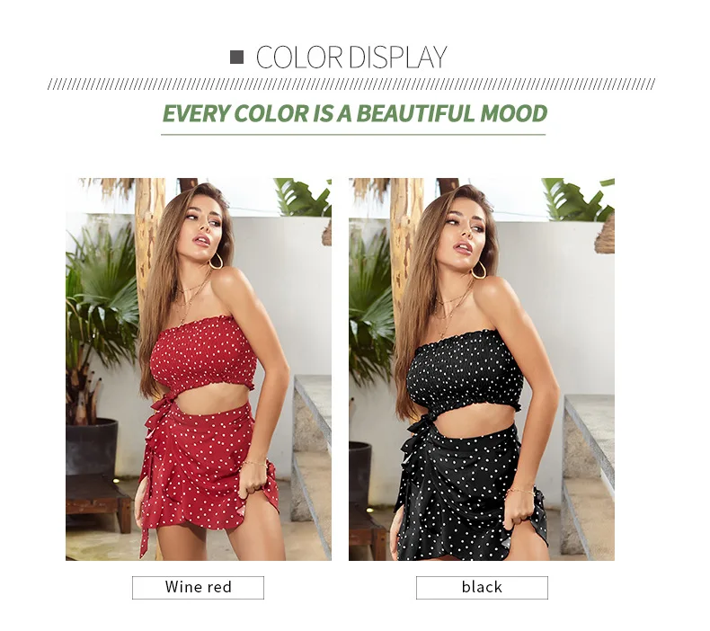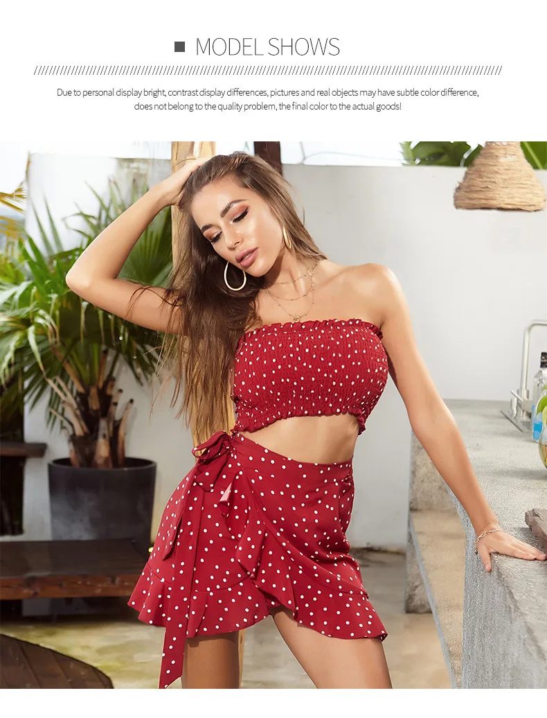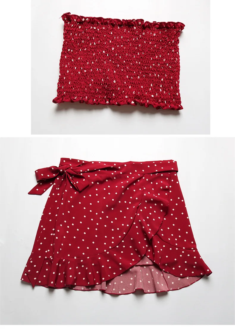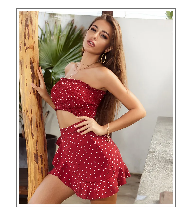 2021 Summer New Sexy Vest Wrapped Chest Ladies Polka Dot Short Skirt Set 2-Piece