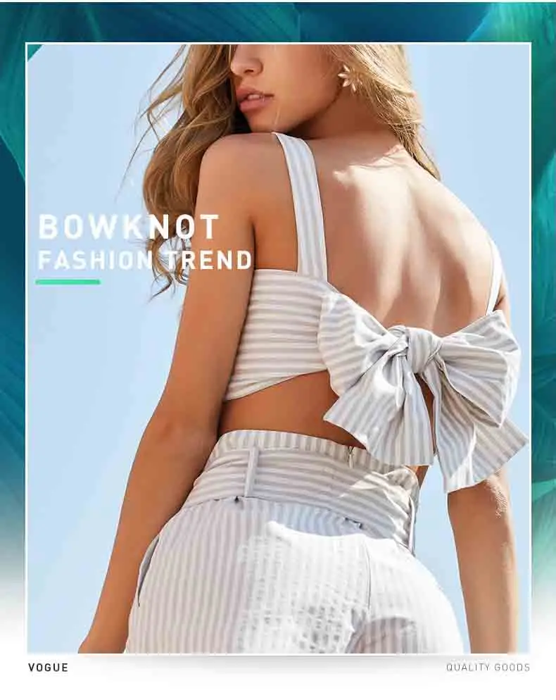 ♥Features: backless, knotted, bowknot, elastic waist, stripes, fashion