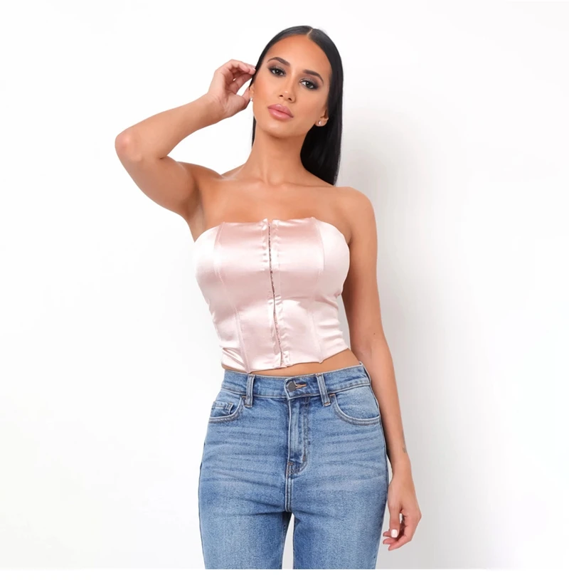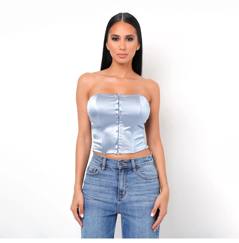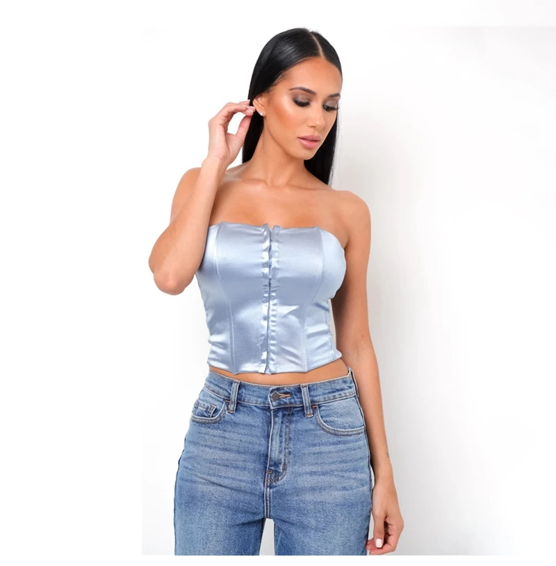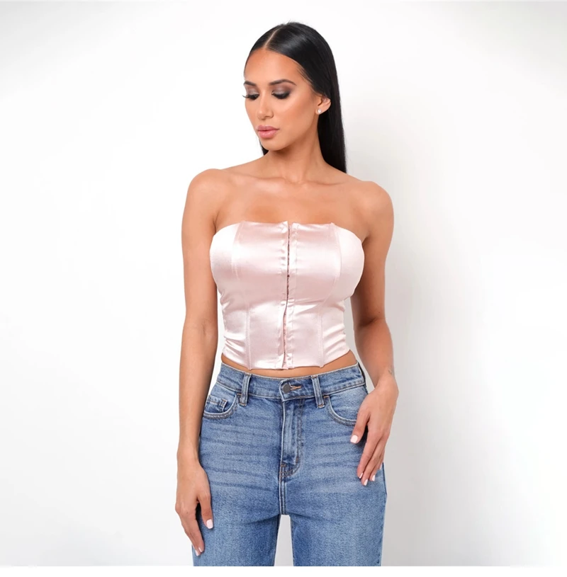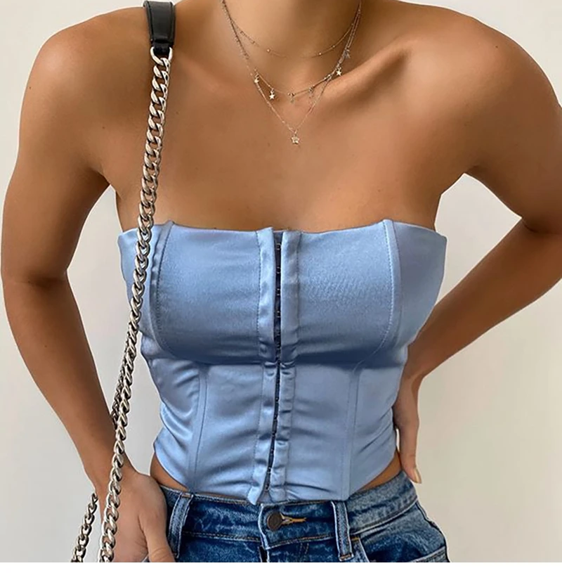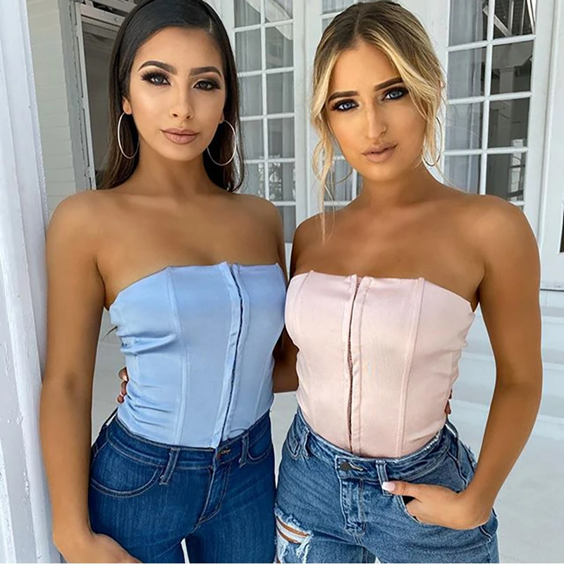 2021 Summer New Style One Line Neck Bra Off Shoulder Women's Small Waistcoat With Beautiful Back Sexy Waistband Tank