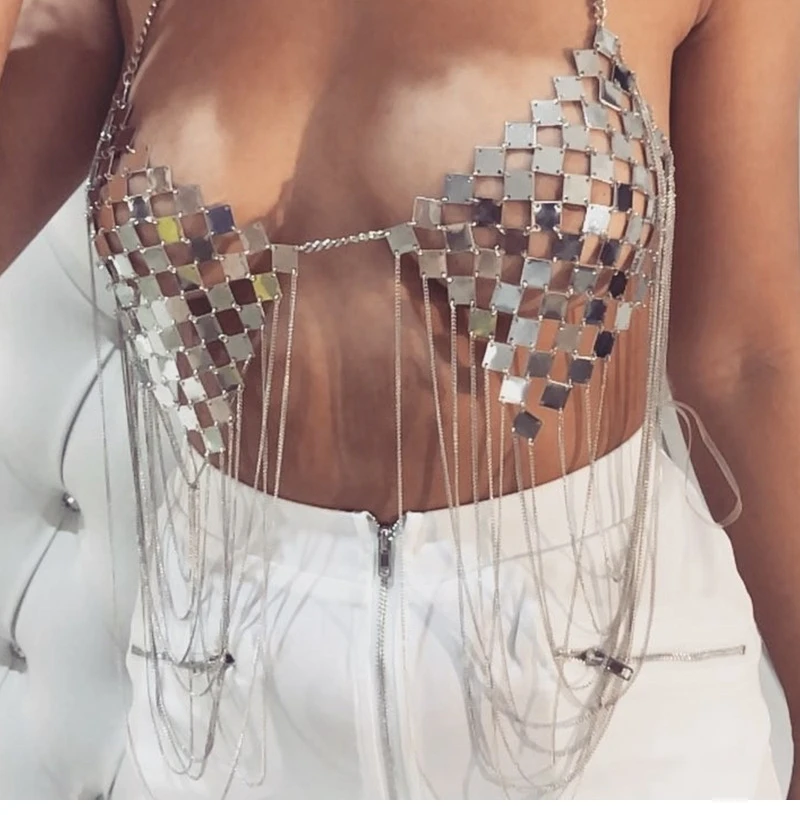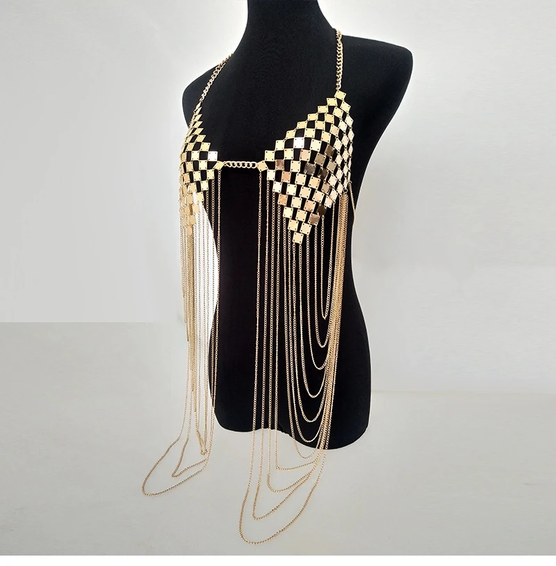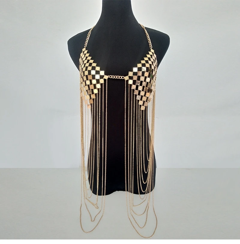 2021 Summer Women's Hot Selling New Metal Bra Chain Tassel Body Chain Necklace Small Tank Upper Outer Garment Sleeveless Tops