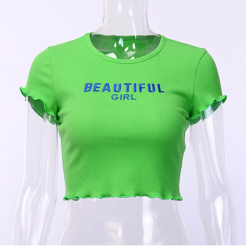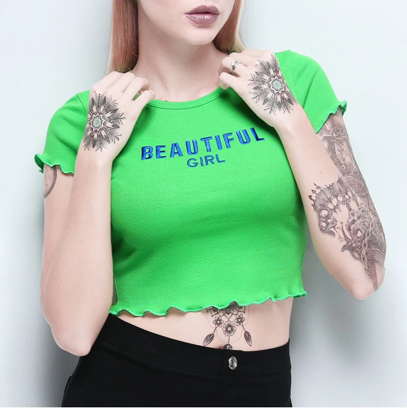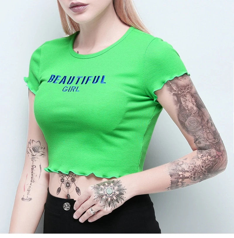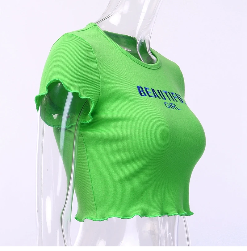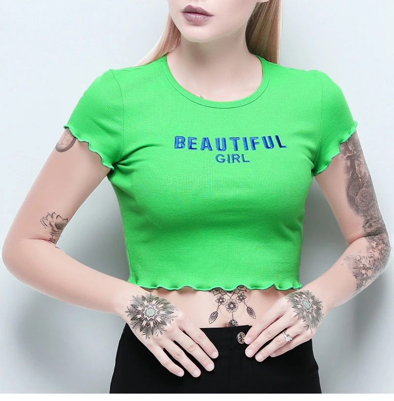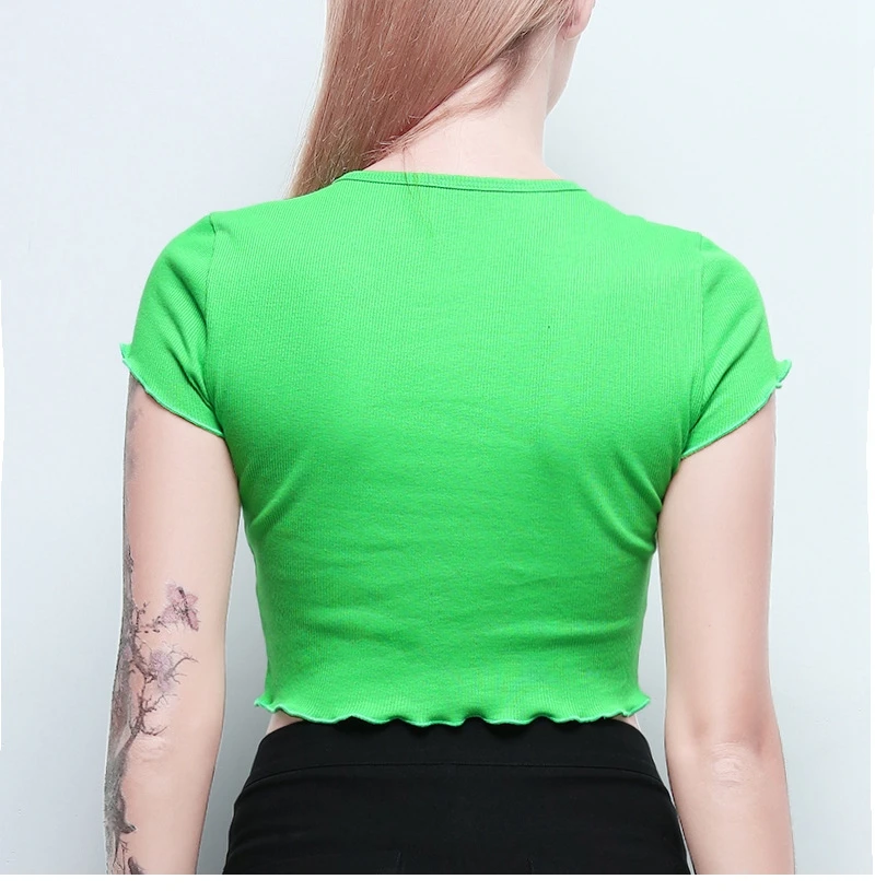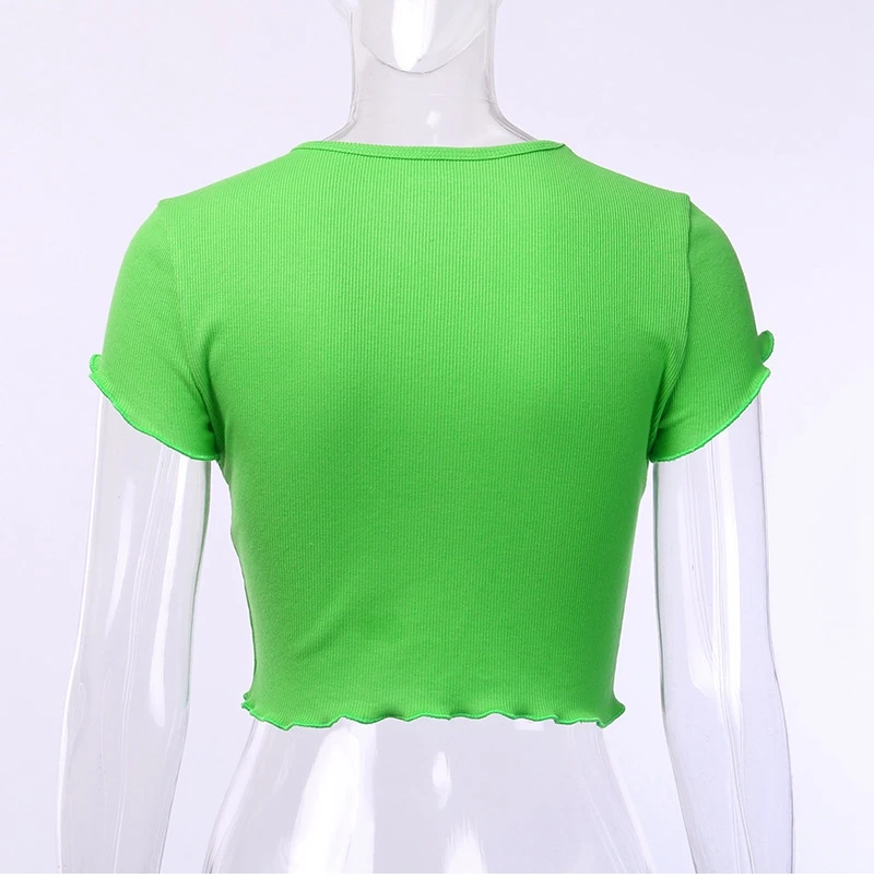 2021 Summertime New Style Fashionable Miniskirt Women's Top O Neck Collar Ear Side Exposed Navel Green Tanks For Ladies