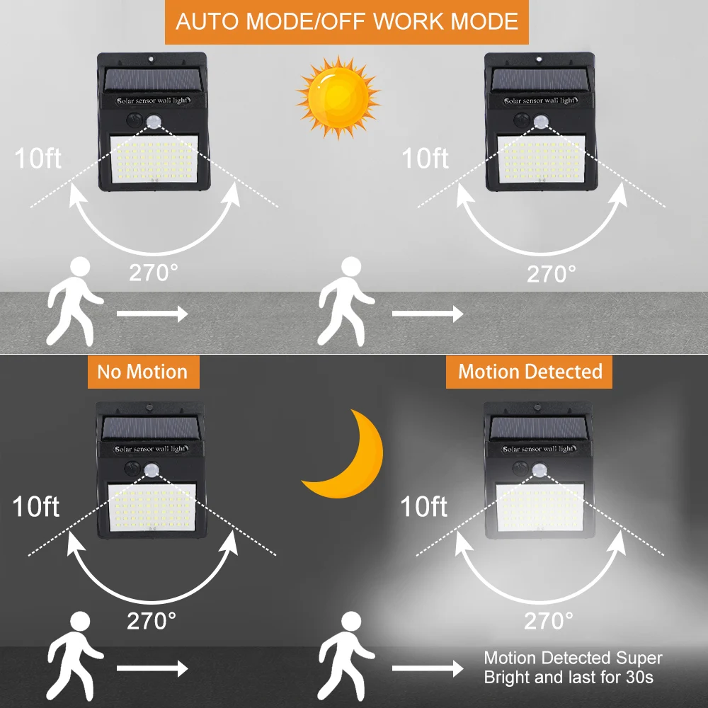 On the basis of 3-mode solar lights, this 222 LED solar light added a new mode for this solar light--Security Light Mode, which will flicker when motion is detected. It can be used as a safety light when no one is in your house.