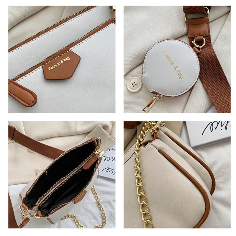 fashion chains women shoulder bags designer wide strap messenger bags luxury pu leather crossbody bag lady small purse 3 bag set