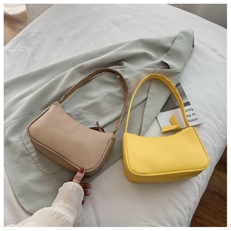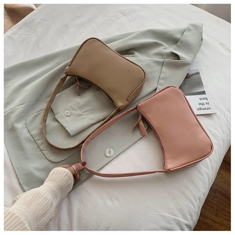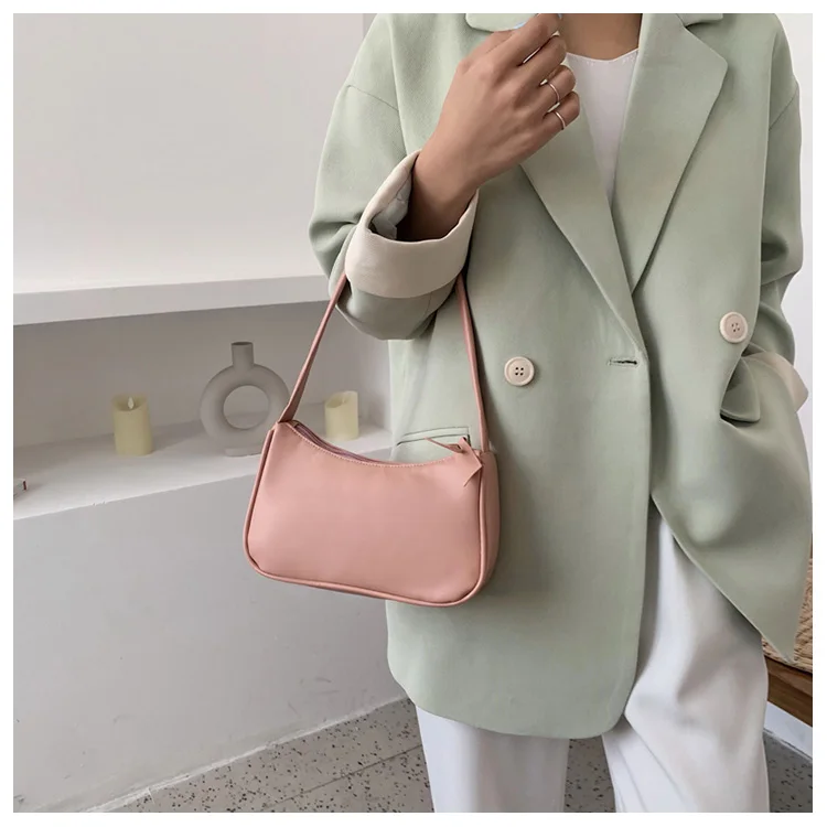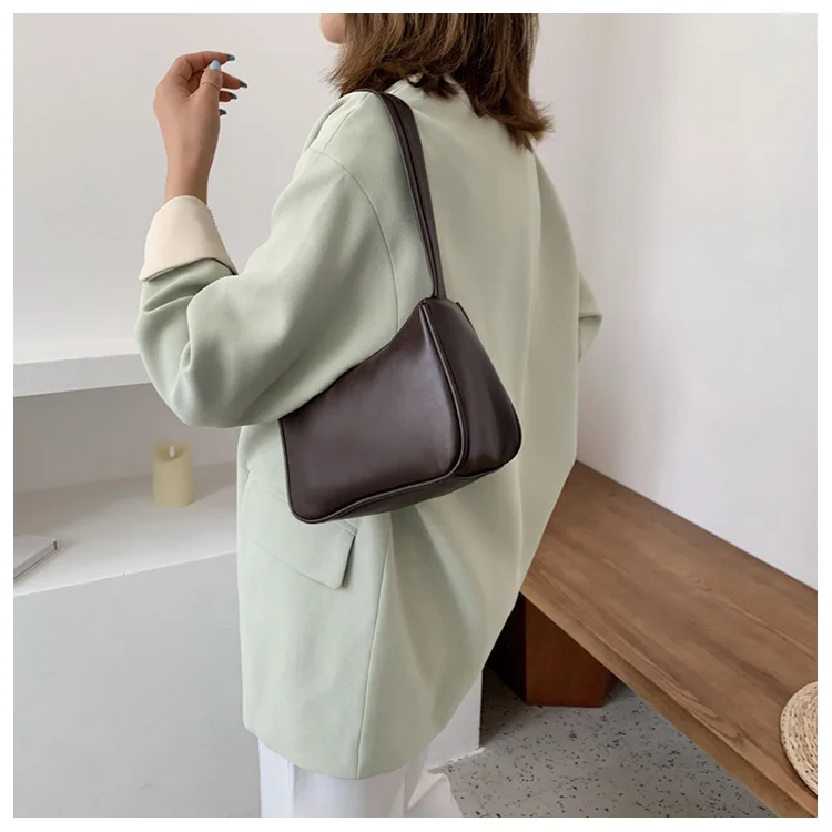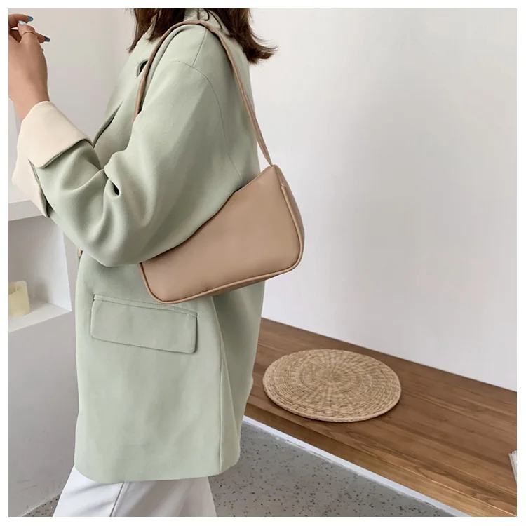 Soft PU Leather Women Purple Underarm Bag Retro Solid Color Ladies Baguette Handbags Fashion Design Girls Small Shoulder Bags