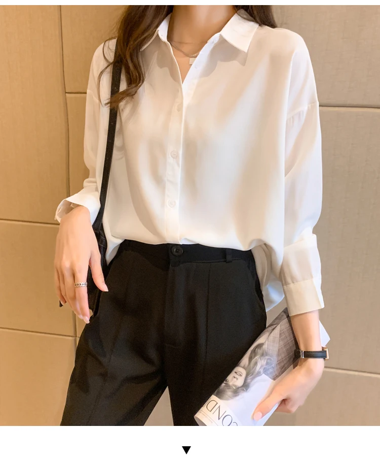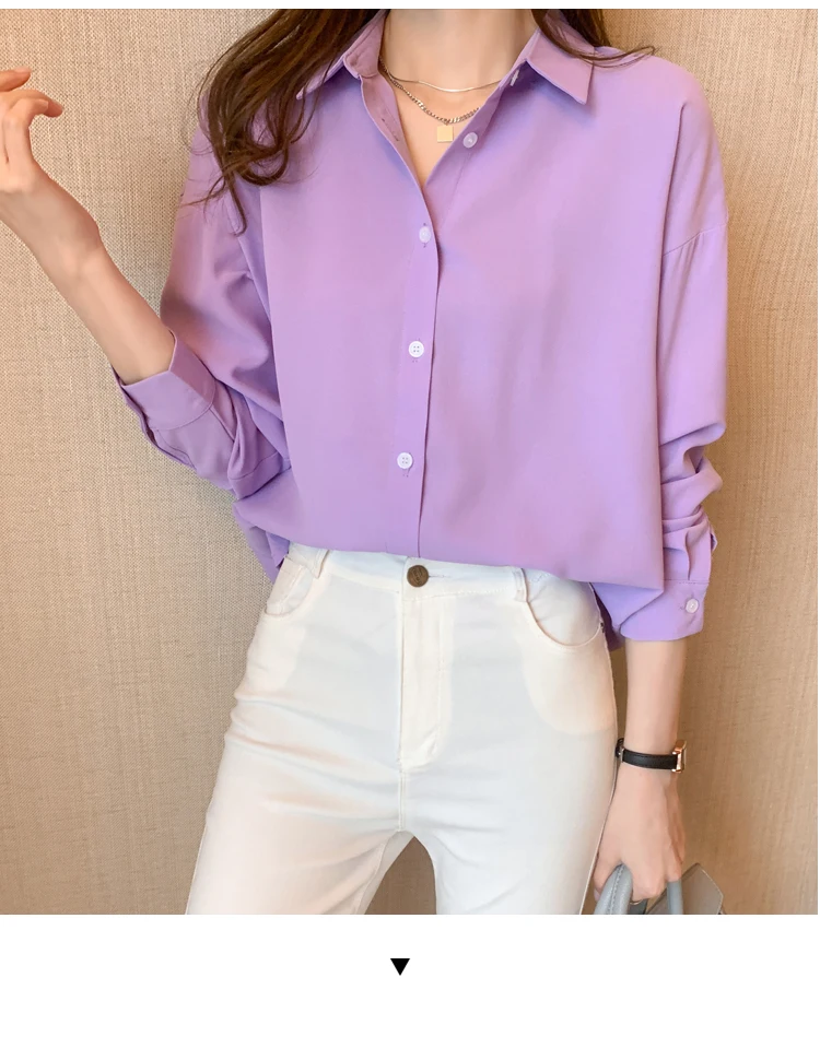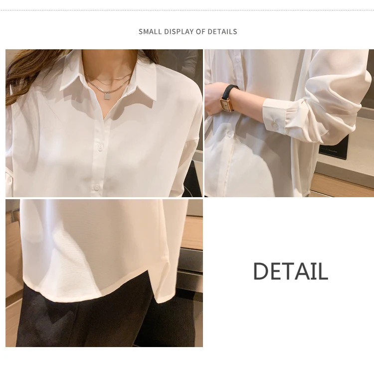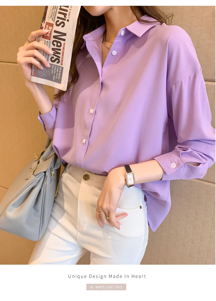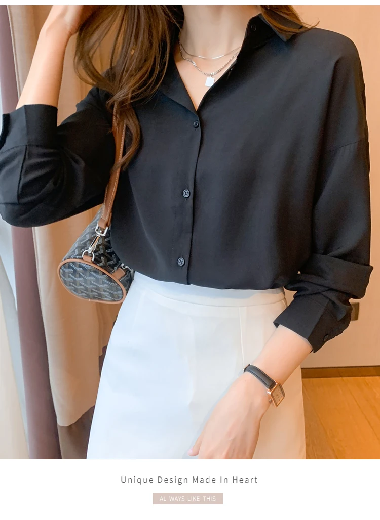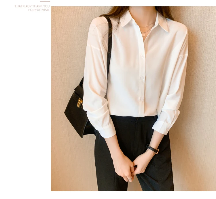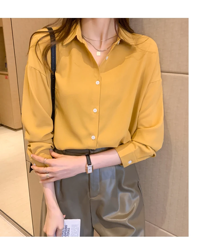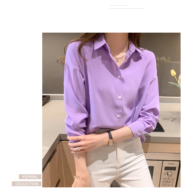 2021 Spring Women Chiffon Shirt Fashion Casual Turtleneck Long Sleeve Solid Color Blouses Loose Casual Tops