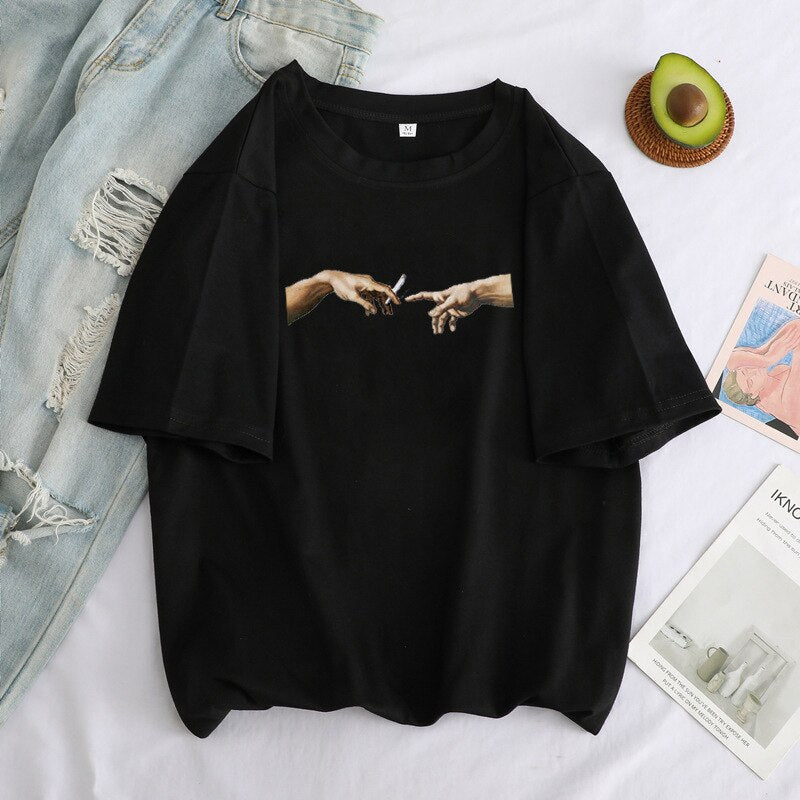 2021 Summer New Michelangelo Cartoon T-shirt Angel Child Loose Casual Retro Short T-shirt Woman T-shirts