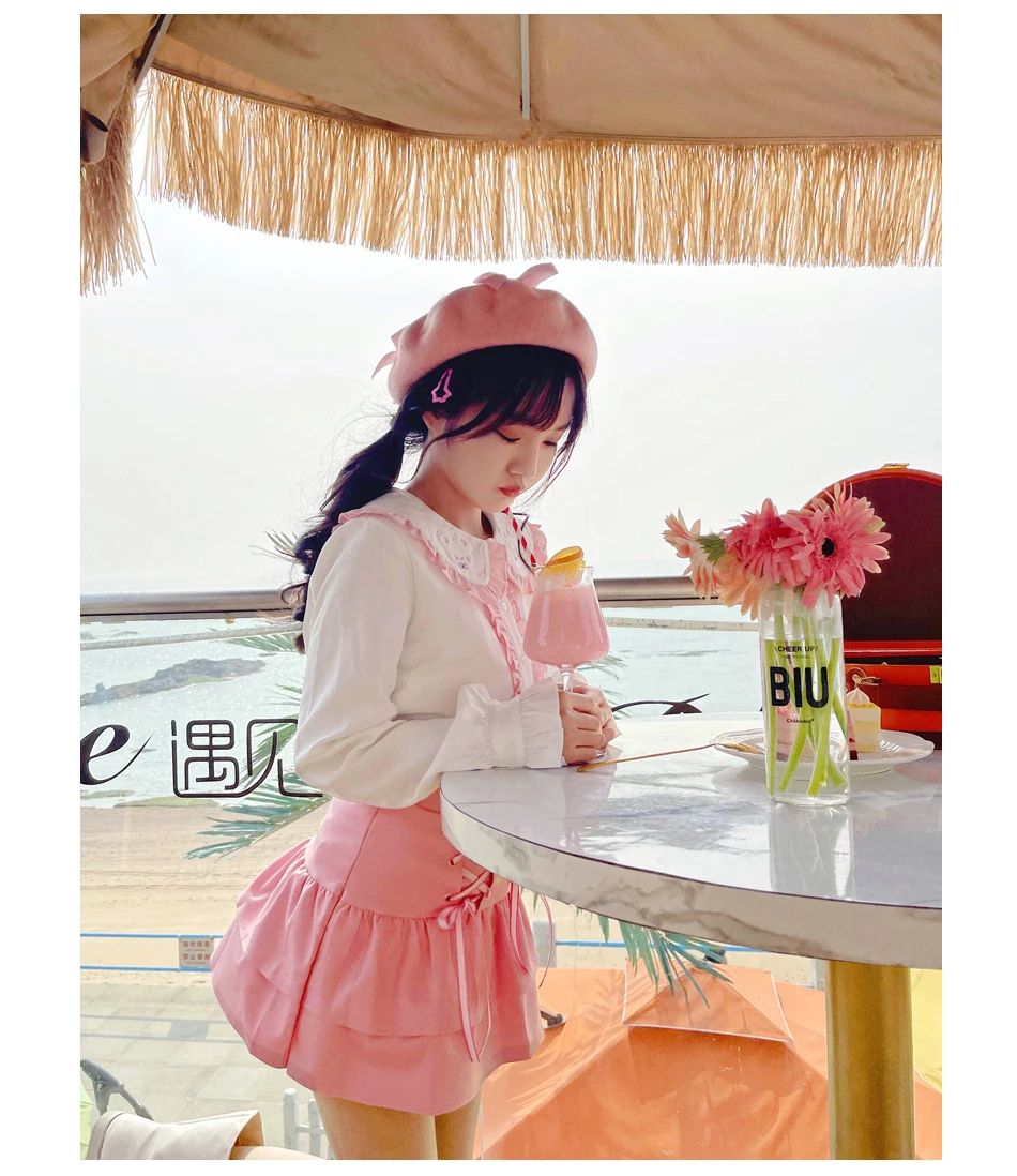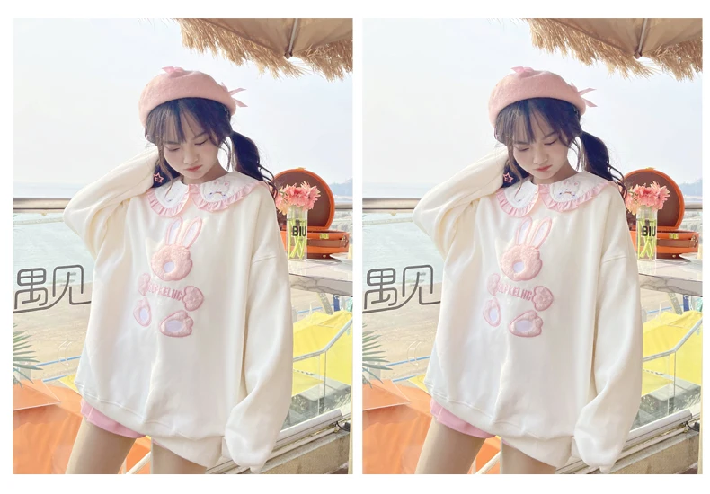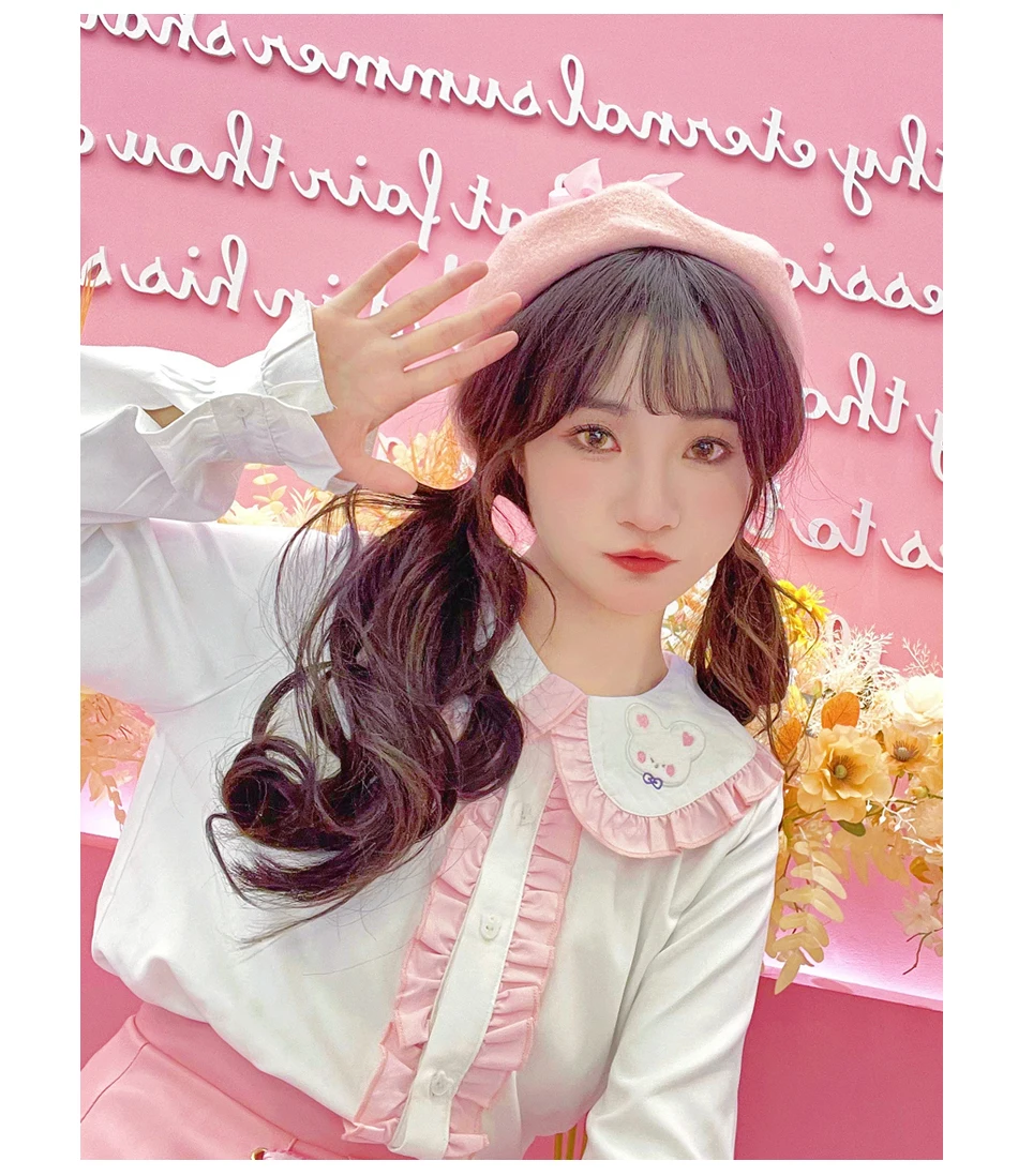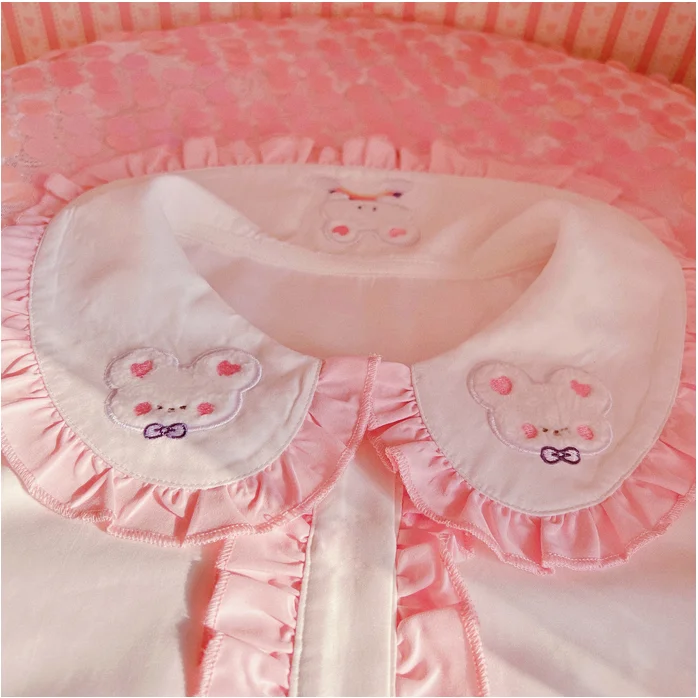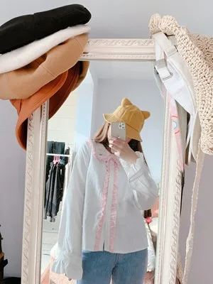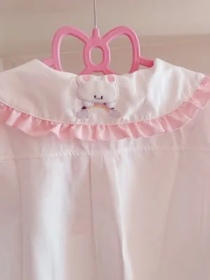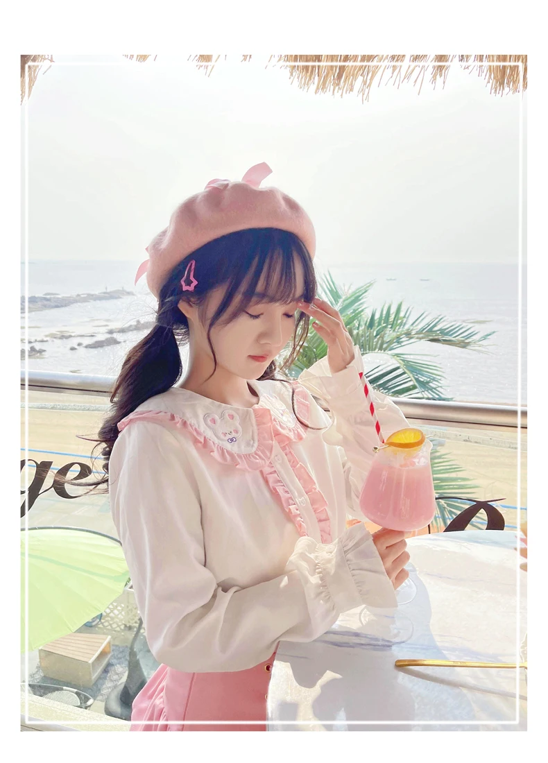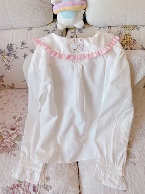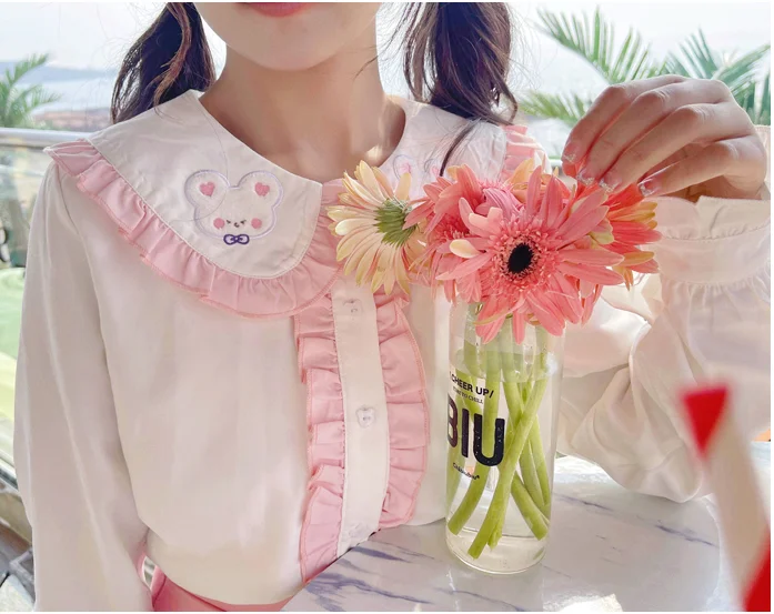 2022 New Teen Girls Rabbit Cute Blouses Spring Single Breasted Fresh Kawaii Tops Long Sleeve Fungus Edge Shirts Japanese Women