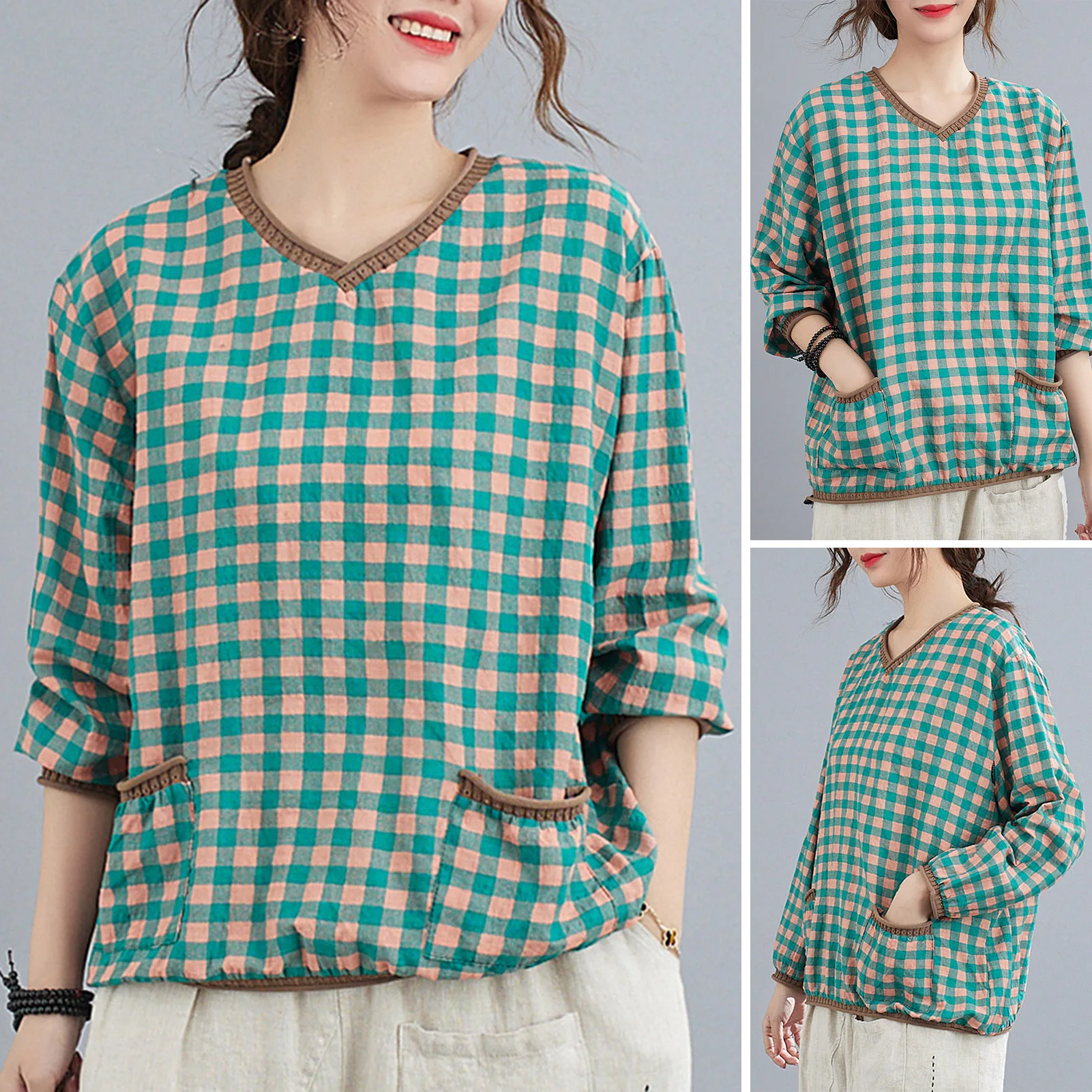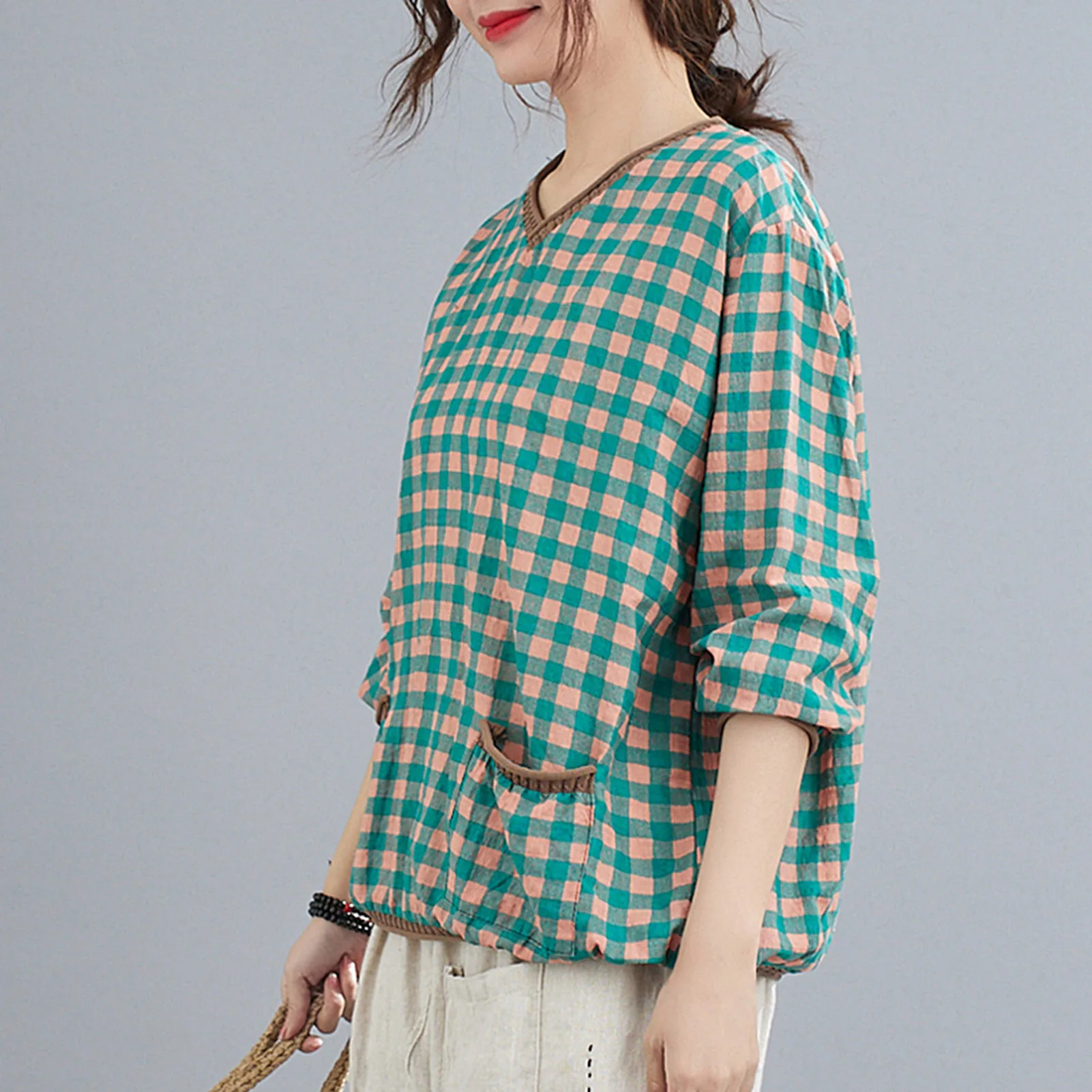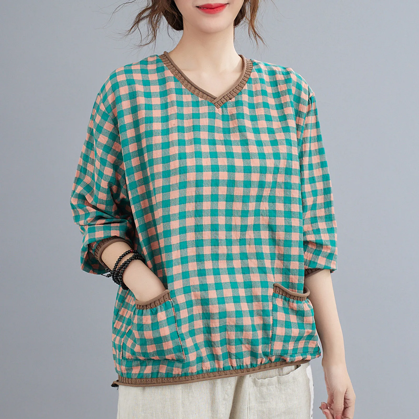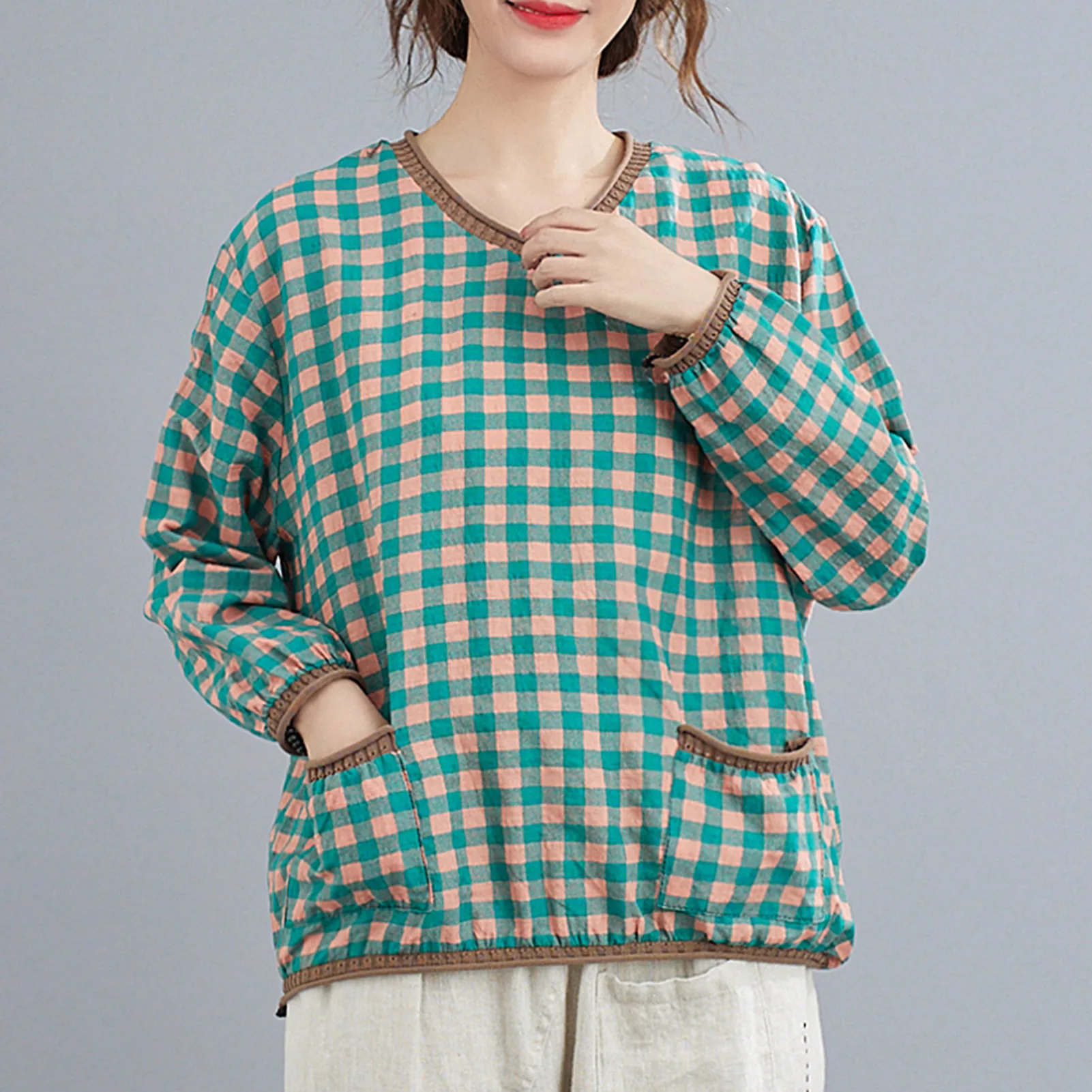 Long sleeve blouse in cotton and linen blend fabric, is soft and breathable to wear in spring and autumn.