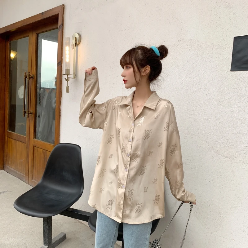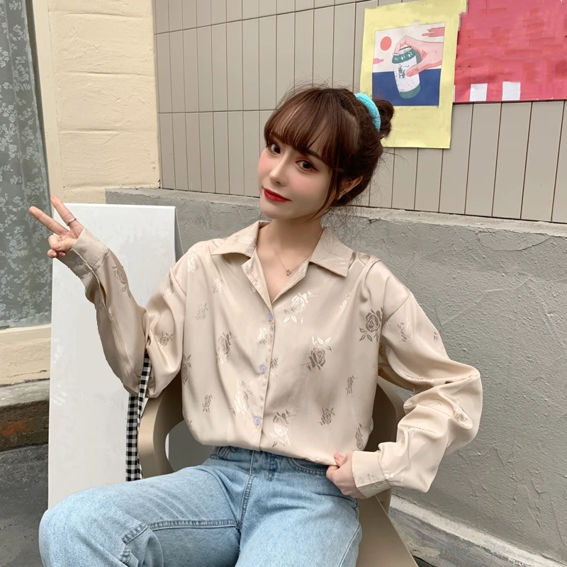 Chic Women Floral Shirt Female Korean Long Sleeves Blouses Office Ladies Casual Tops And Shirts