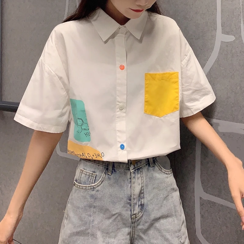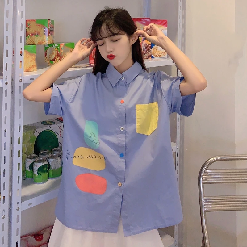Chic Women Shirt Kawaii Ladies Casual Loose Tops And Shirts Female Korean Long Sleeves Blouses Chic Pocket