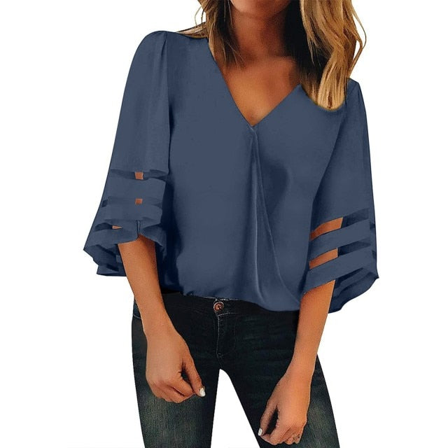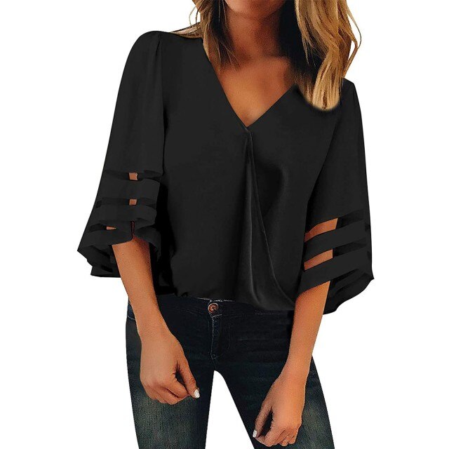 Blouses for women fashion 2021. The women casual tops shirt comes with v neck and mesh patchwork design.