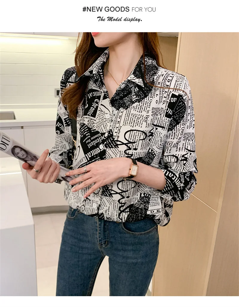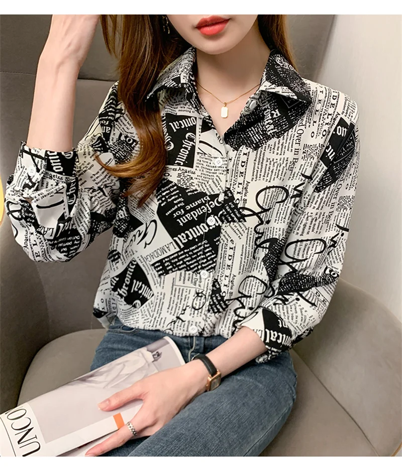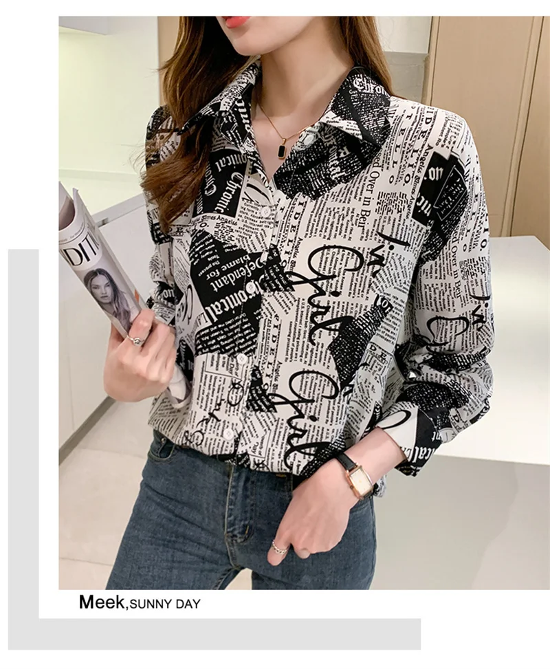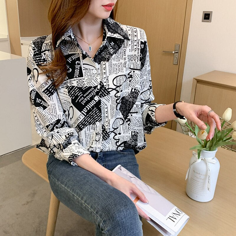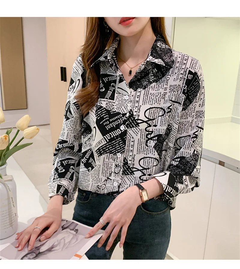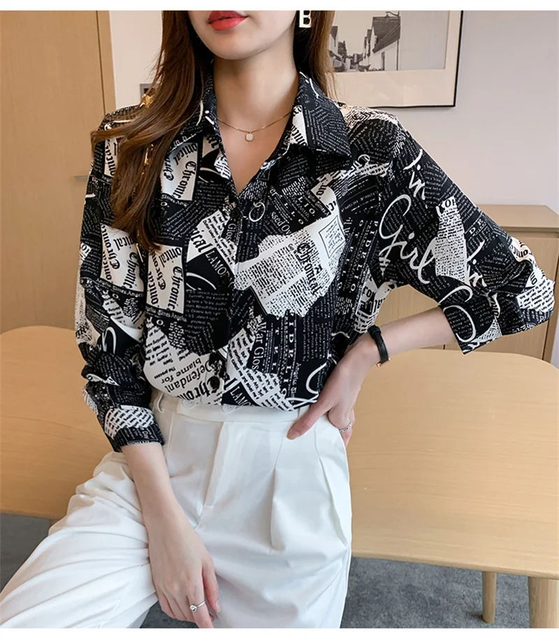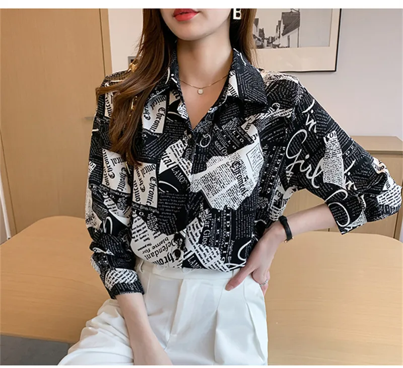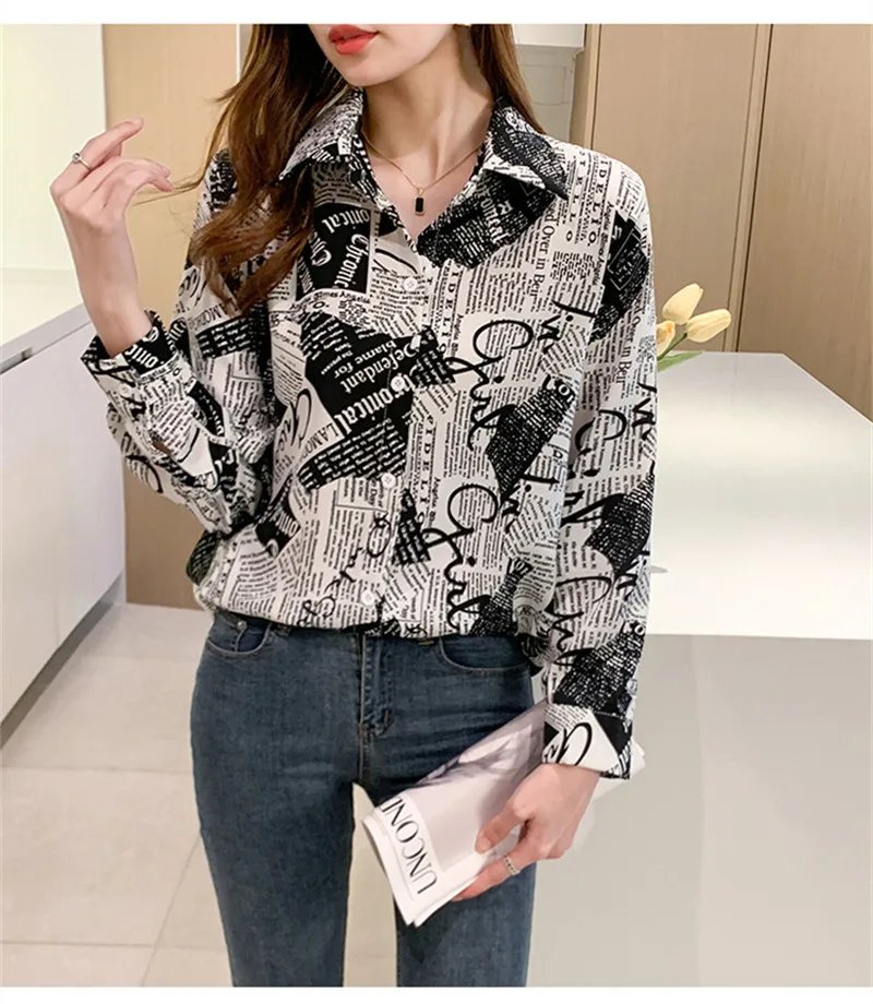 Fall 2021 Fashion Women Blouses Casual Youth Korean Loose Long Sleeve Shirt Letter Printing Graffiti Female Clothing Top