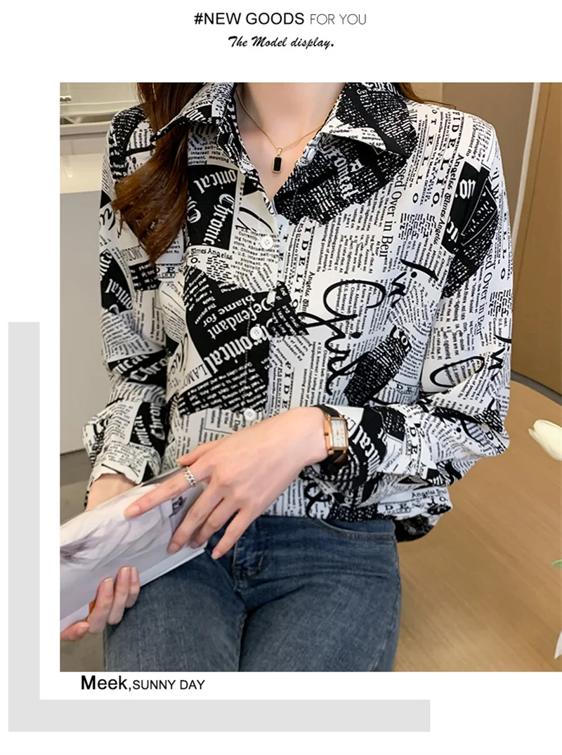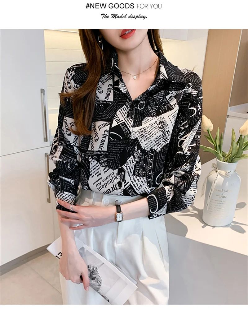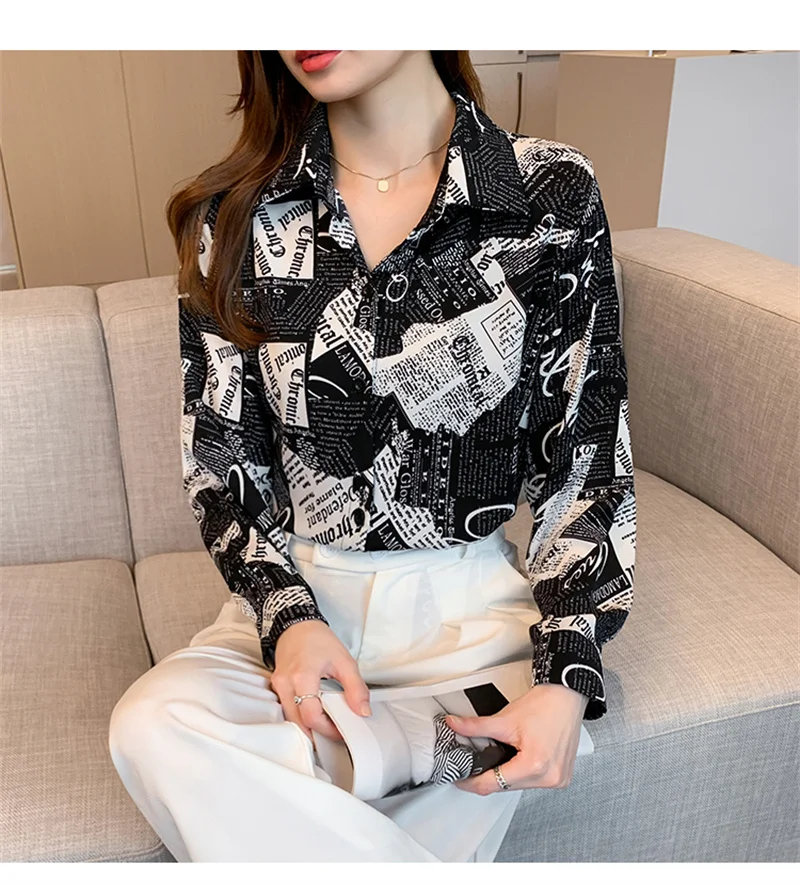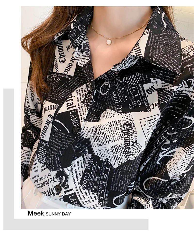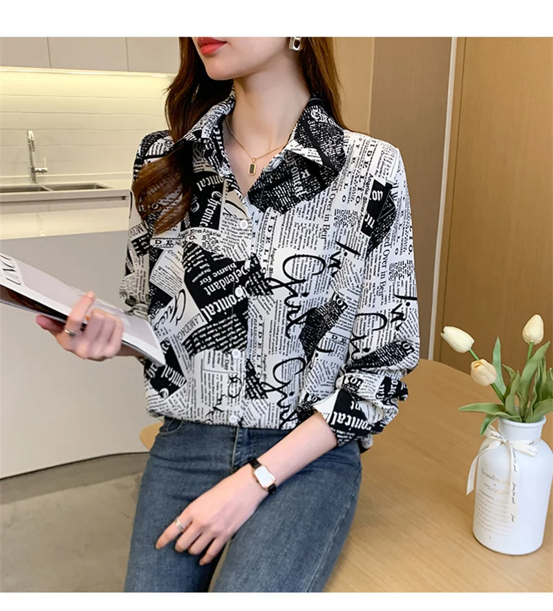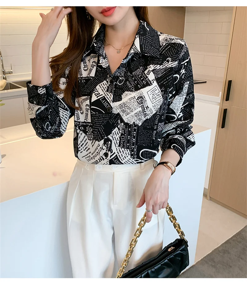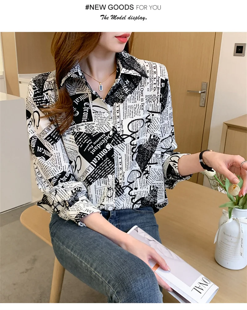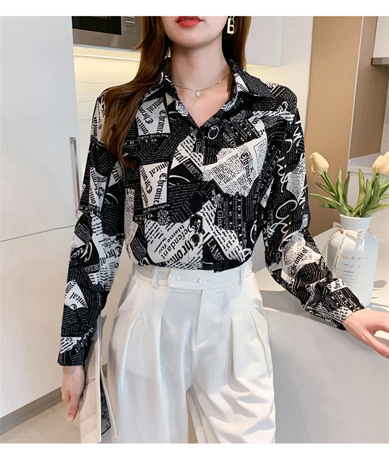 Fall 2021 Fashion Women Blouses Casual Youth Korean Loose Long Sleeve Shirt Letter Printing Graffiti Female Clothing Top