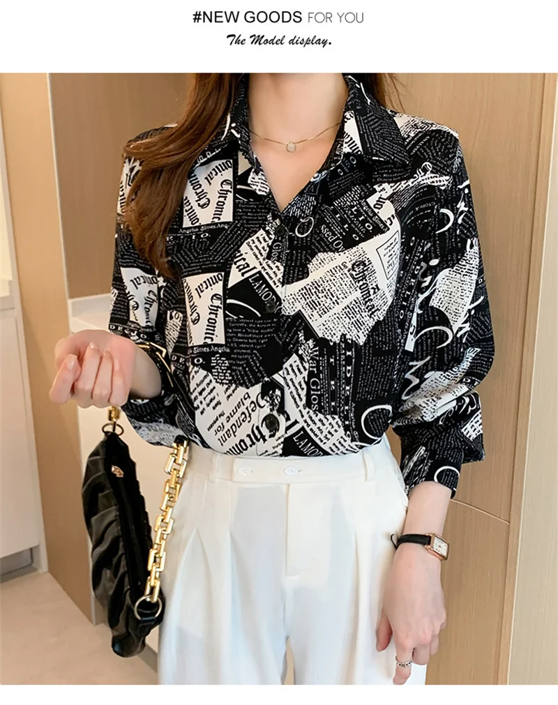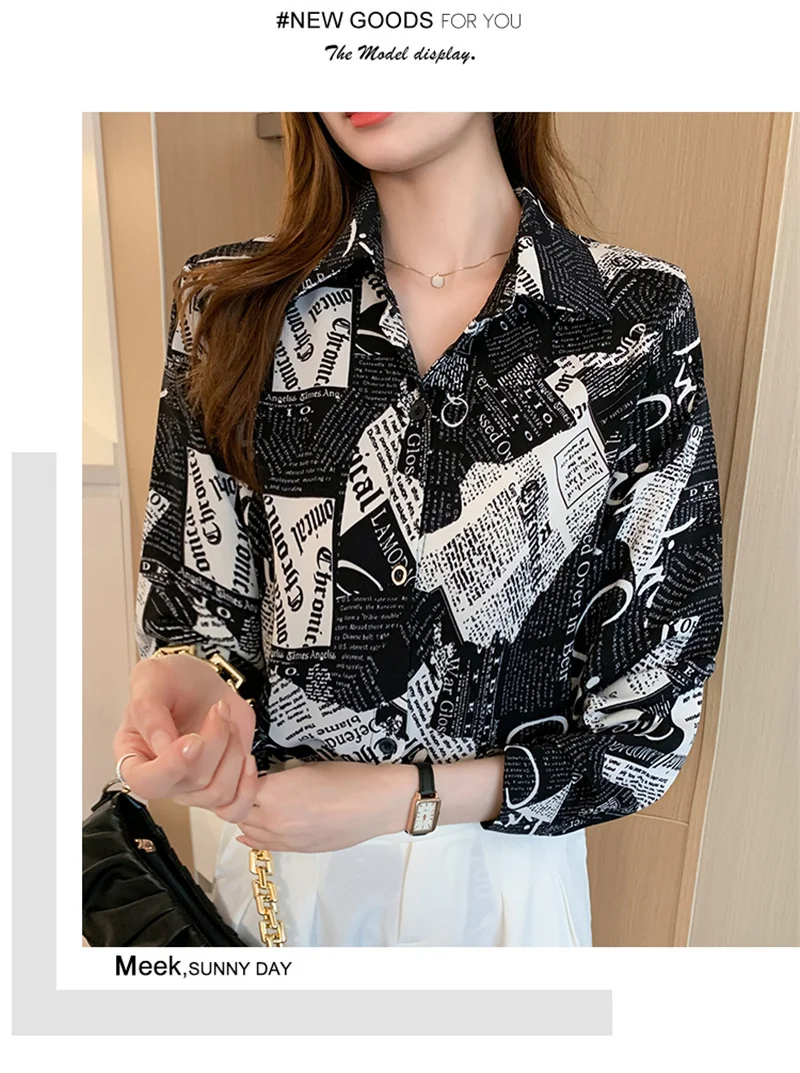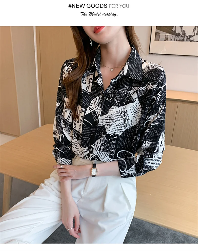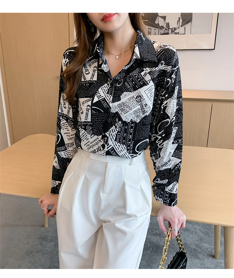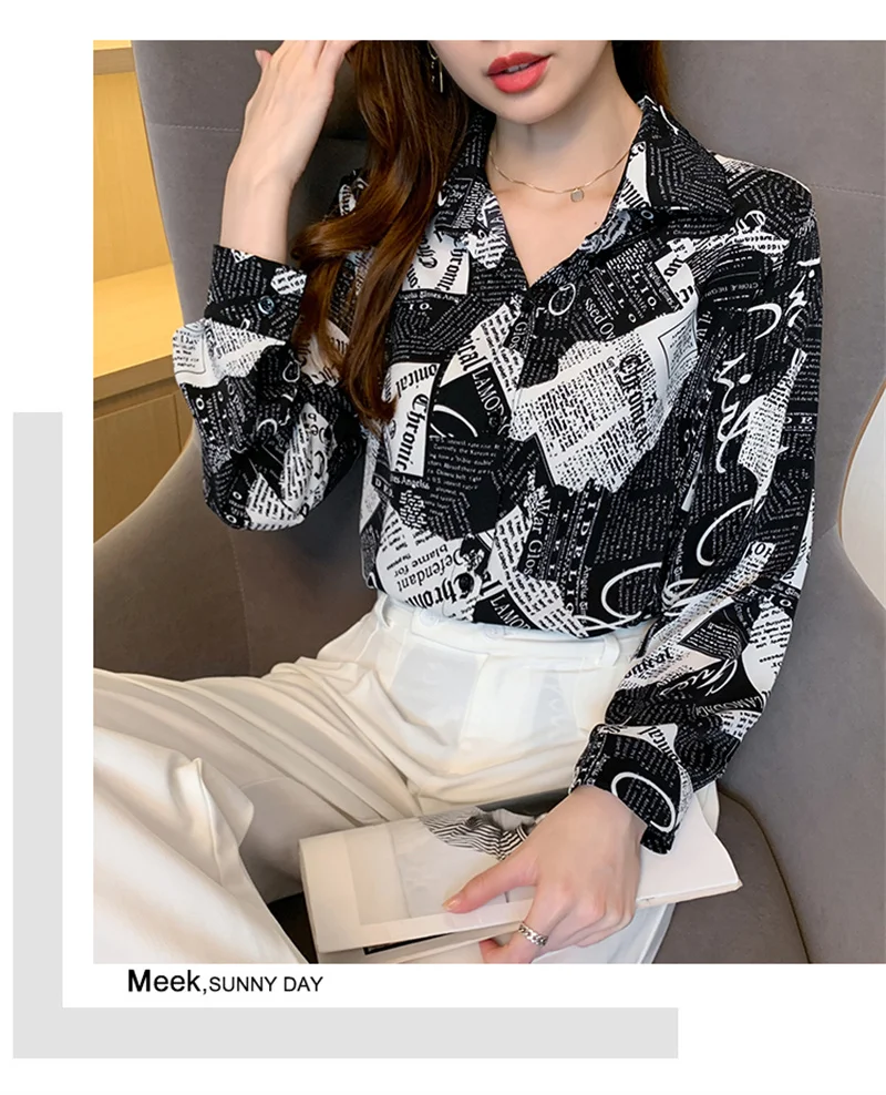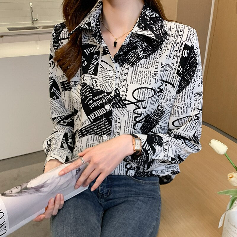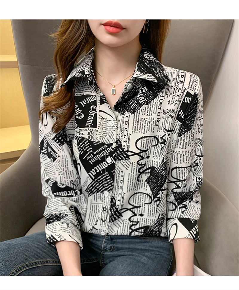 Fall 2021 Fashion Women Blouses Casual Youth Korean Loose Long Sleeve Shirt Letter Printing Graffiti Female Clothing Top