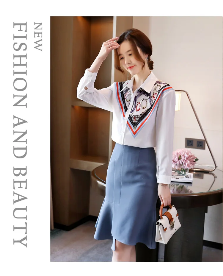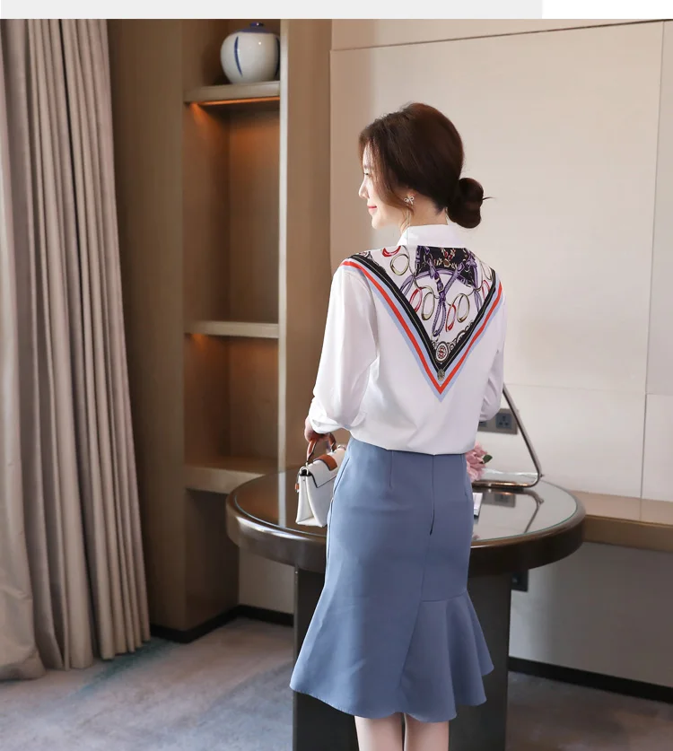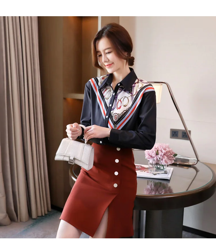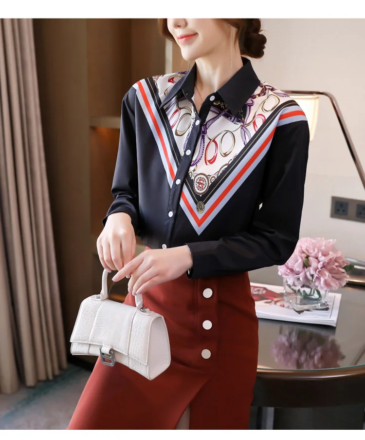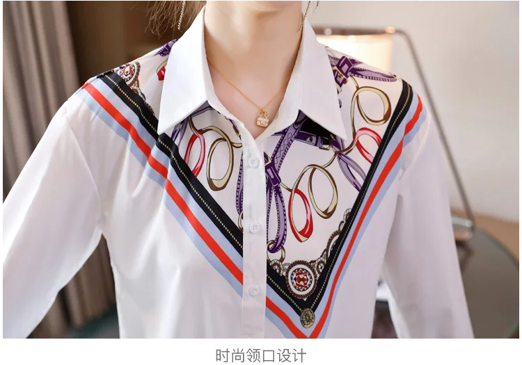 Fashion Print Women Chiffon Shirt New 2021 Spring Autumn Turn-Down Collar Blouses Plus Size Loose Tops Clothing