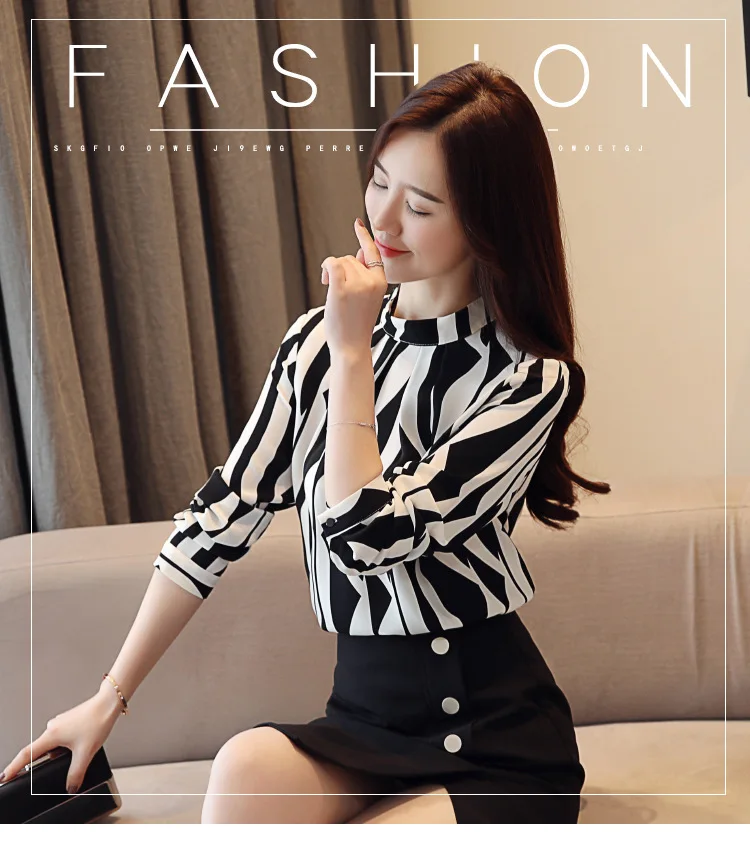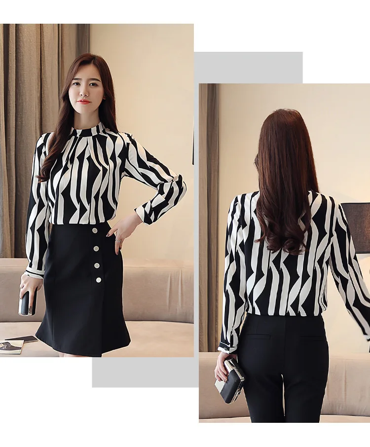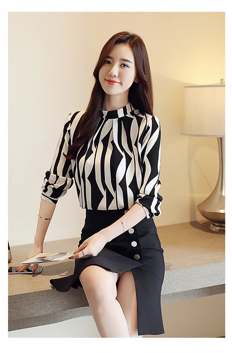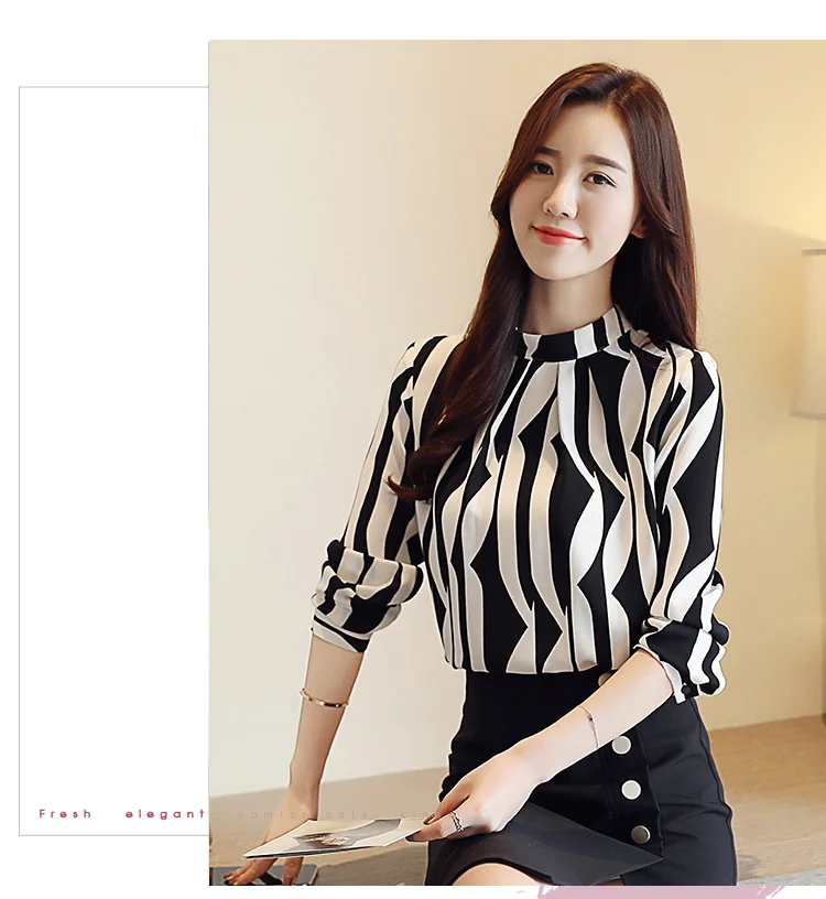 Fashion Woman Blouse 2021 Striped Chiffon Blouse Shirt Long Sleeve Women Shirts Office Work Wear Womens Tops