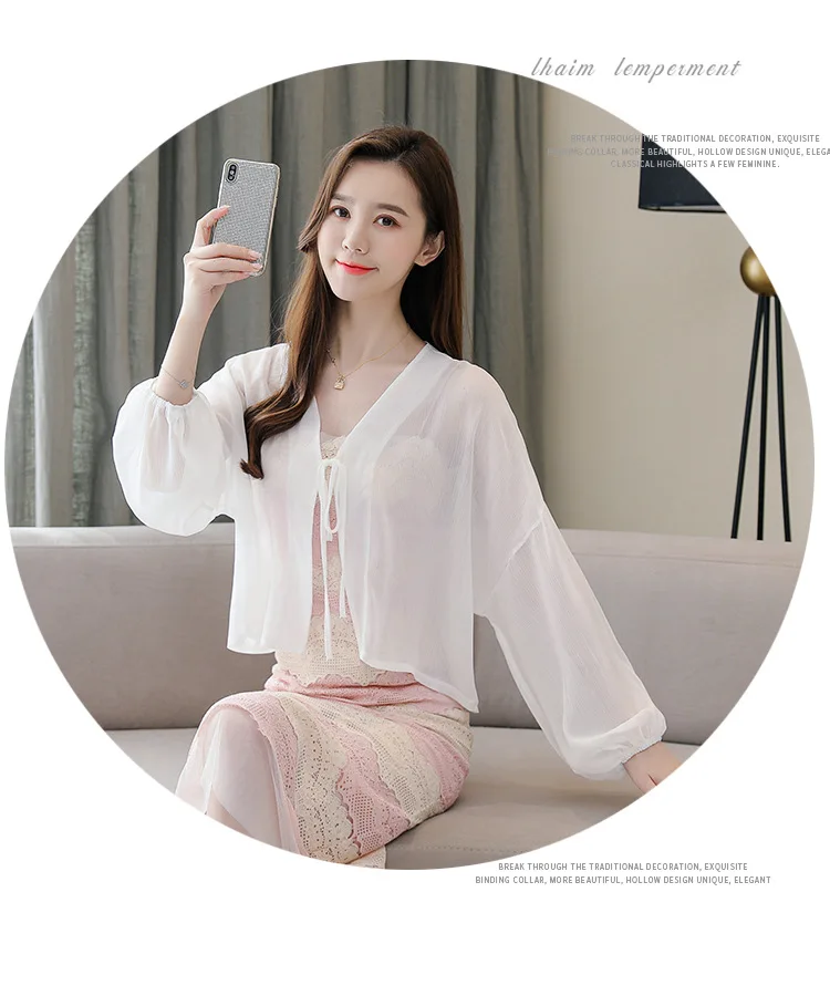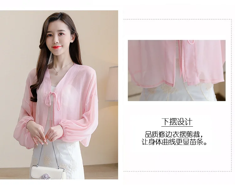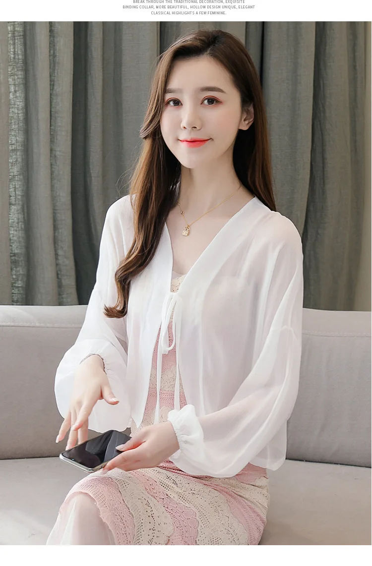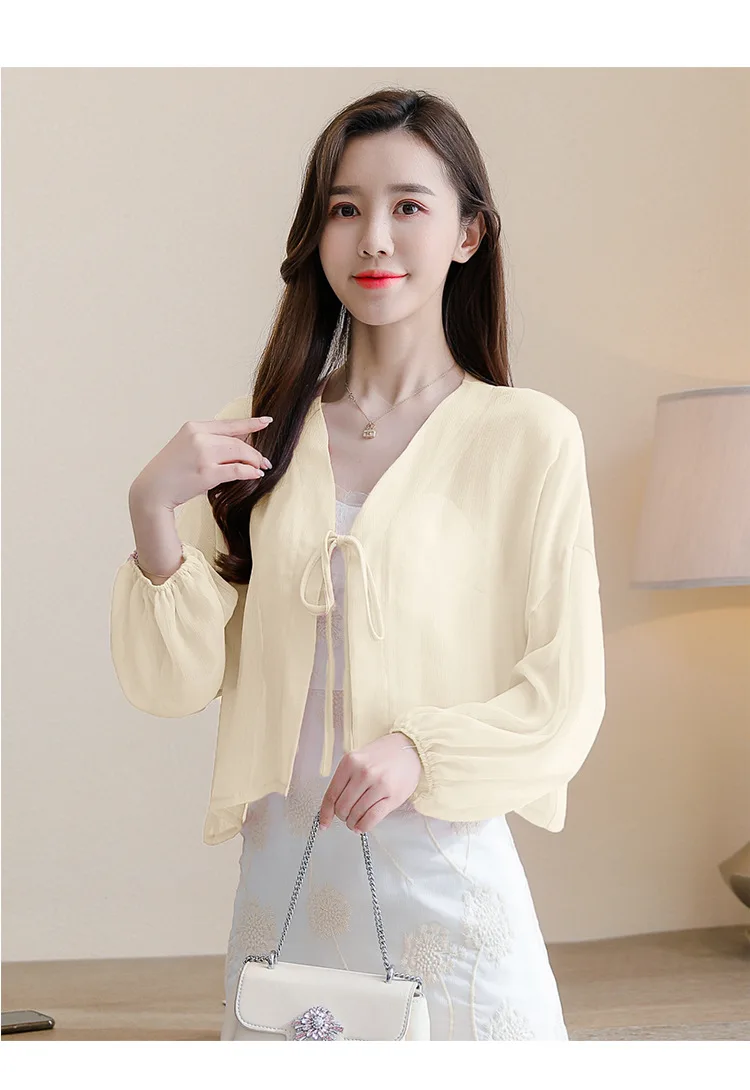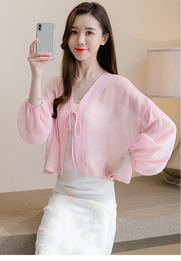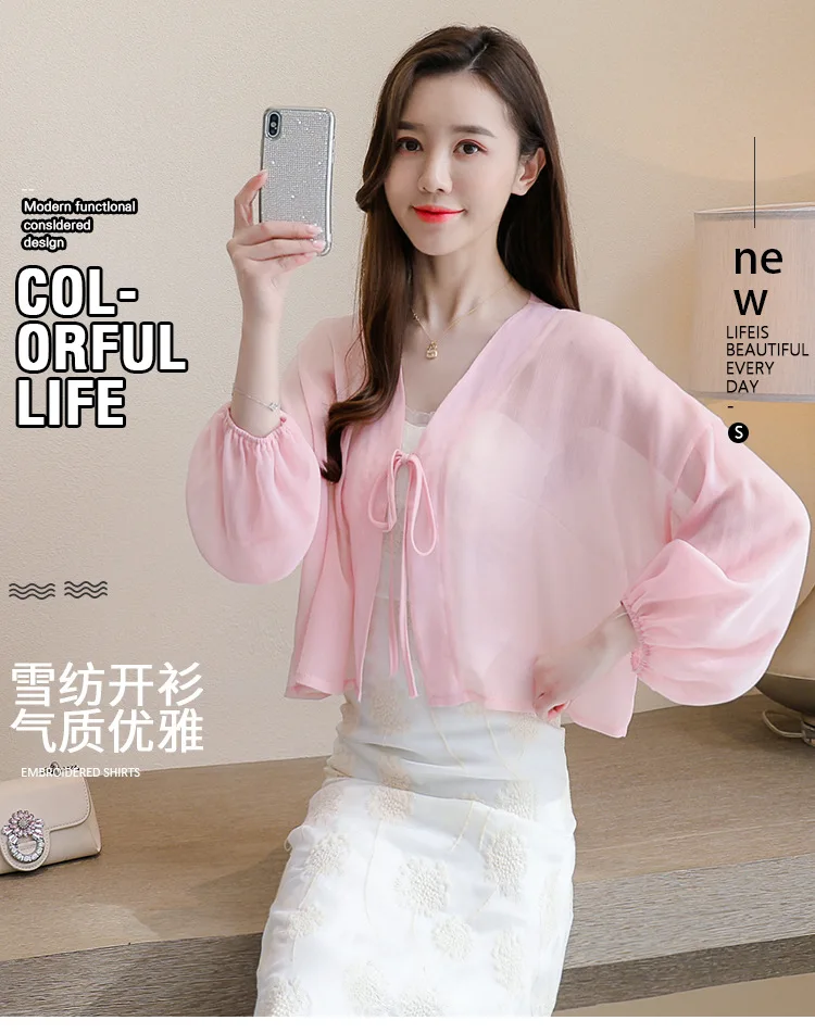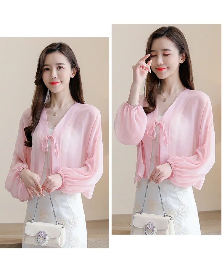 Little Shawl Short Sun Protection Cardigan Chiffon Blouse Women Spring and Autumn Thin All-Match Coat Fashion Woman Blouses 2021