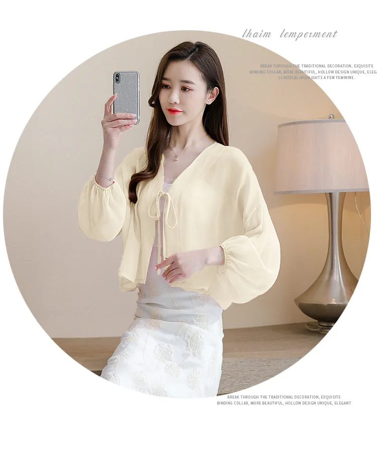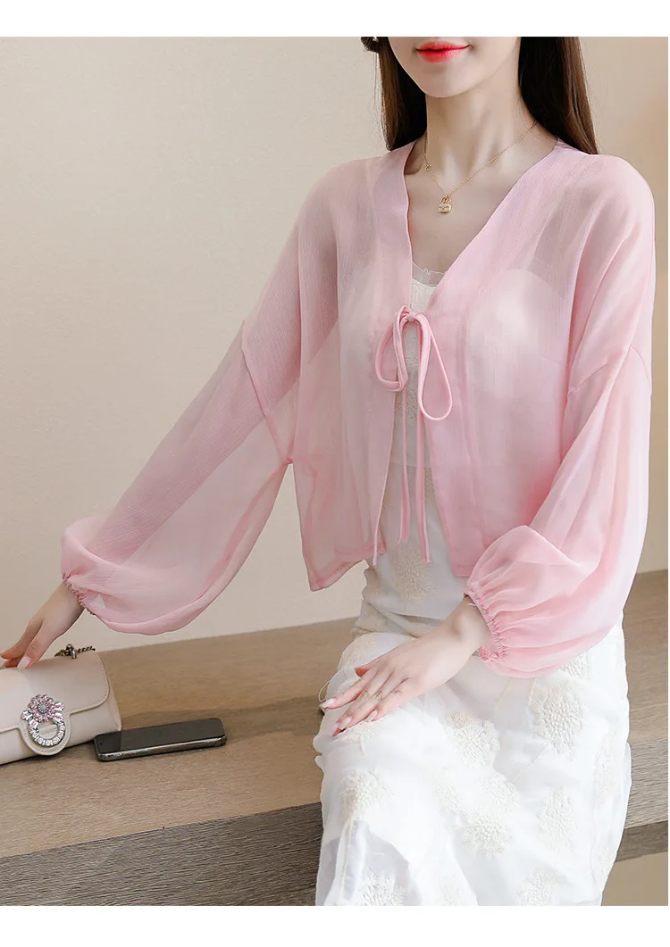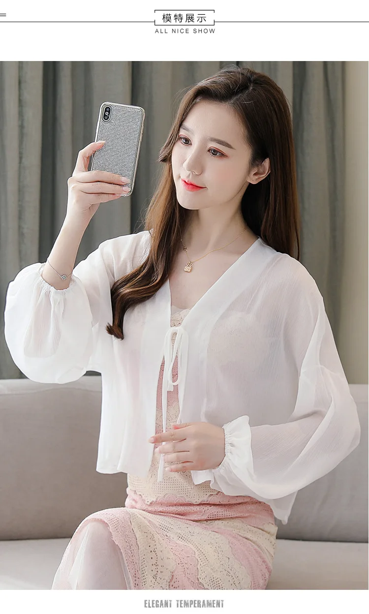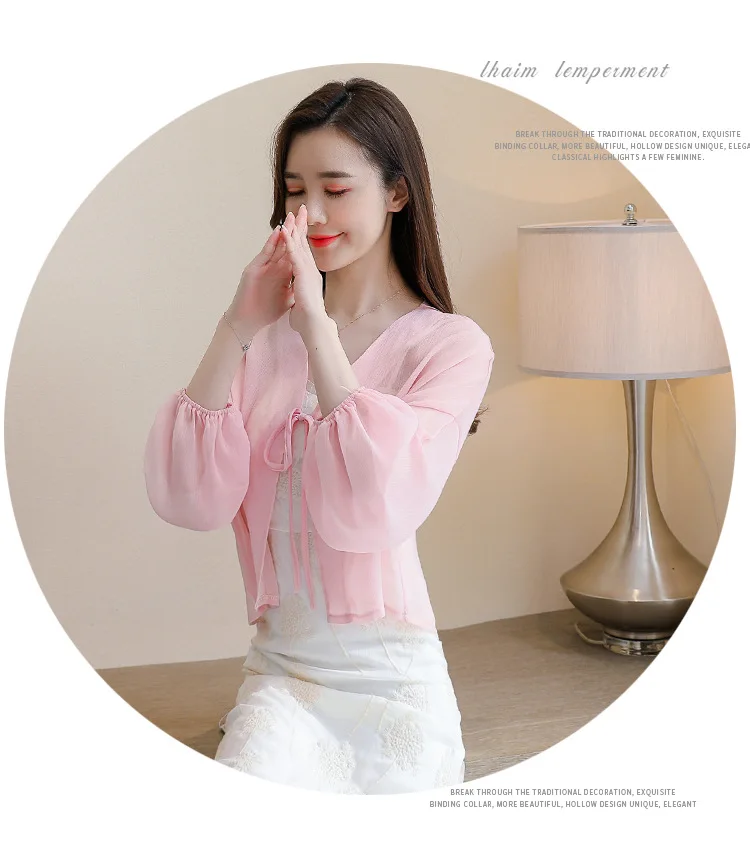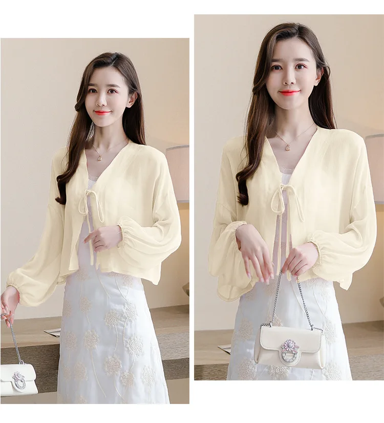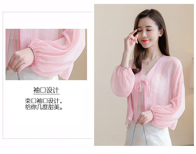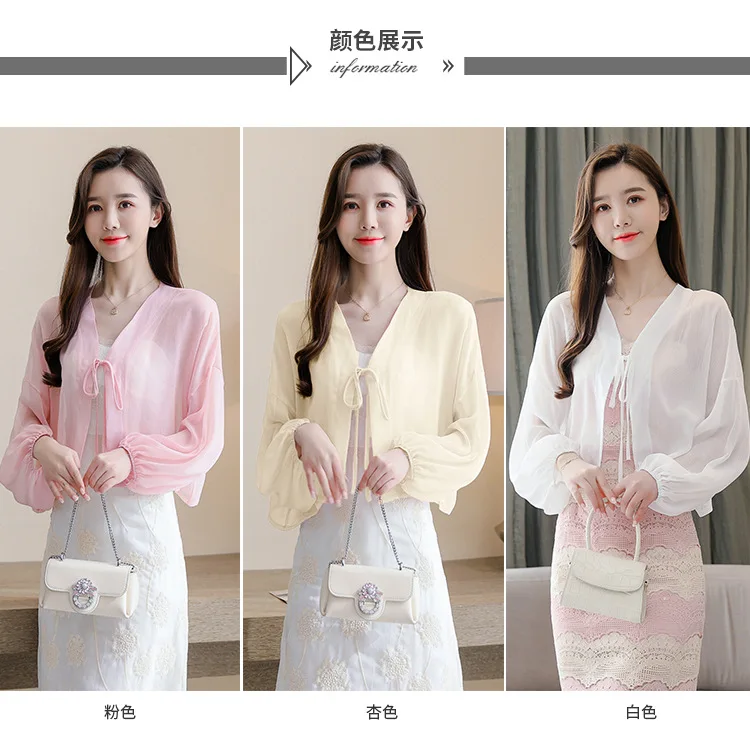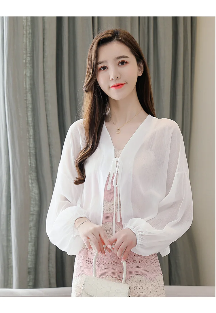 Little Shawl Short Sun Protection Cardigan Chiffon Blouse Women Spring and Autumn Thin All-Match Coat Fashion Woman Blouses 2021