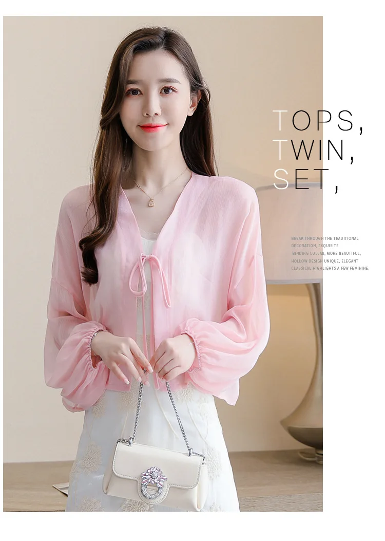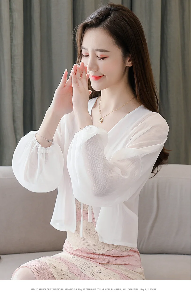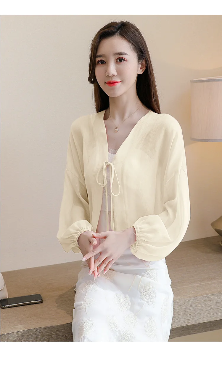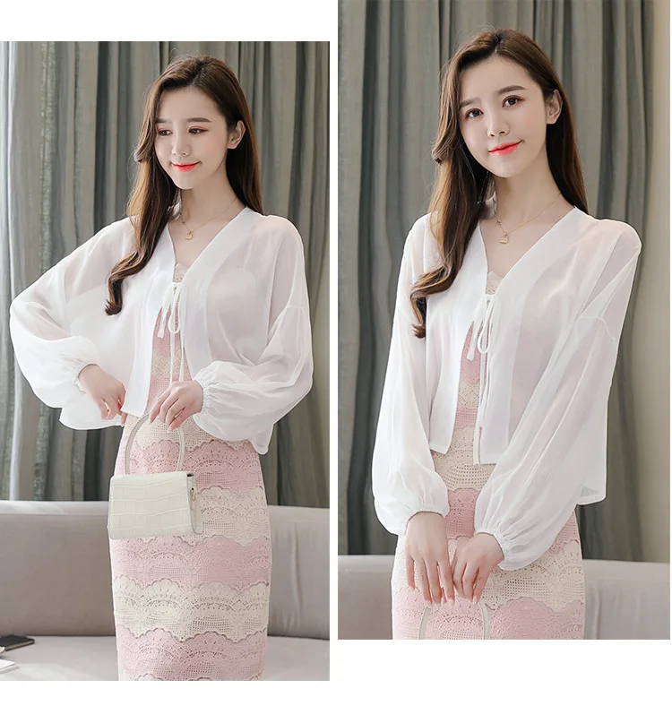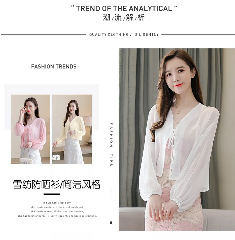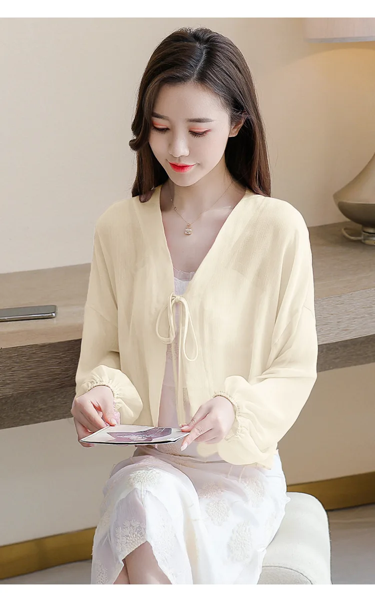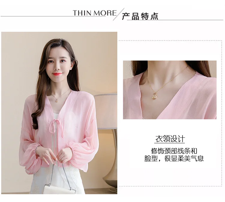 Little Shawl Short Sun Protection Cardigan Chiffon Blouse Women Spring and Autumn Thin All-Match Coat Fashion Woman Blouses 2021