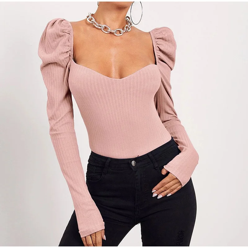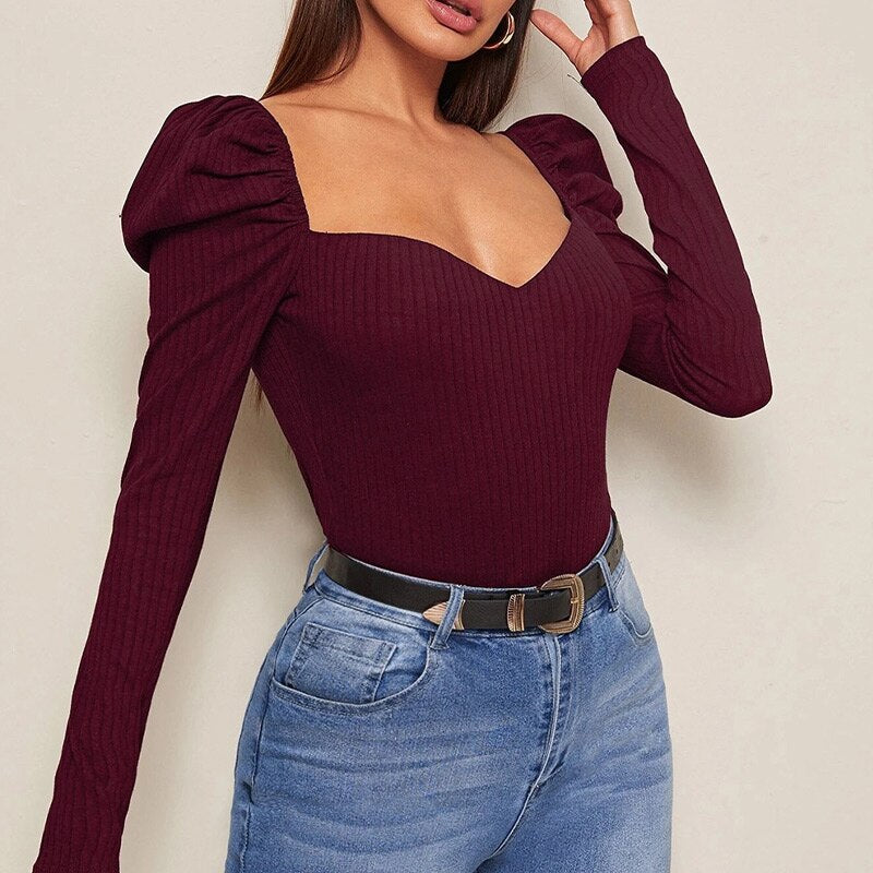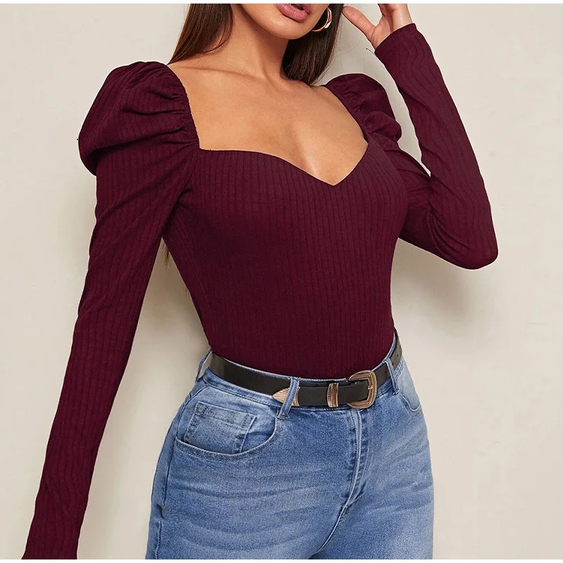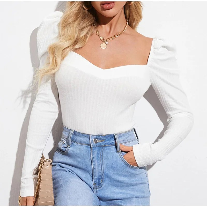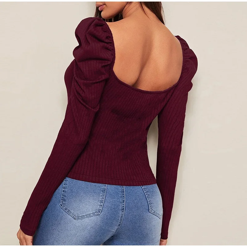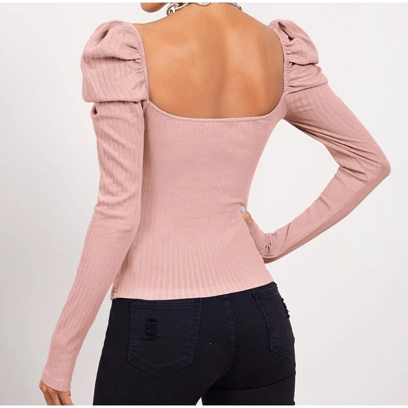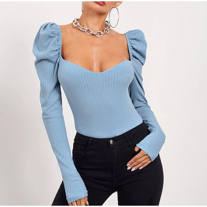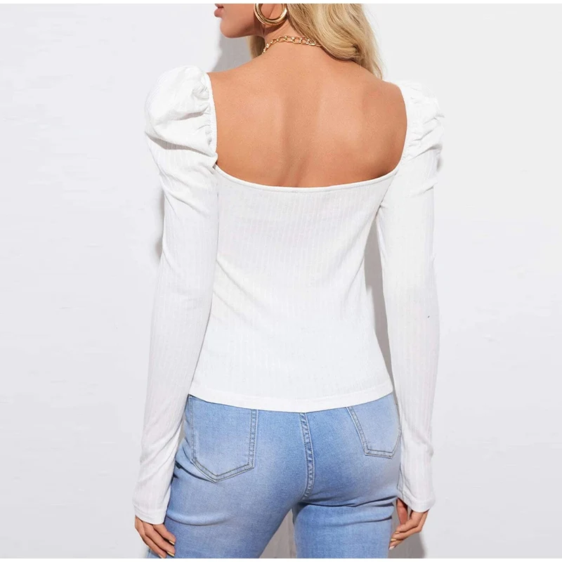 Long Puff Sleeve Women's Blouse Slim Sexy Square Collar Blouses Women 2021 Autumn New Streetwear Fashion Elegant Top Female
