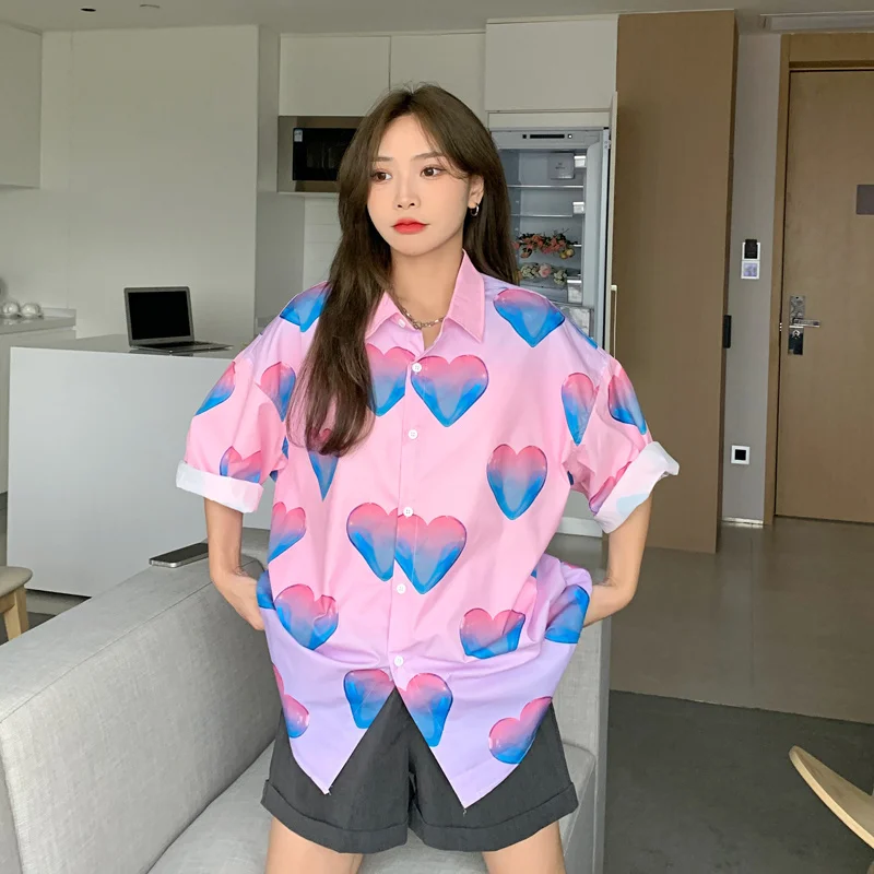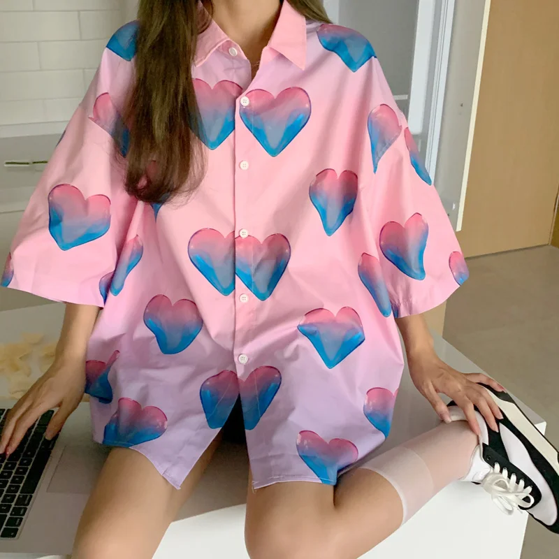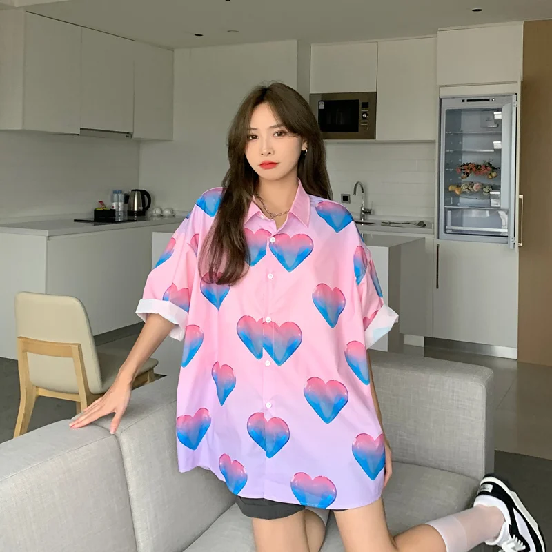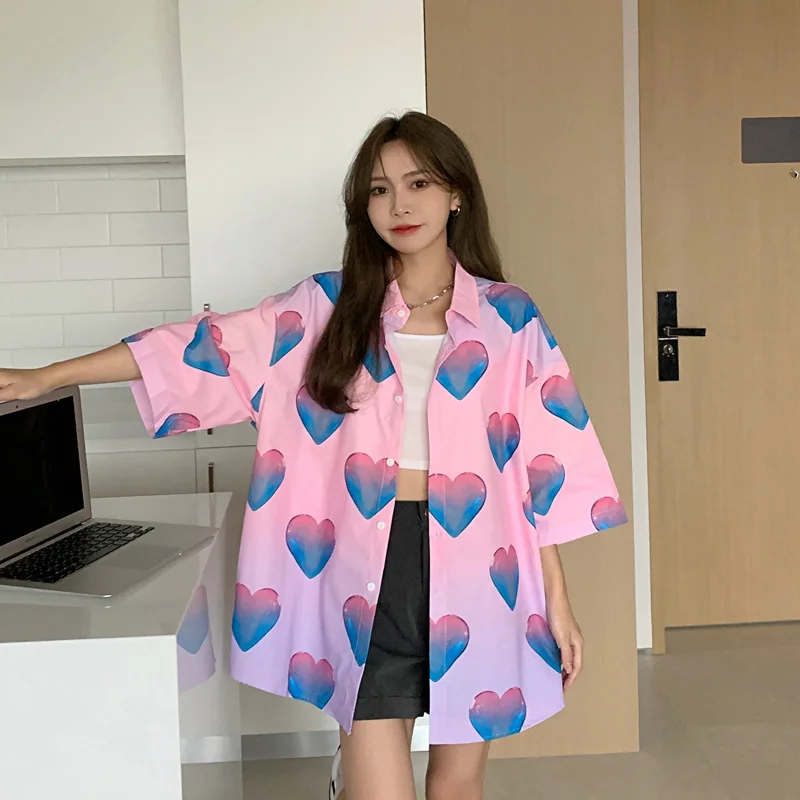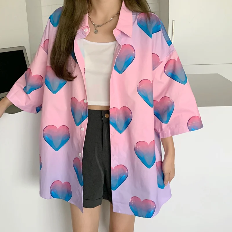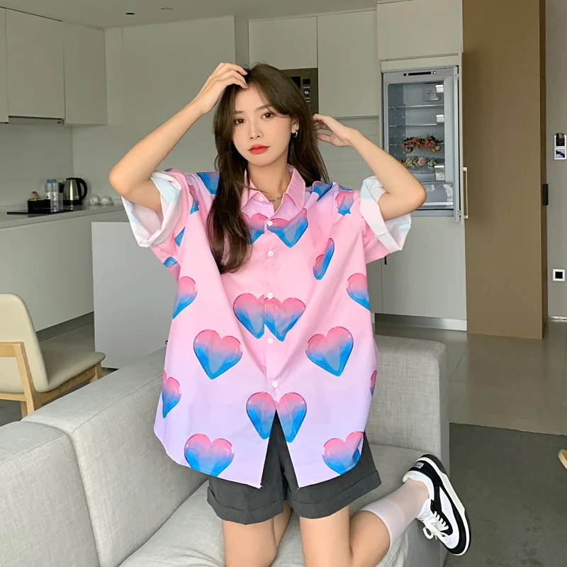Love Gradient Fresh Button Up Female Shirts Tops For Women Plus Size Summer Top Boho Clothing Oversized Cardigan Korean Fashion
