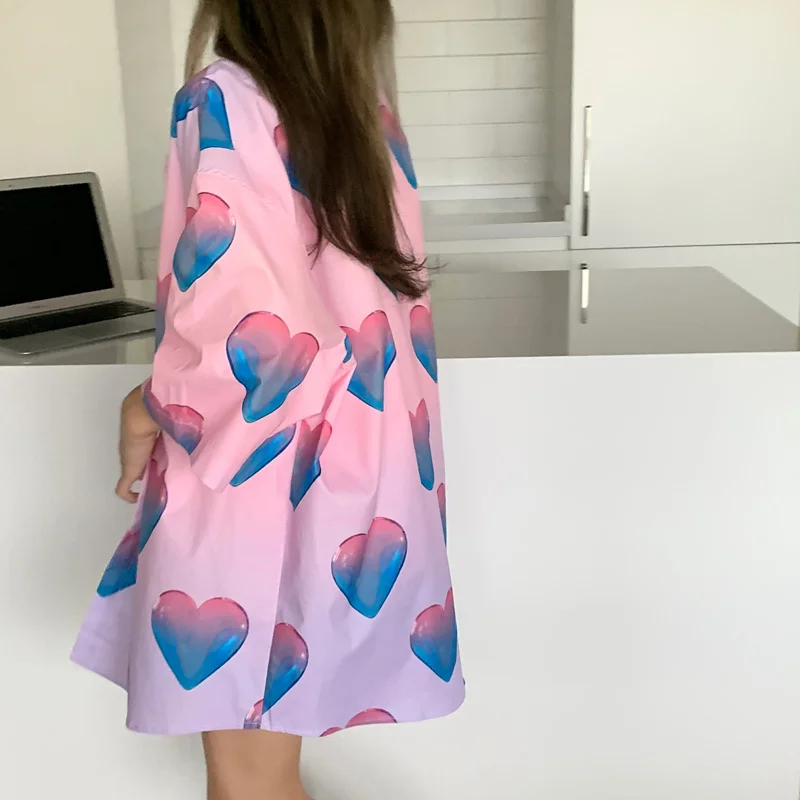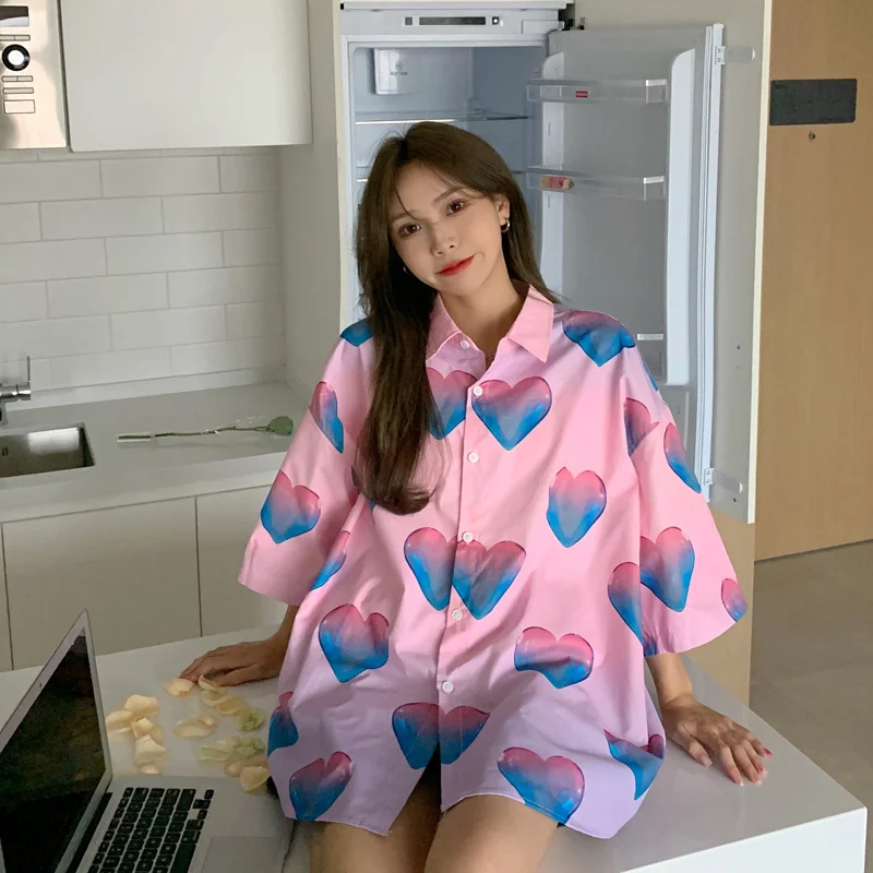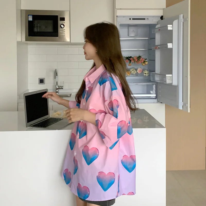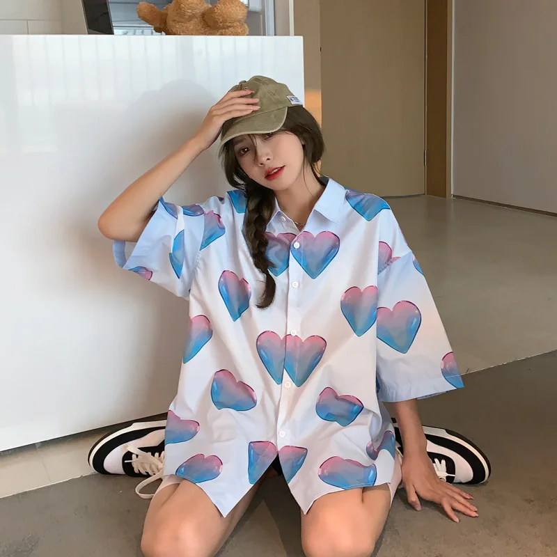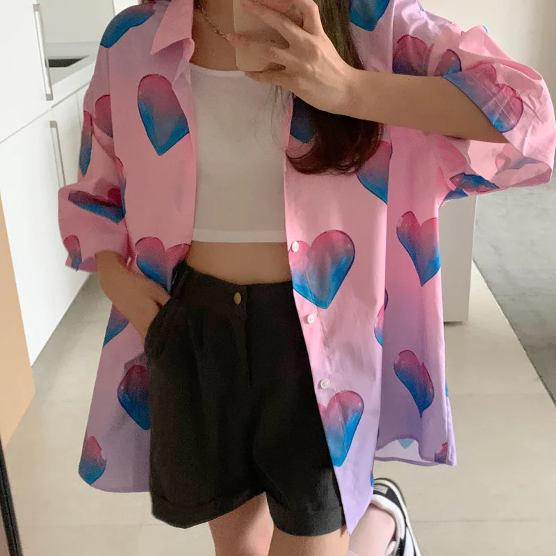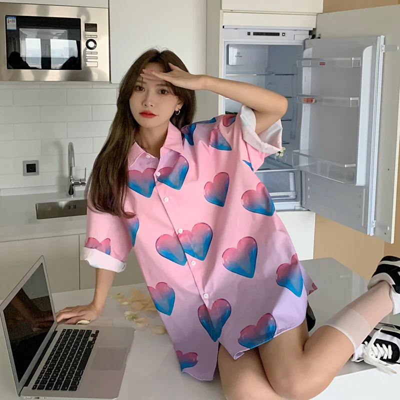 Love Gradient Fresh Button Up Female Shirts Tops For Women Plus Size Summer Top Boho Clothing Oversized Cardigan Korean Fashion