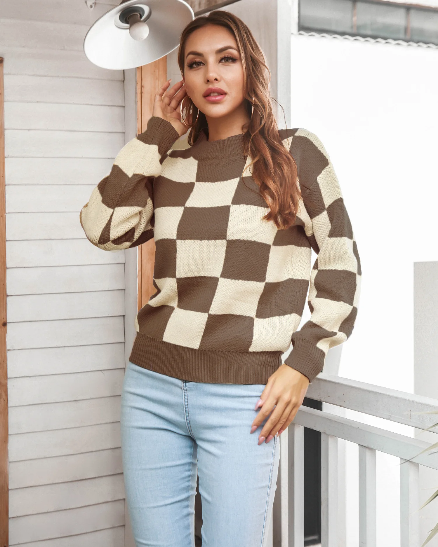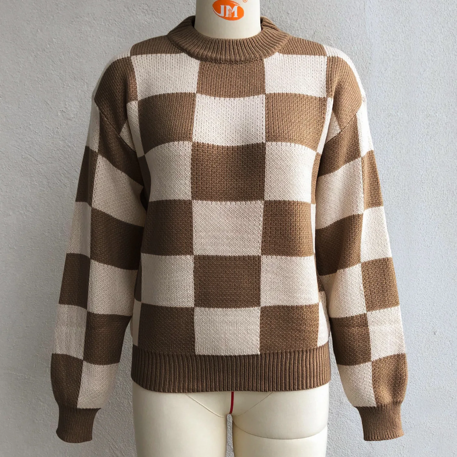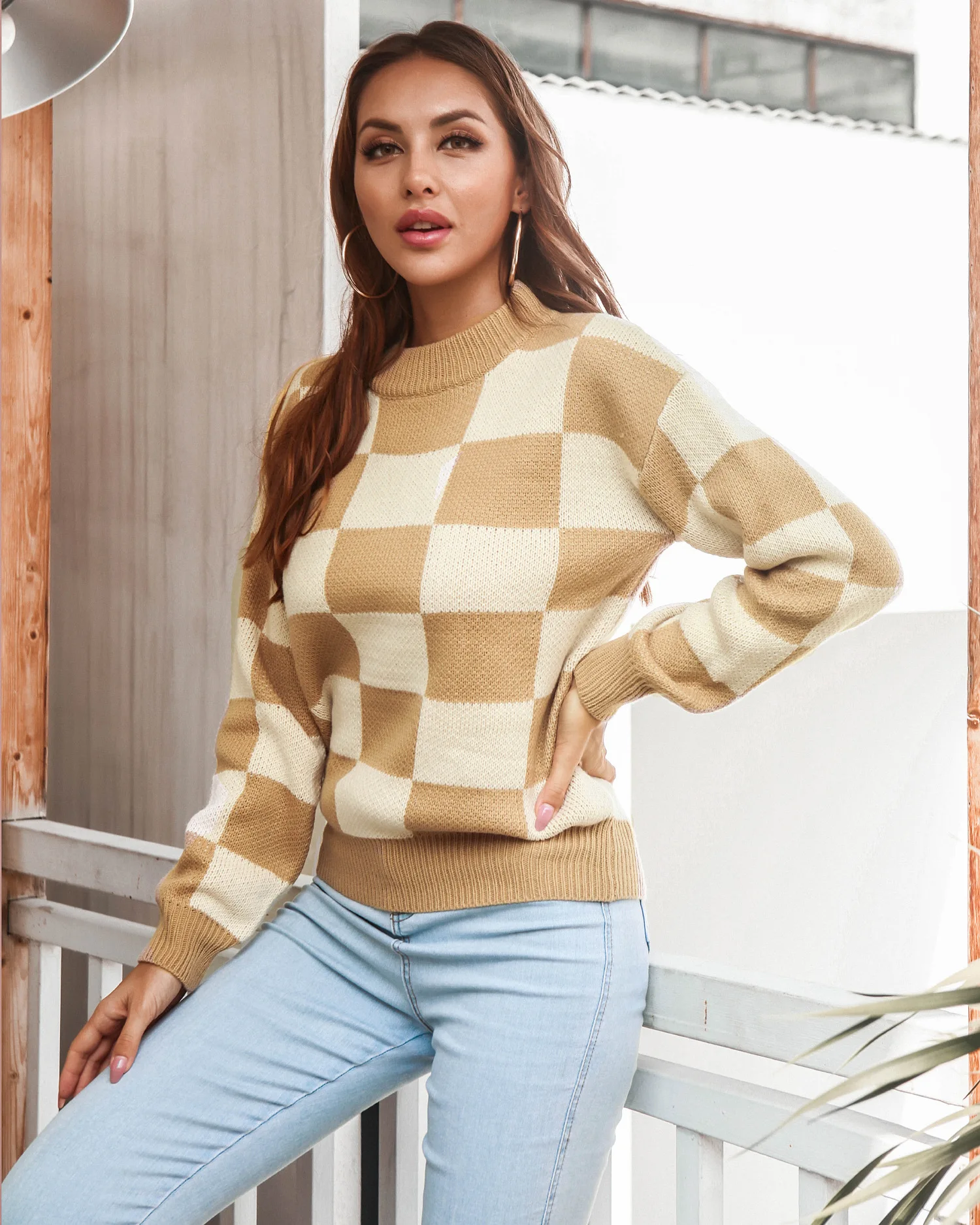 Plaid Sweater Women Knitted Pullovers Sweatrs Long Casual Loose Knitting Shirts Female Jumpers 2021 Autumn Winter
