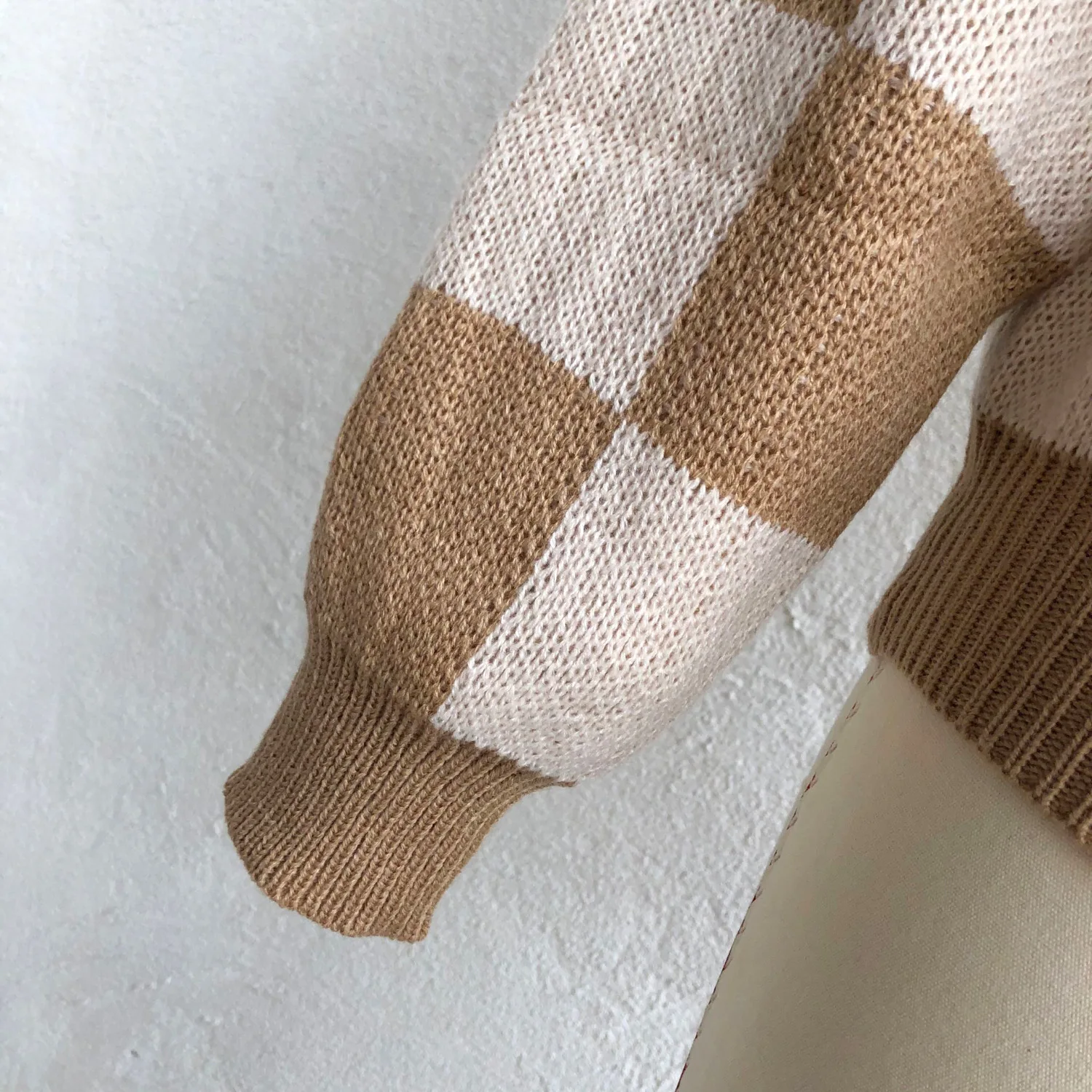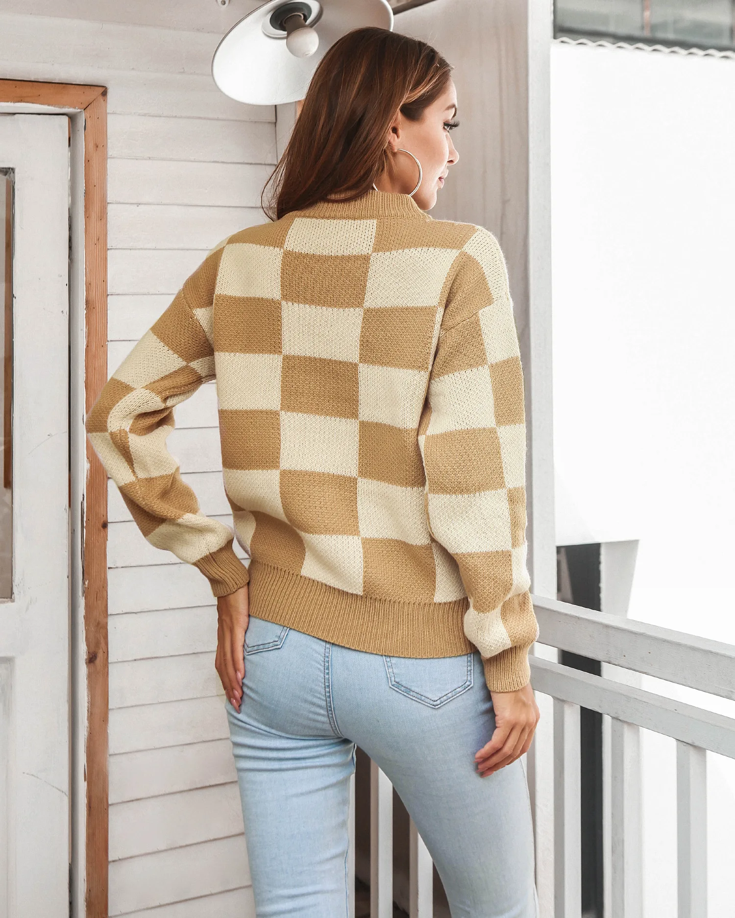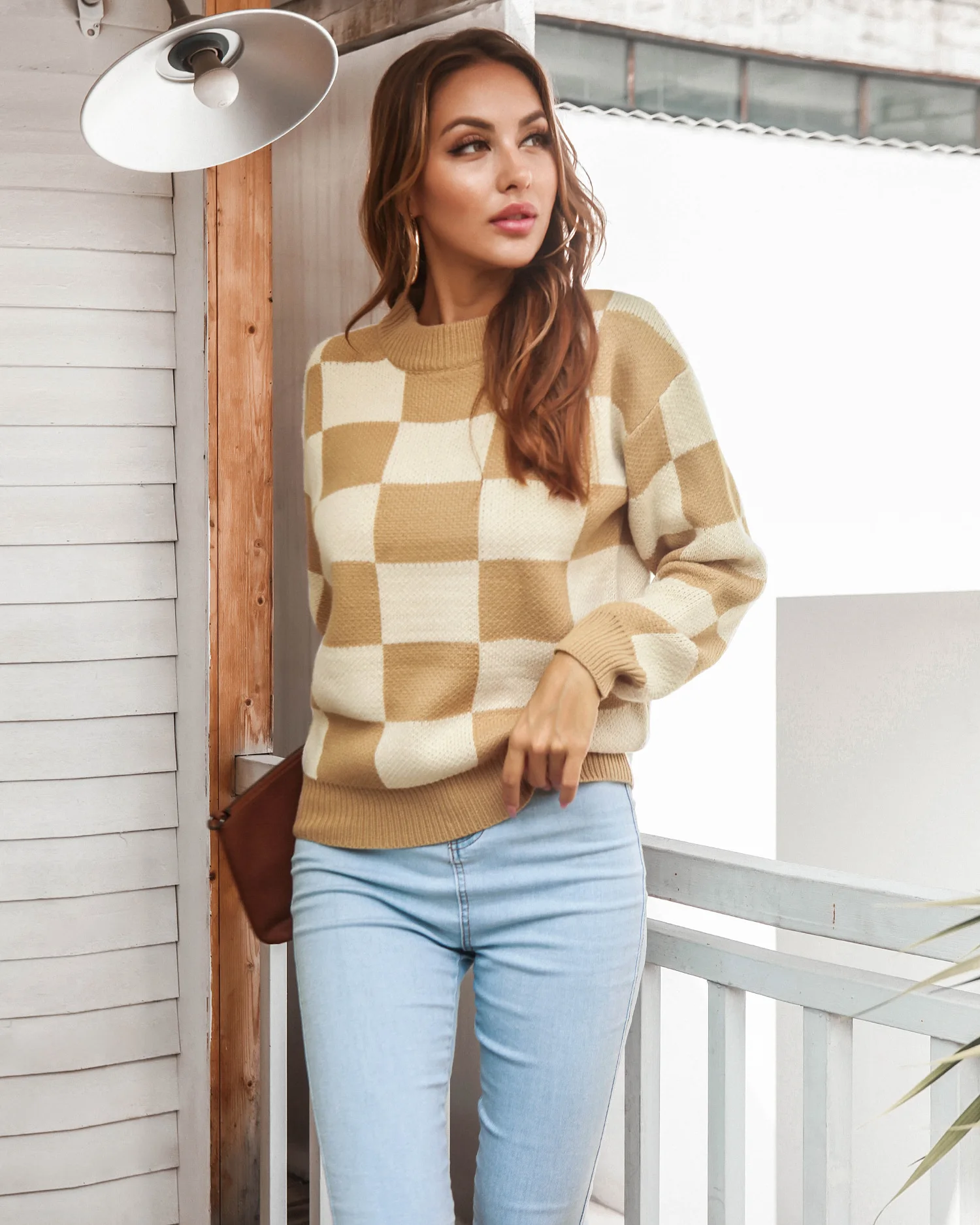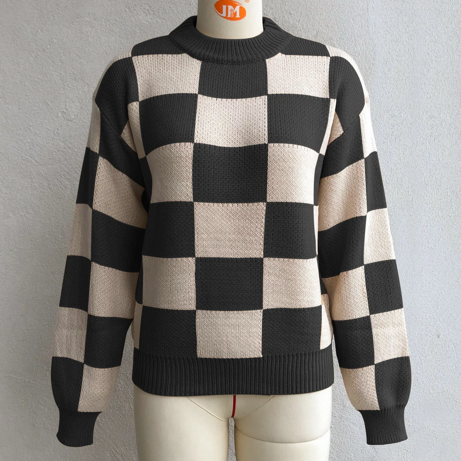 Plaid Sweater Women Knitted Pullovers Sweatrs Long Casual Loose Knitting Shirts Female Jumpers 2021 Autumn Winter