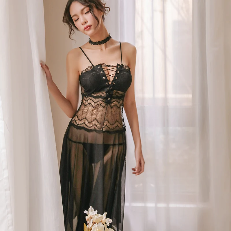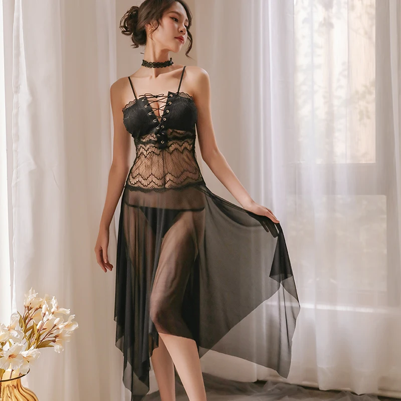 Sexy Lace Seduction Sling Nightdress Underwear Sleepshirts Nighties for Women Lingerie Nightgown Sleeping Dress
