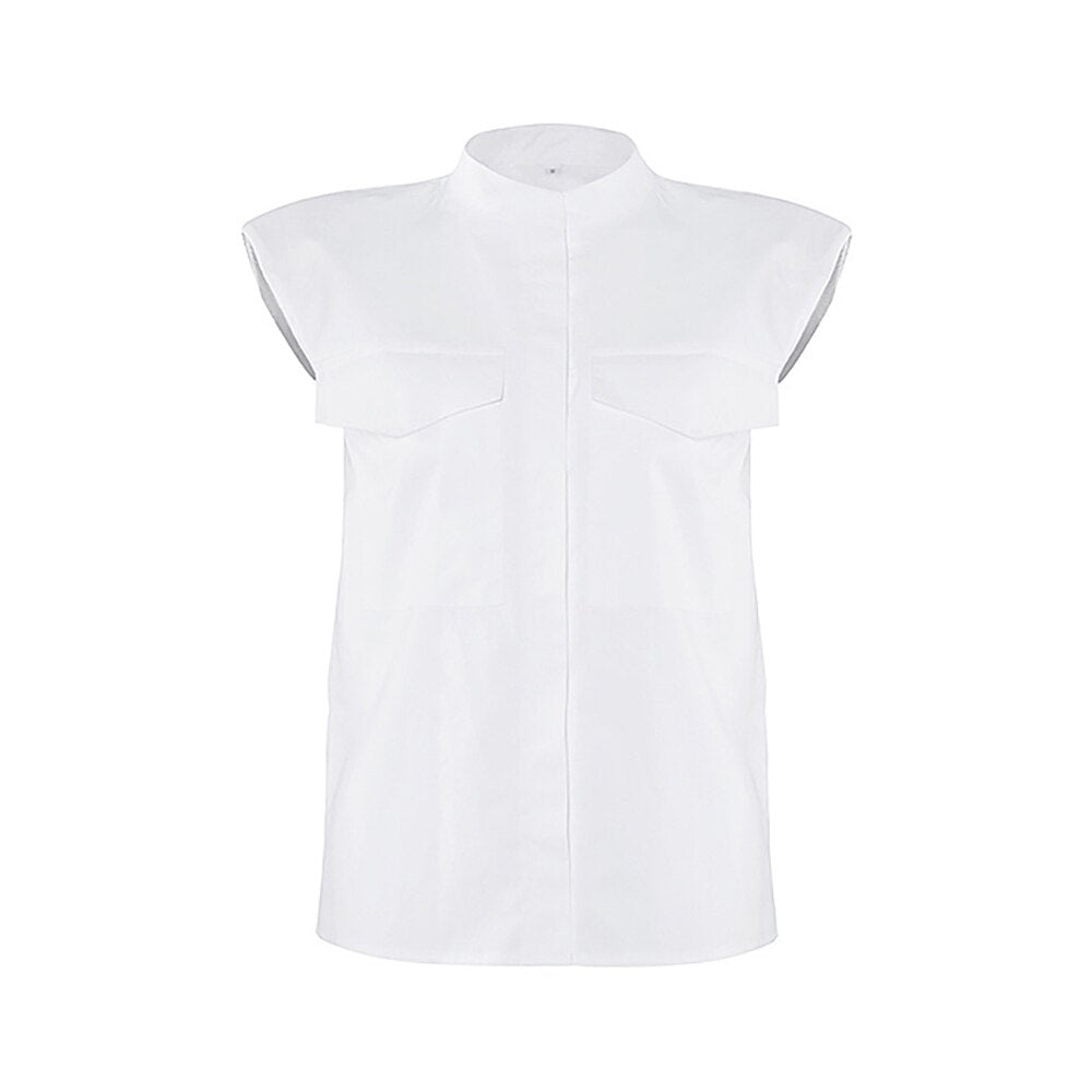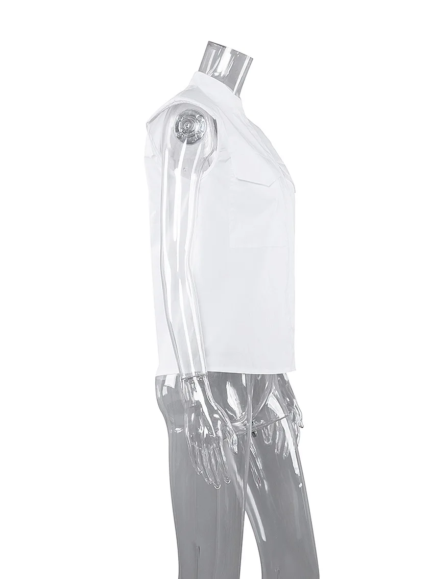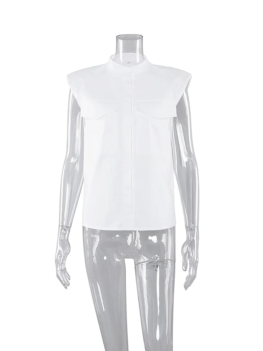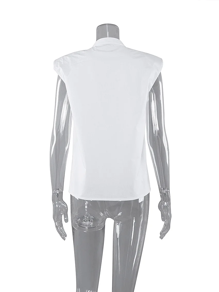 Sexy White O-neck Shoulder Pad Shirt Blouses Woman Summer Fashion Sleeveless Button Shirts For Women 2021 Elegant Tops Femme