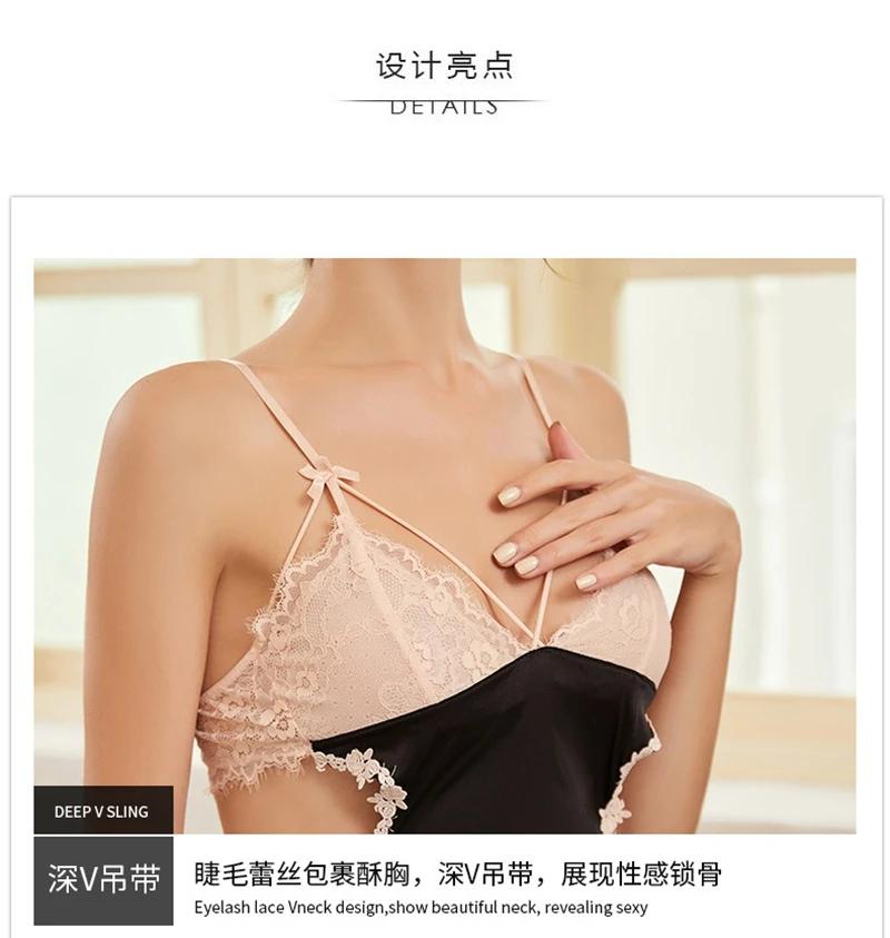 Satin Nighties for Women Sexy Lingerie Summer Silk Nightwear Spaghetti Strap Lace Sleepwear Pyjamas Homewear