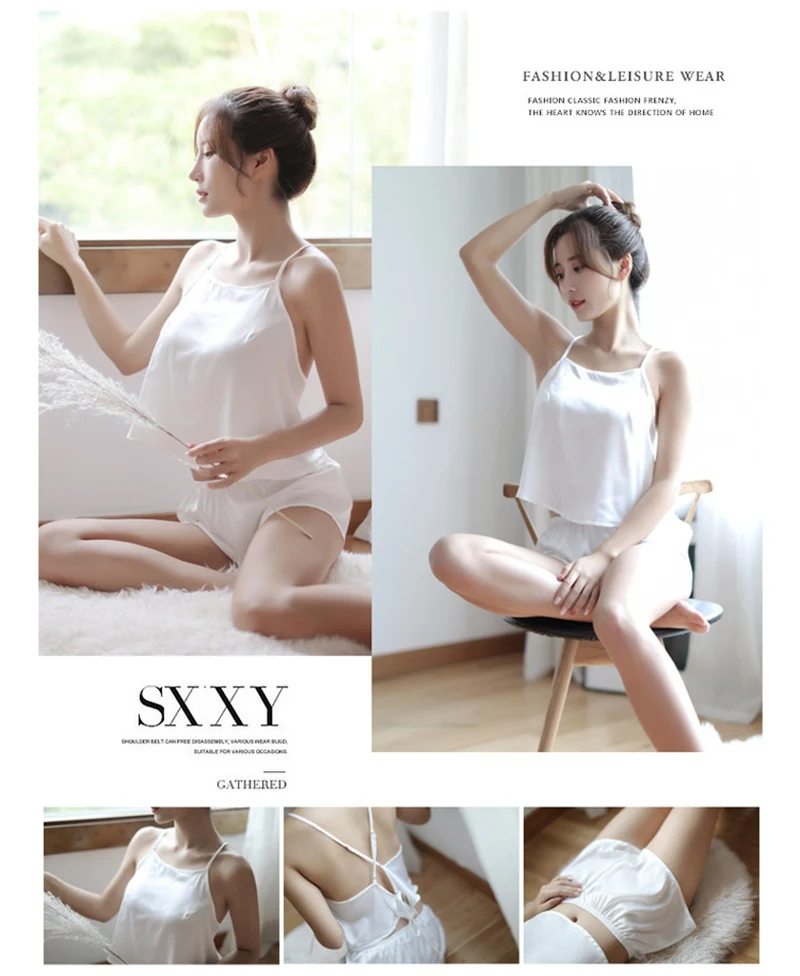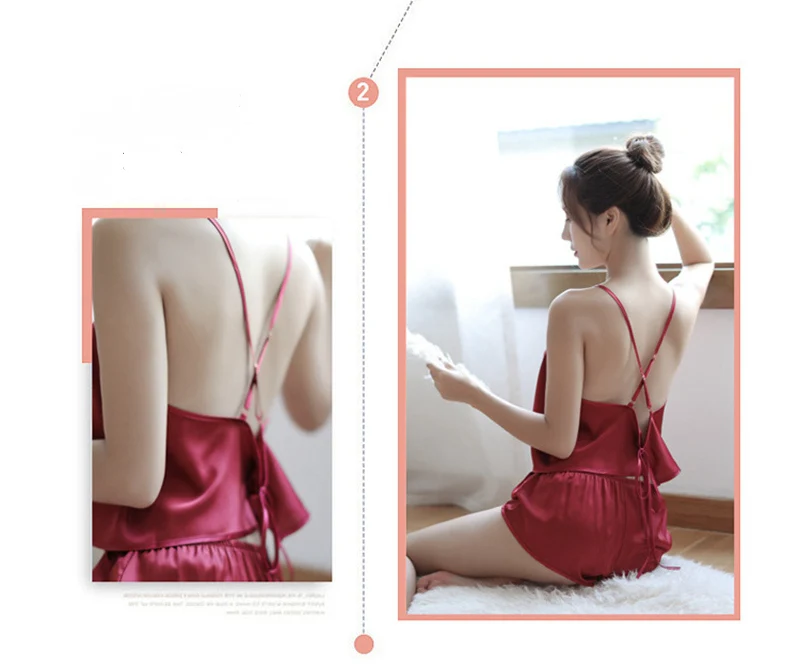 Silk Pyjamas Sexy Hot Erotic Satin Pajamas Sets Backless Sexy Ladies Sleepshirts Nightwear Femme Women Lingerie Women Homewear