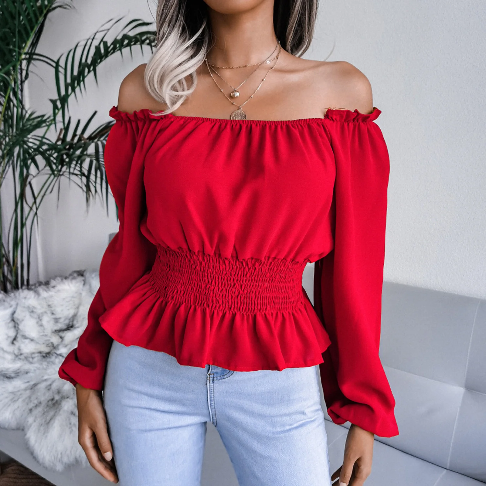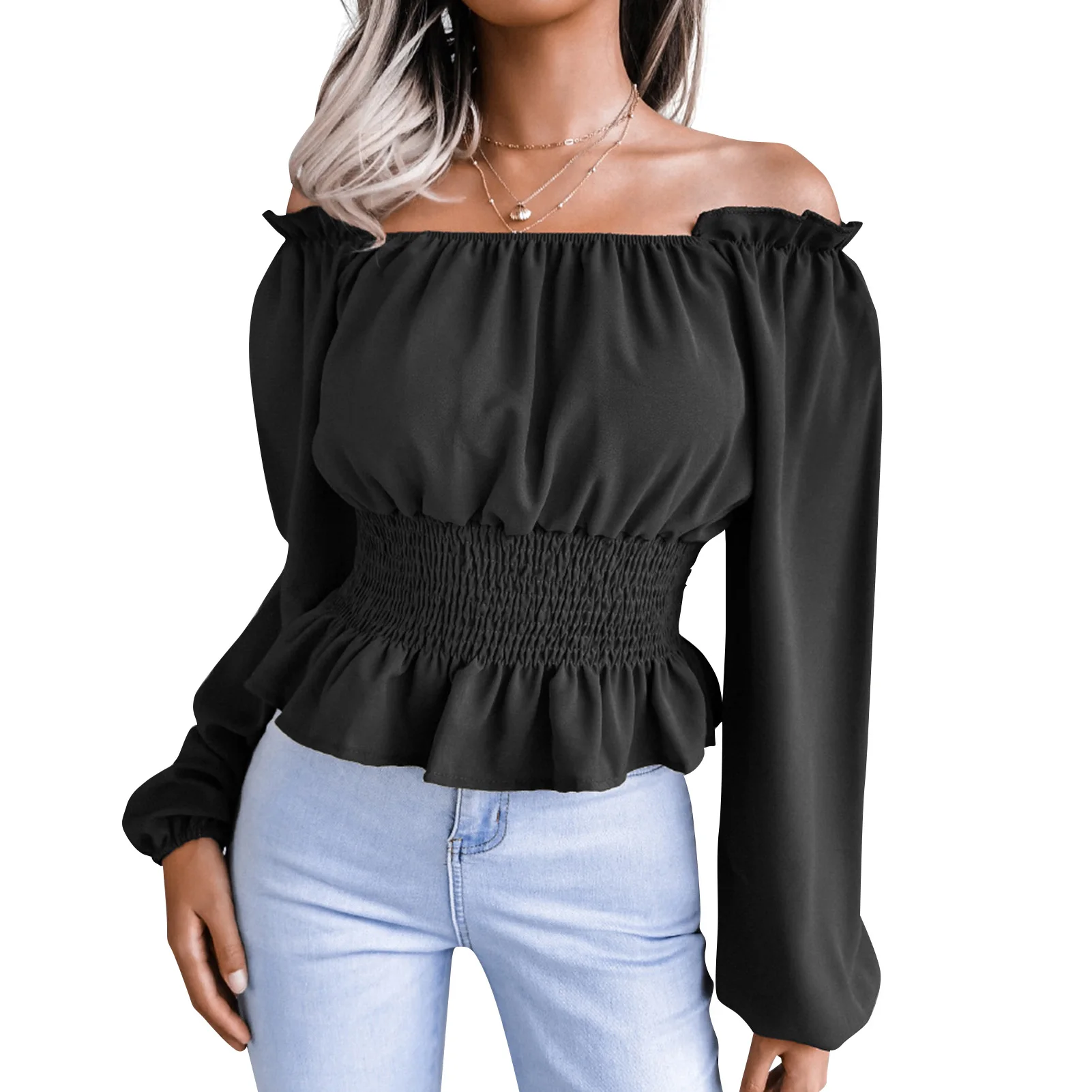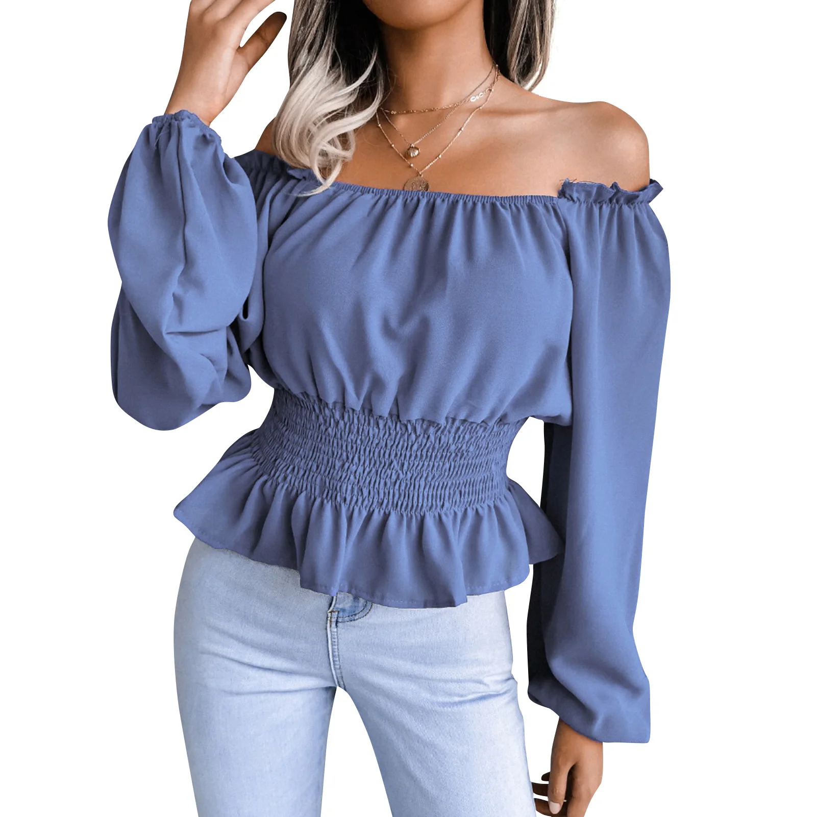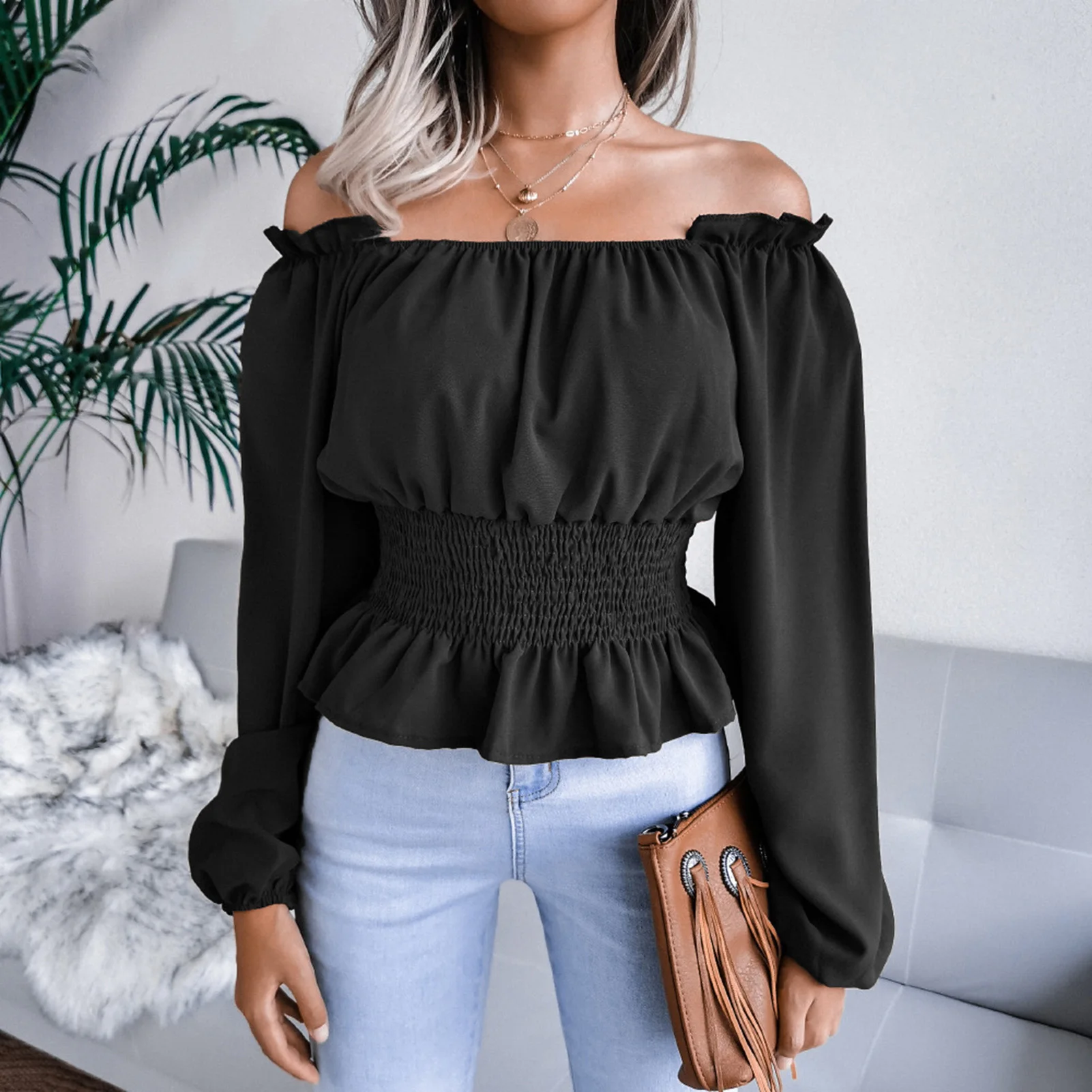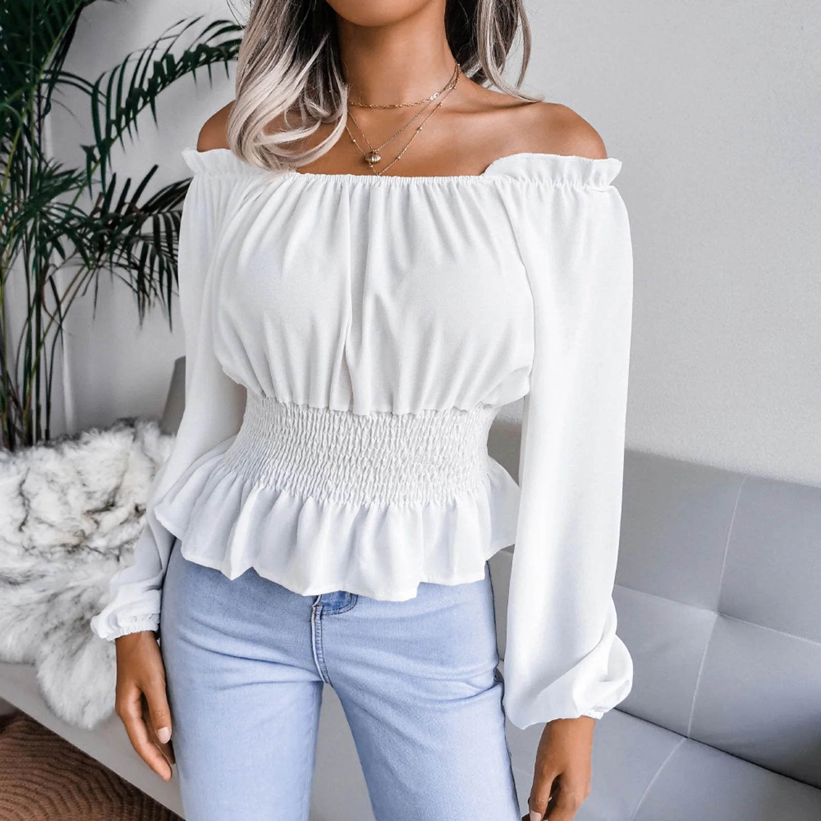 Solid Color Tops Fashion Women Ladies Long Sleeve Off Shoulder Sexy Shirt 2021 New Chiffon Blouses Female T-shirt Ladies Office