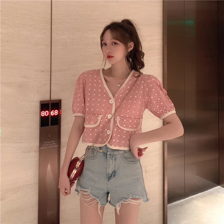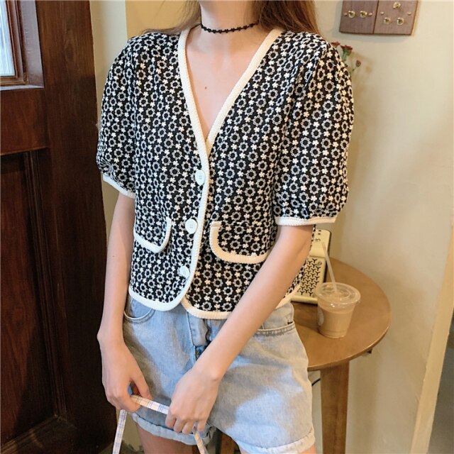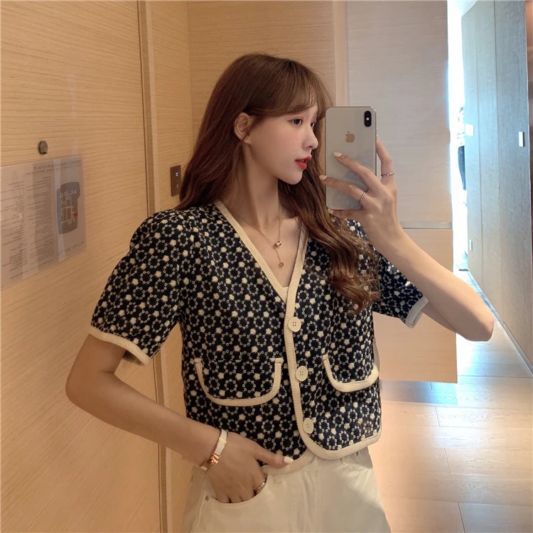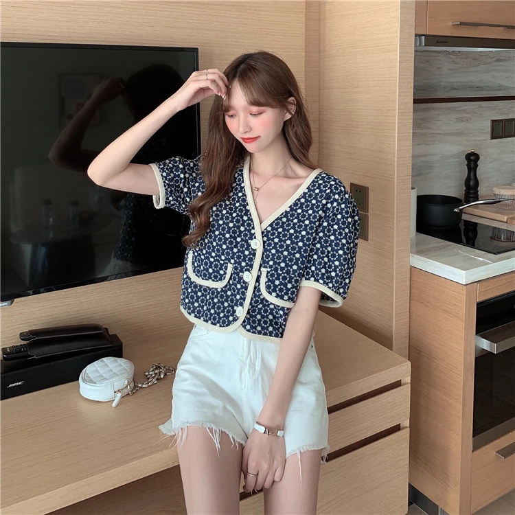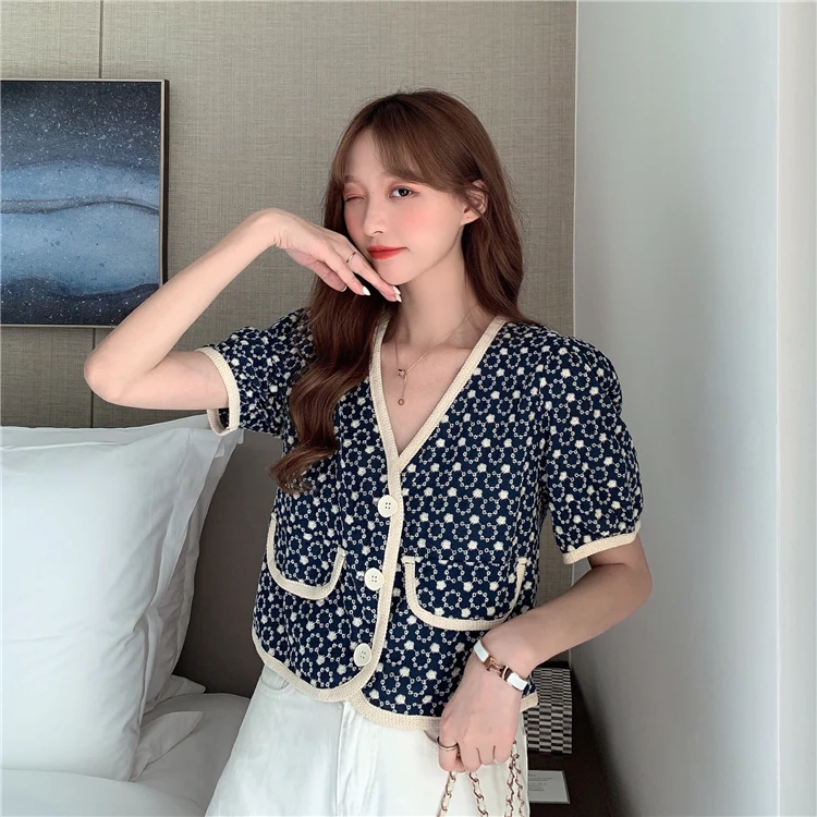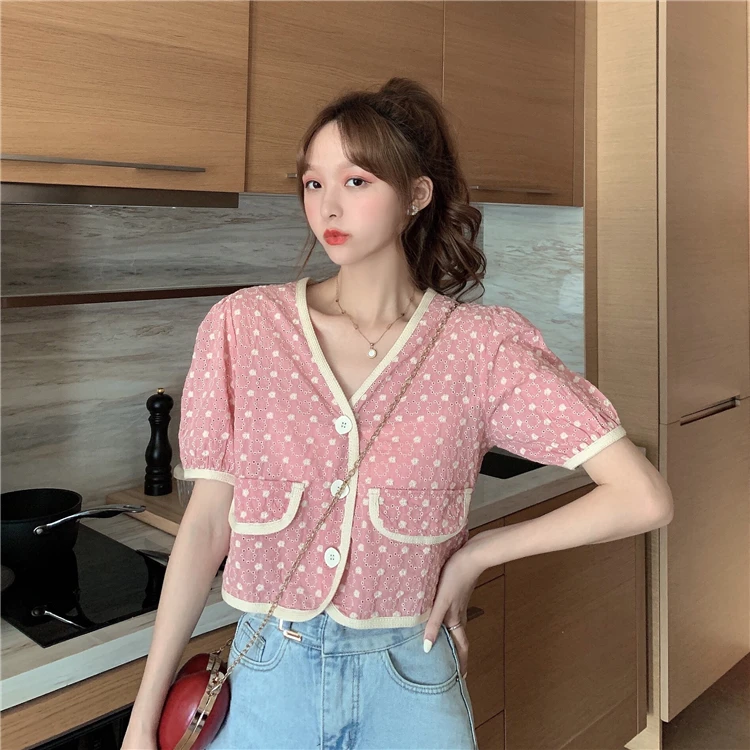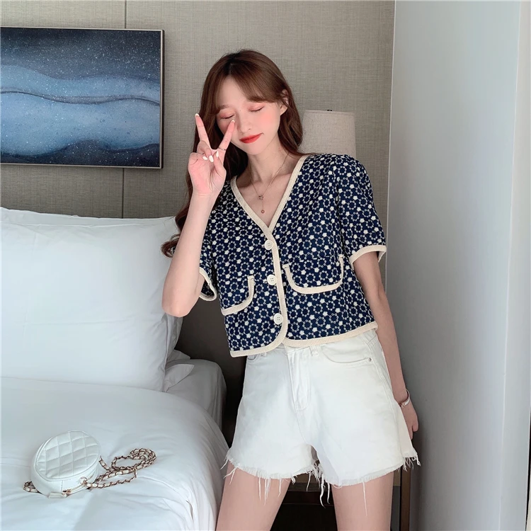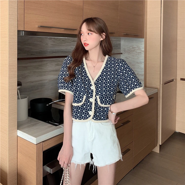 summer blouses femme Women's Clothing crop tops v-neck Blouses casual loose Female Shirts floral outfits