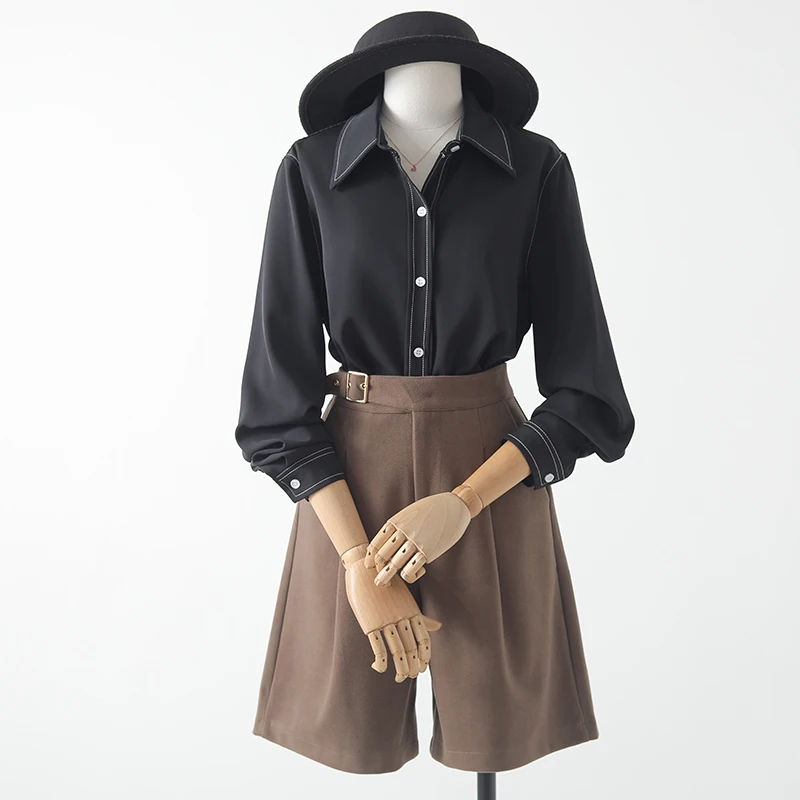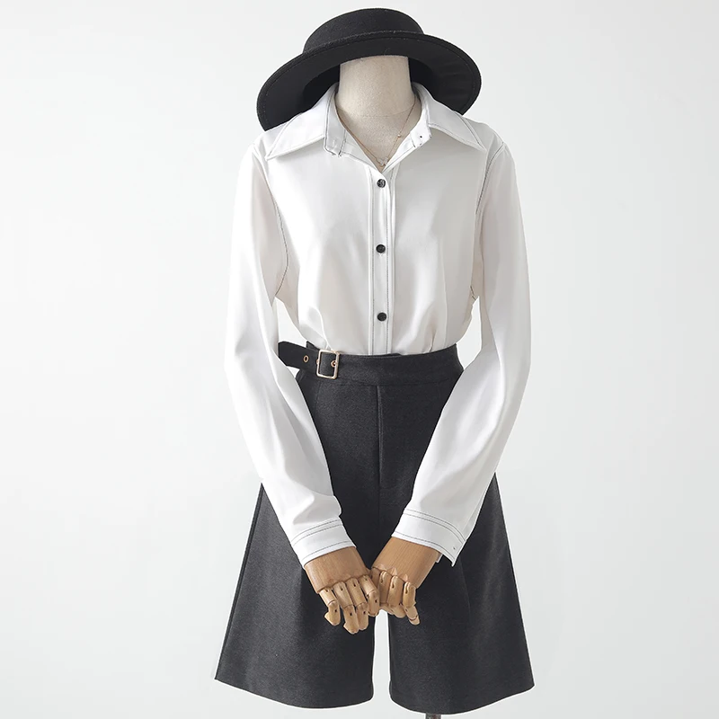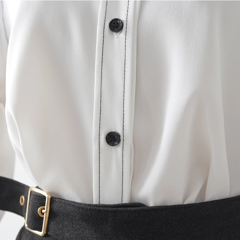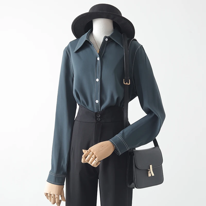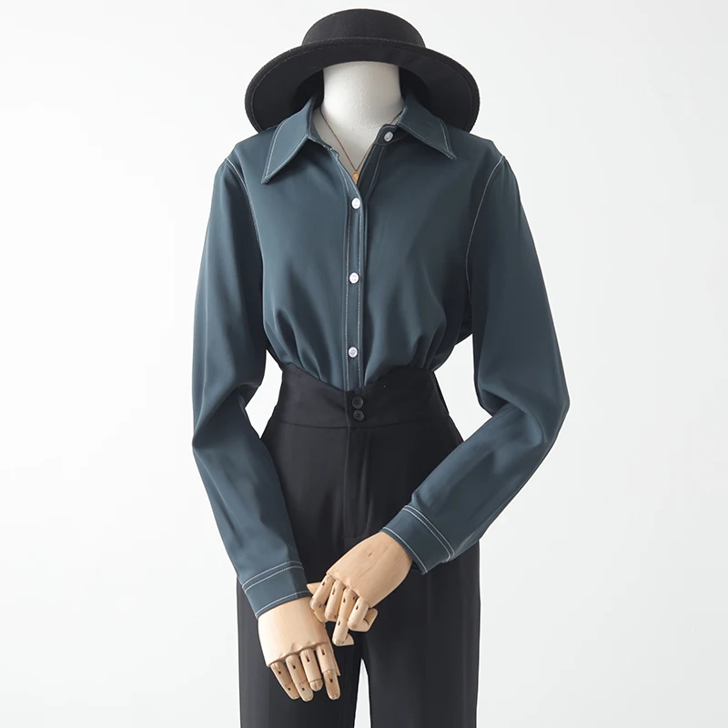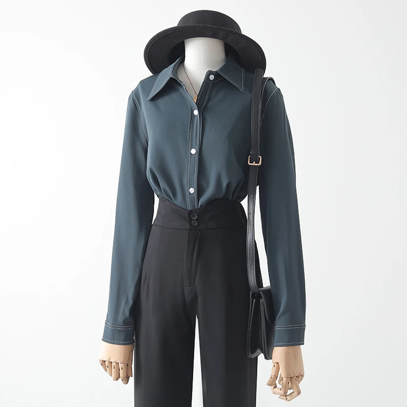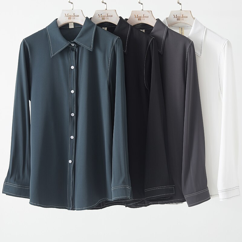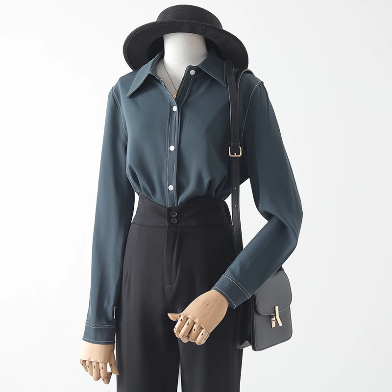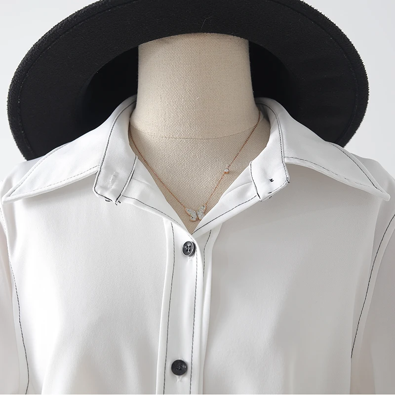 Summer New 2021 Women Shirts Turn-Down Collar Long-Sleeved Loose Elegant Office Lady Outwear Tops