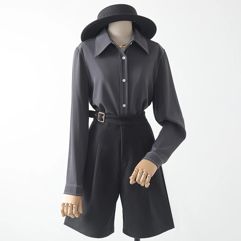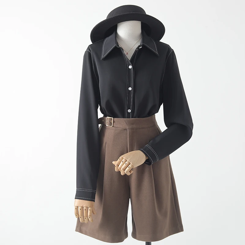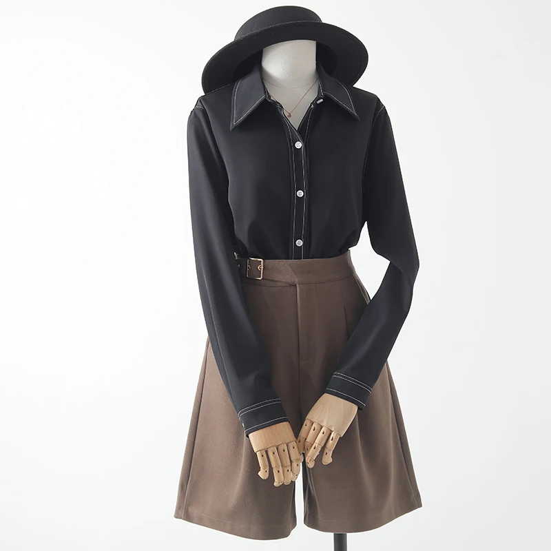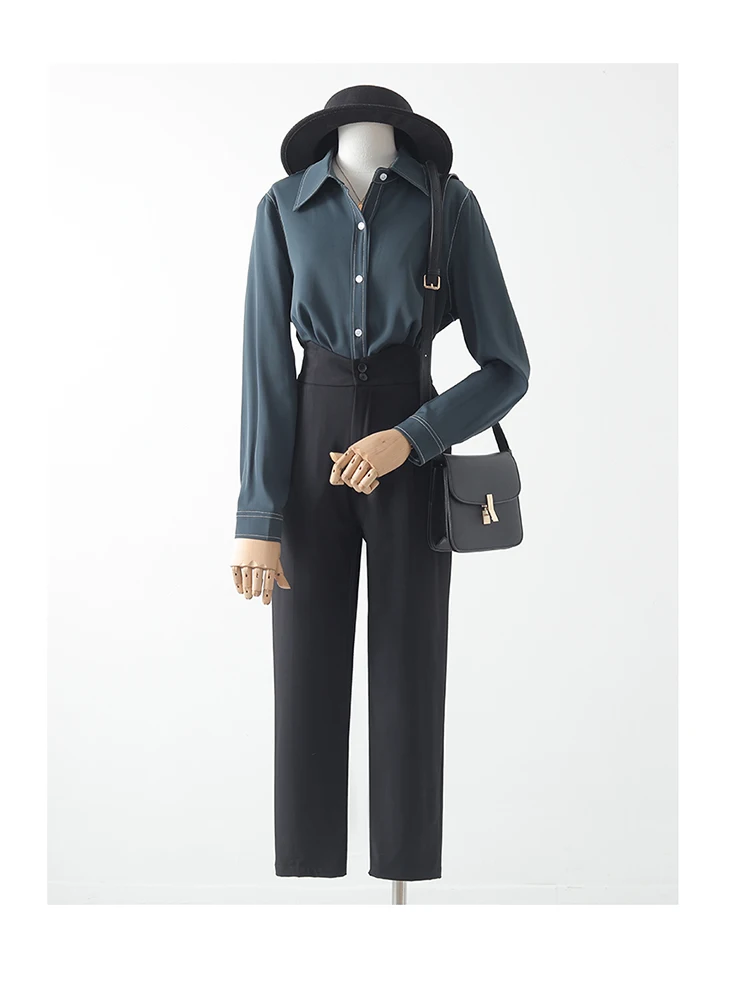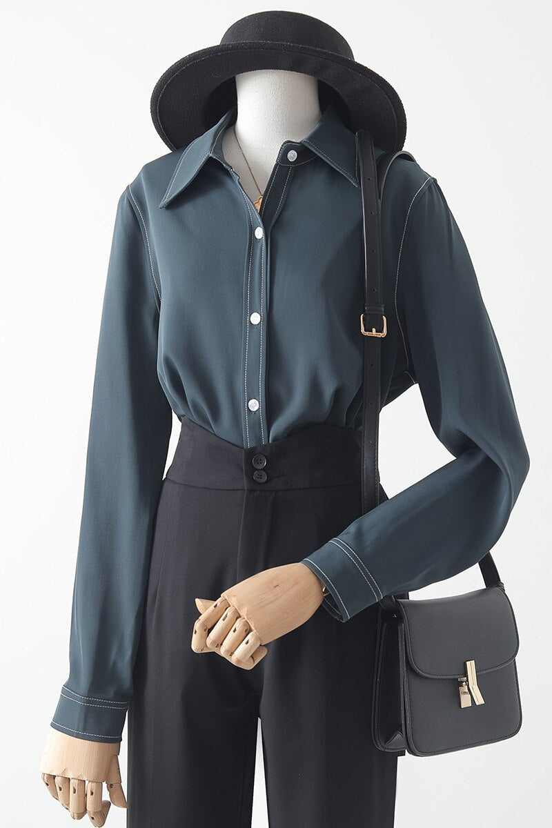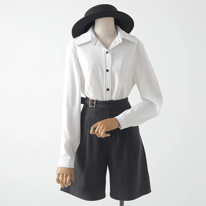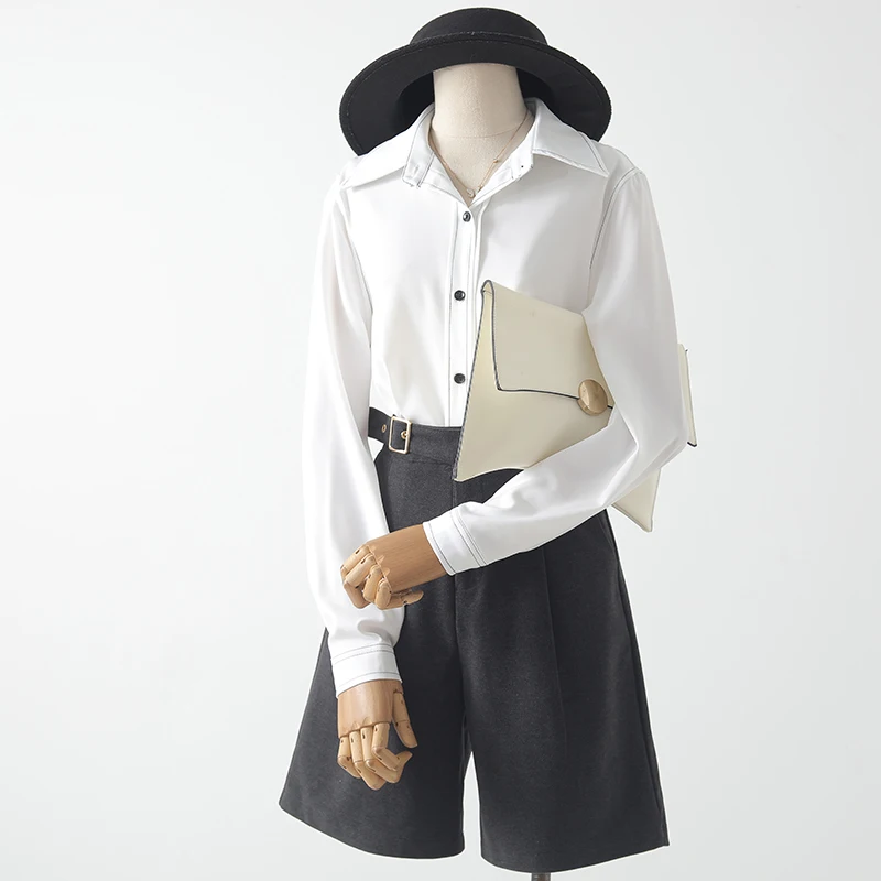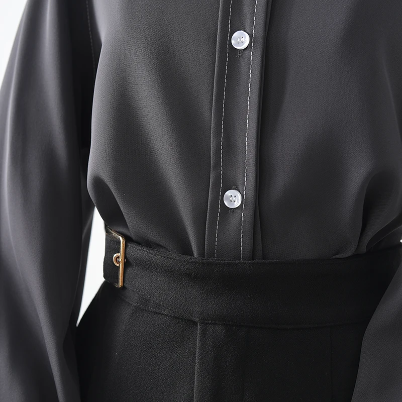 Summer New 2021 Women Shirts Turn-Down Collar Long-Sleeved Loose Elegant Office Lady Outwear Tops