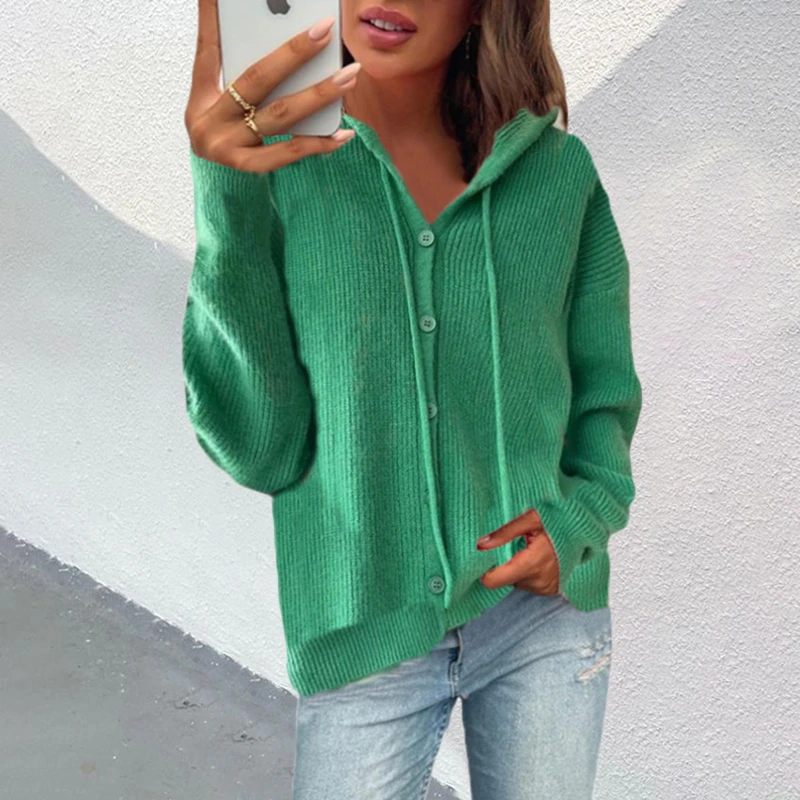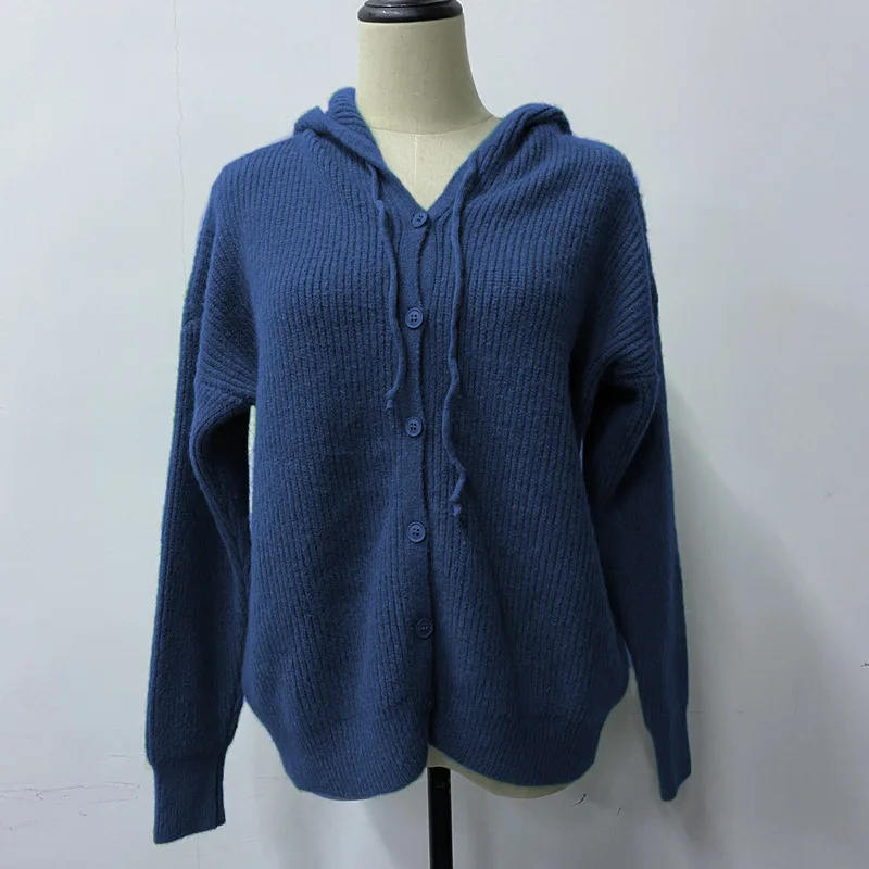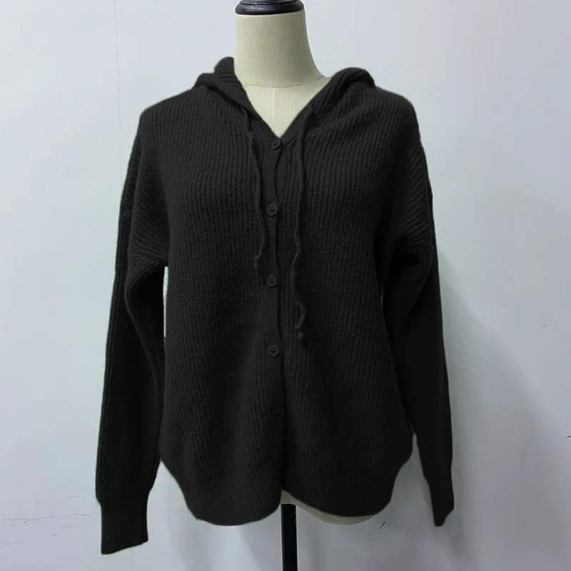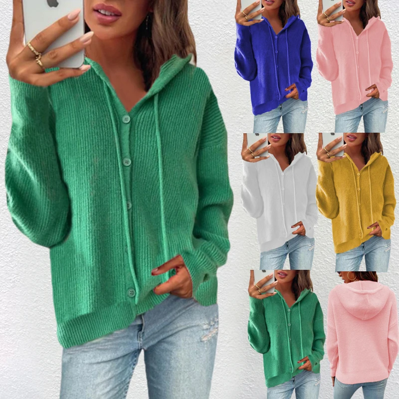 Vintage Solid Women Blouse Autumn Fashion Cardigan Elegant V Neck Long Sleeve Button Hooded Casual Lady Office Shirts Loose Tops