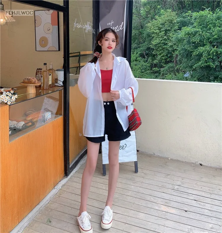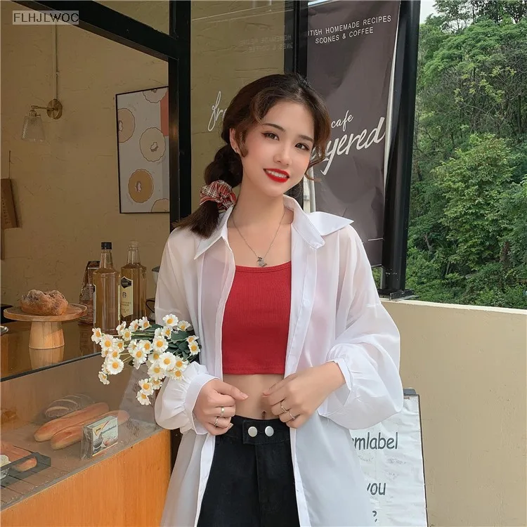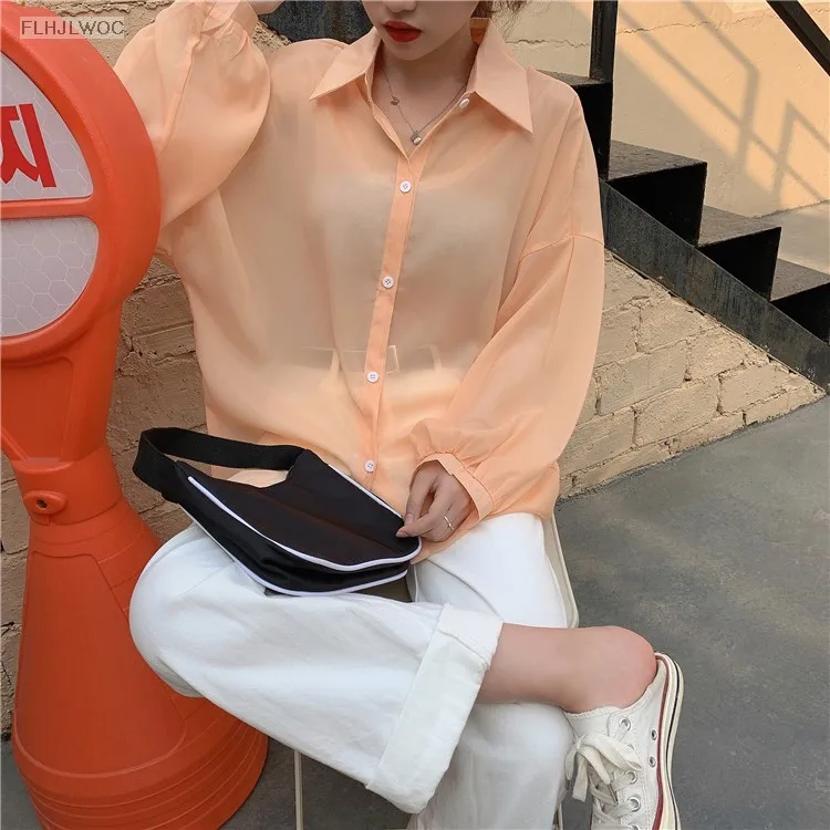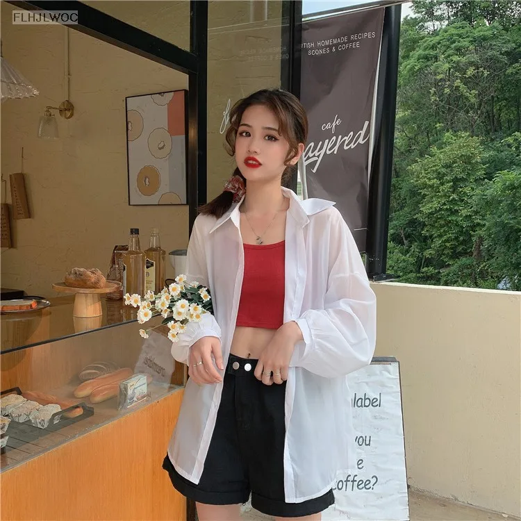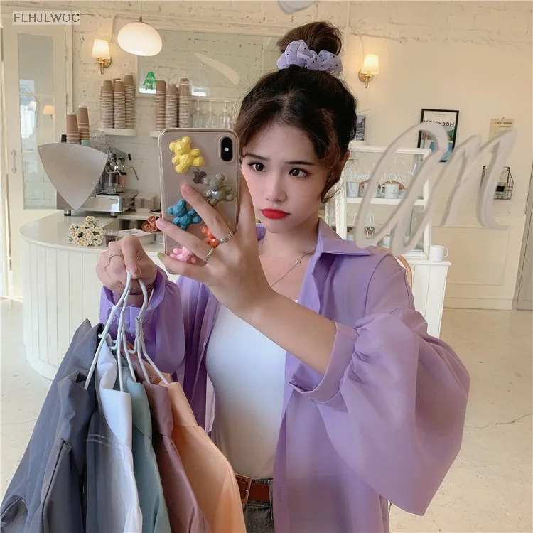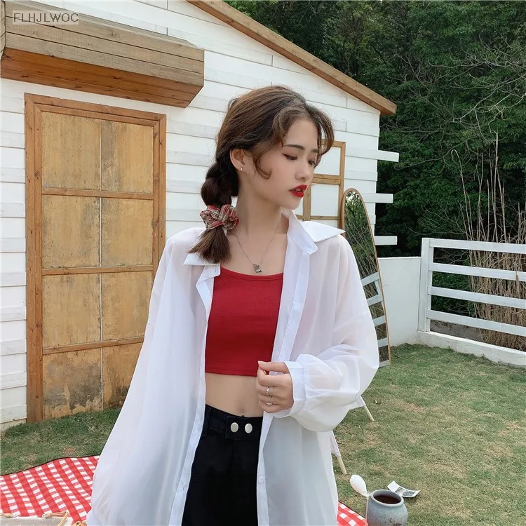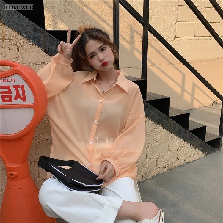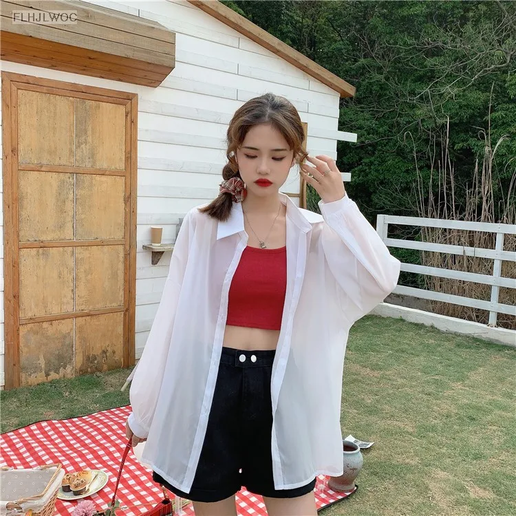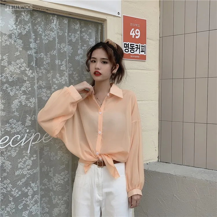 Wholesale 2021 Women Holiday Transparent Boyfriend Shirts Blue Pink Apricot Sunscreen Shirt Summer Vacation Tunic Long Blouses