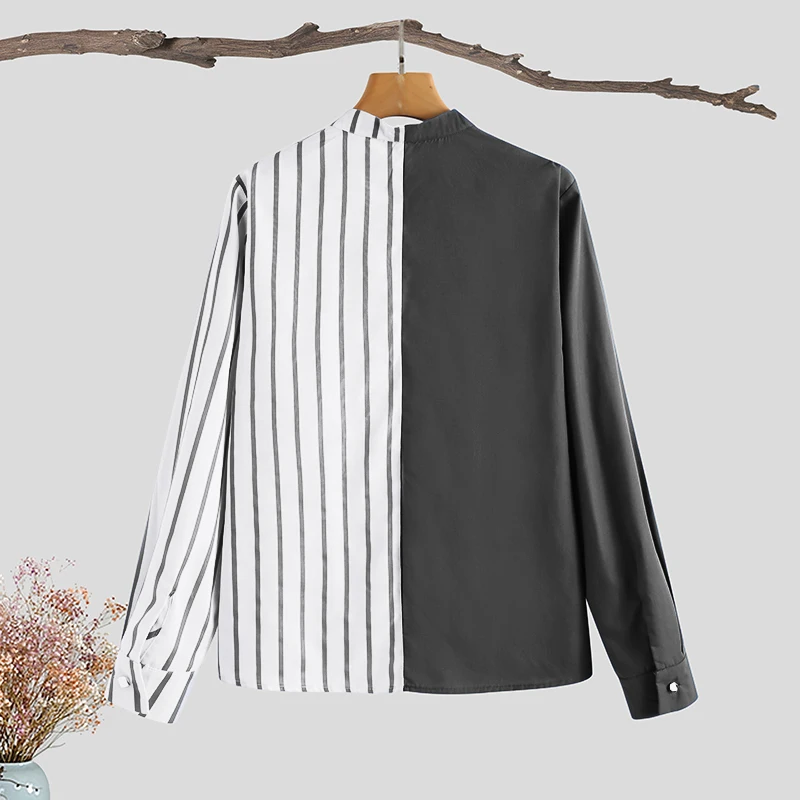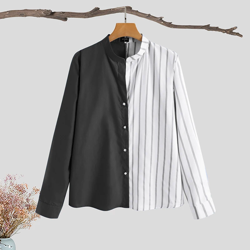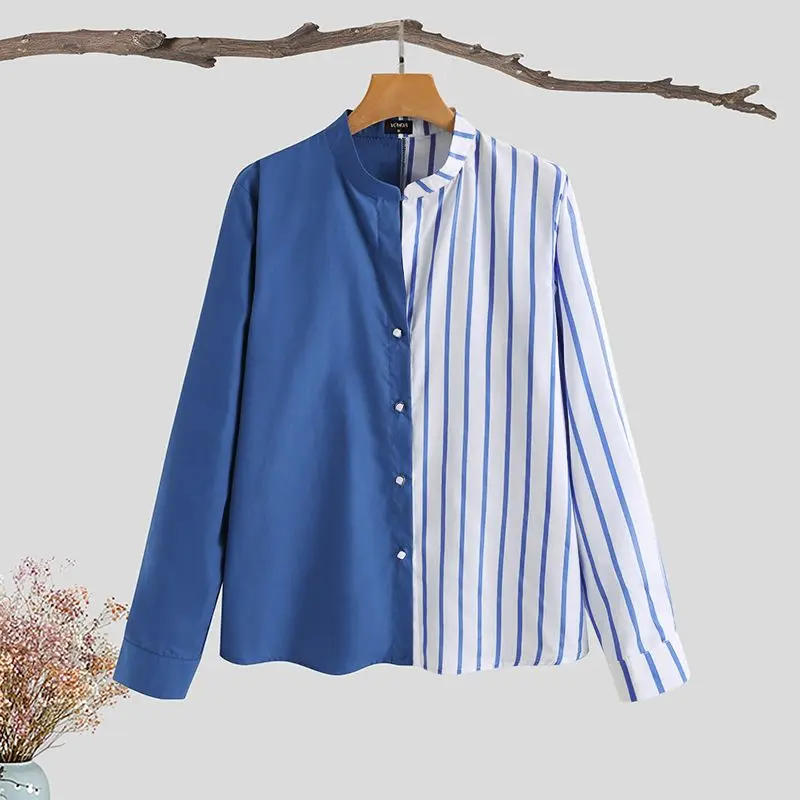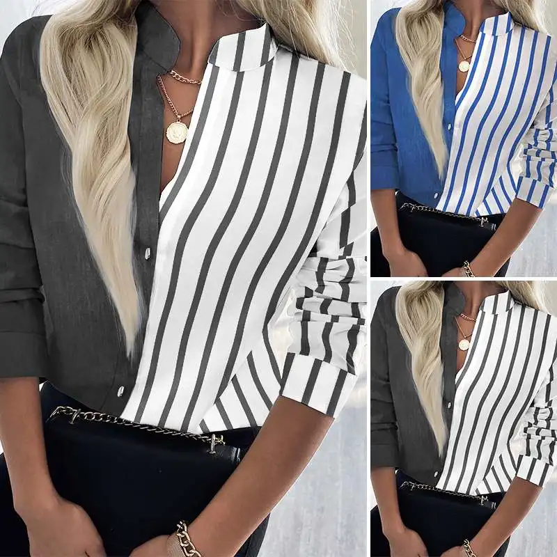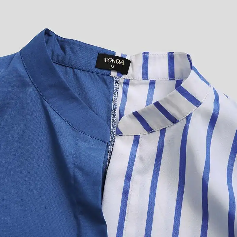 Women Shirts 2021 VONDA Sexy V Neck Long Sleeve Casual Striped Tops Casual Pleated Button Up Shirts Blouse Blusas Femininas