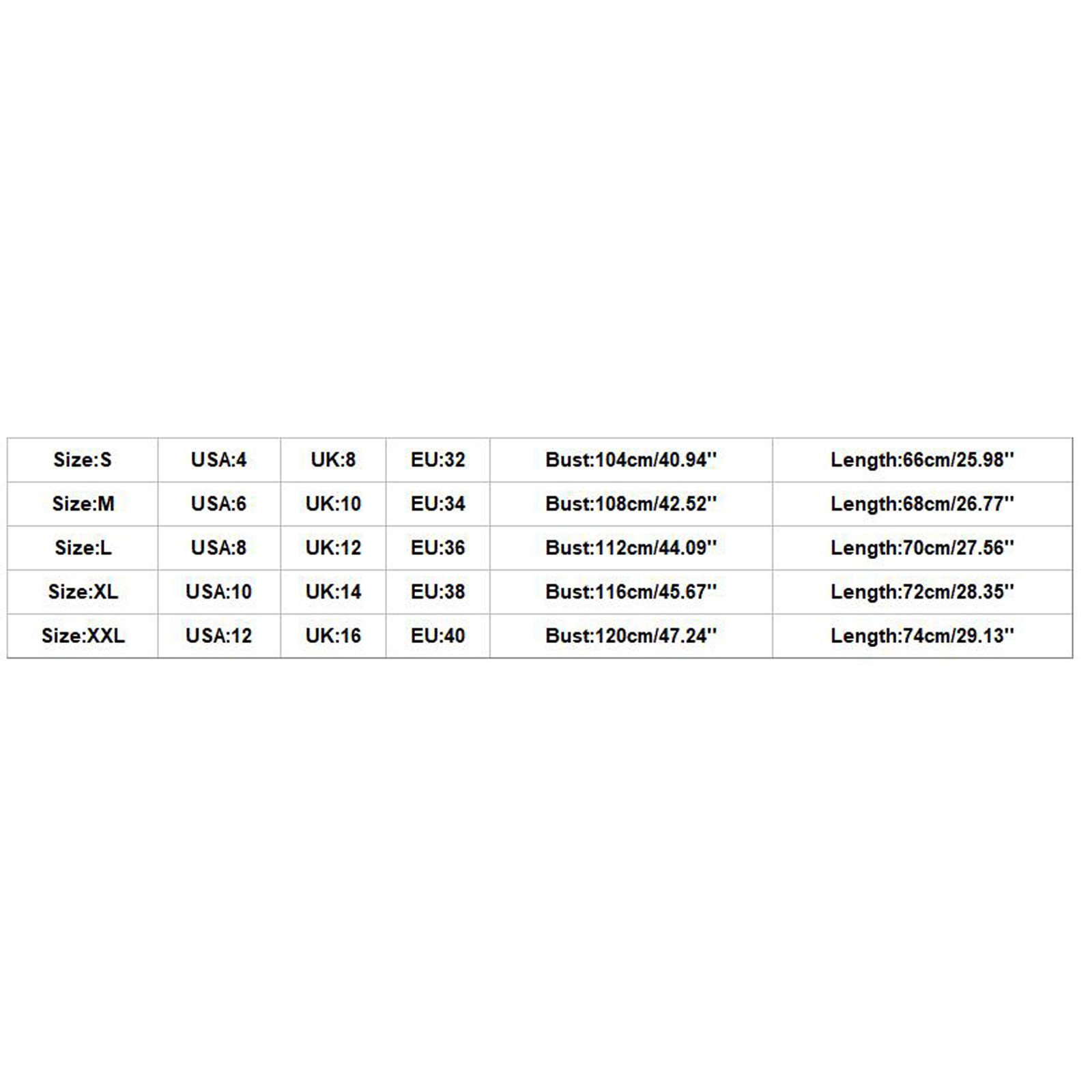 | Size:XXL | USA:12 | UK:16 | EU:40 | Bust:120cm/47.24'' | Length:74cm/29.13'' |
