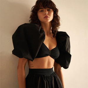 Fashion 2022 Elegant Puff Sleeve Tops and Blouses Women Summer Wrap Shirts Blouse Short Sleeve Top Cropped Club Party Clothes
