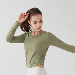 Hot Sale Side Folds Designed Sport Shirts With Chest Pads Long Sleeve Yoga Crop Tops