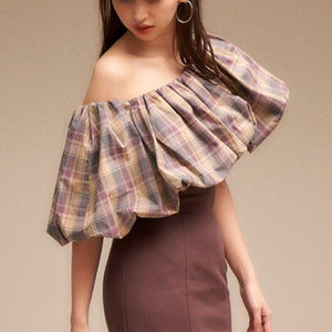 Japanese Elegant Bow Lace-up Women Blouse Slash Neck Backless 2021 Fall Chic Plaid Blusas Mujer Sweet Puff Sleeve Woman Shirts