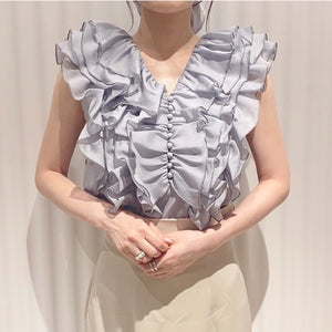 Japanese Sweet Ruffles Solid Chiffon Blouse Woman V-neck Backless Lace-up Woman Shirts 2021 Summer Chic Pullover Blusas Mujer