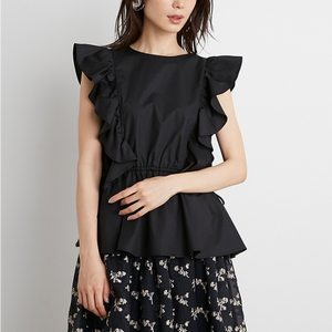 Sweet Japan Style Ruffles Blouse Women O Neck Lace-up Flying Sleeve Shirts Women Simple Office Ladies Elegant Blusas Femme